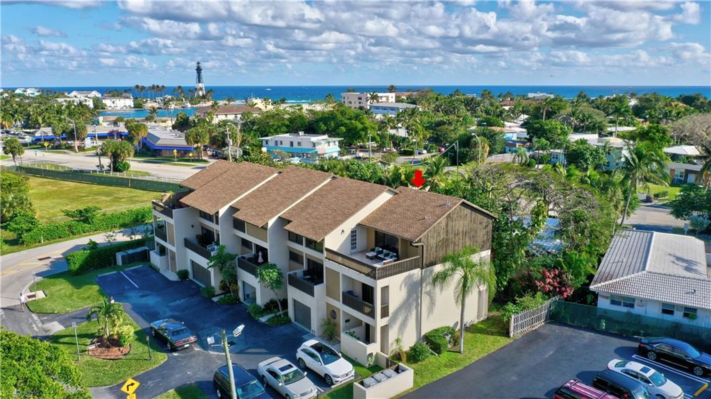 This unique 3 bedroom / 3.5 baths townhouse is in the heart of Hillsboro Inlet in the desirable Hillsboro Shores area in a Boutique style building. You will fall in love with the open space and floor plan offering tons of light and high ceilings. The kitchen is complimented by an island, granite counters, breakfast bar and eat-in area. Relax on the huge terrace overlooking the Intracoastal waterways and watch the daily boat parade. All bedrooms feature updated ensuite bathrooms. Step out to the living room to another balcony. The split level floor plan offers great privacy for guests. One car garage plus second parking space. Private beach access at Hillsboro Shores is available. Close to the fishing pier, lighthouse, Restaurants and shopping. 2 pets allowed. A must see....easy to view!