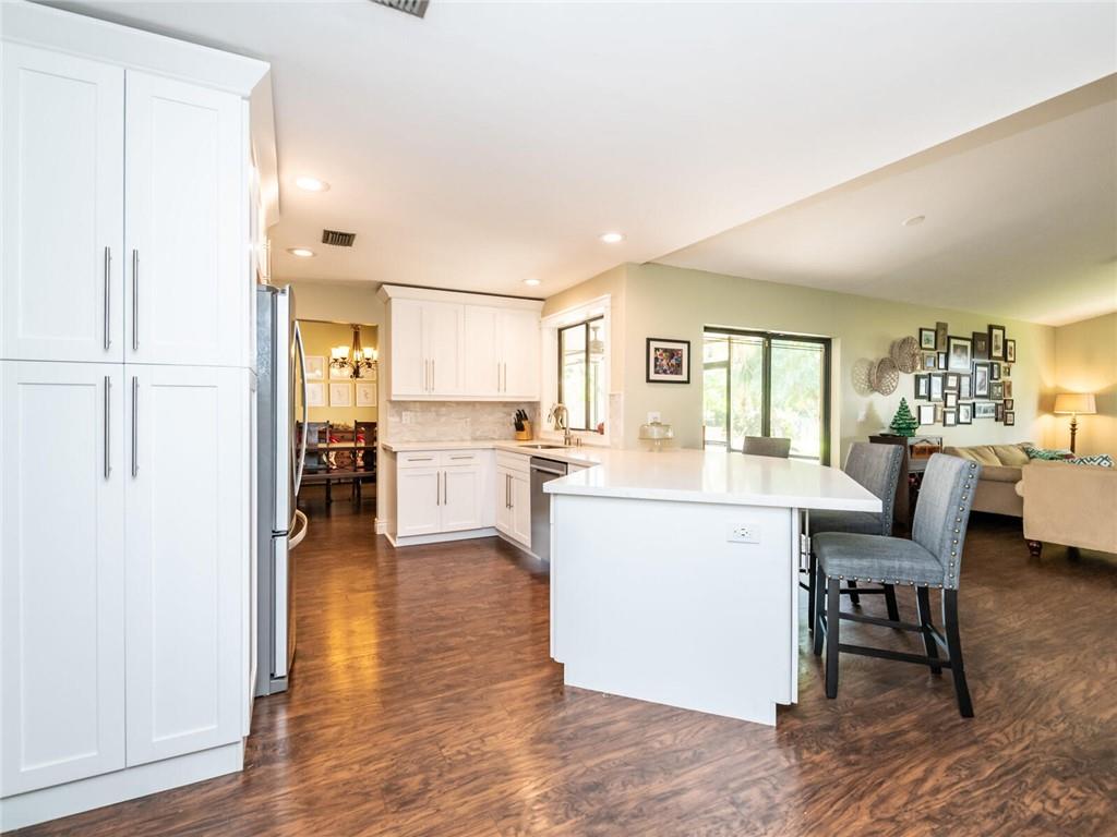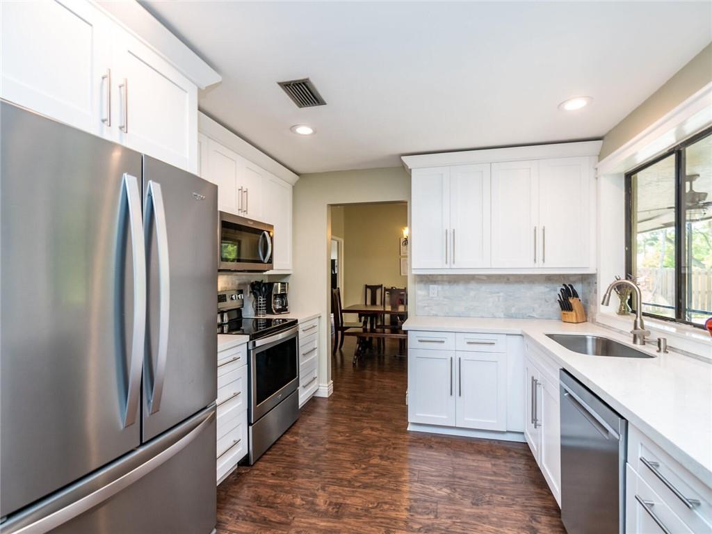 YOU KNOW WHAT YOU MUST DO FAST TO SEE THIS TRULY MOVE IN CONDITION HOME! VERY QUIET, FAMILY COMMUNITY. BIG 35X27 PAVER/FREE FORM POOL(32X17) AREA. HUGE PRIVATE 2014 WOOD & CHAIN LINK FENCED BACK YARD W/CANAL ACCESS, LARGE TREES/LANDSCAPING FOR EXTRA SHADE. 33X9 SCREENED PATIO. COMPLETELY REMODELED KITCHEN W/QUARTZ COUNTERS, ALL SOFT CLOSE 13 CABINETS/10 DRAWERS, 4 SEAT BREAKFAST BAR OPEN TO FAMILY ROOM, STAINLESS STEEL APPLIANCES. TOTALLY, BEAUTIFULLY REMODEL 10X11 MASTER BATH W/QUARTZ DOUBLE VANITY, BIG ROMAN TUB, 5X3 FRAMELESS SHOWER, PLANK TILE FLOOR. MASTER BEDROOM GREAT VIEW OF POOL/BACK YARD. ALL UPGRADED PERGO WOOD FLOORING - NO CARPET. FULLY INSURABLE TILE ROOF 2014. NO POPCORN CEILINGS. VERY WELL MAINTAINED FRONT/BACK YARDS W/LOVELY LANDSCAPING. VAULTED CEILINGS.