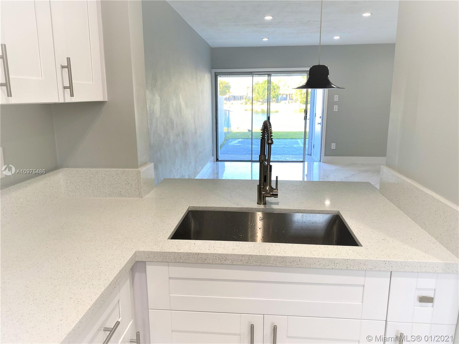 LAKEFRONT - come fall in love w/this beautifully remodeled townhome. Spacious living/dining area w/serene lakeview designed w/large porcelain tiles throughout the 1st floor that complements the overall color scheme of the home's interior. White kitchen cabinets w/sparkling white quartz countertops and enough space to add a breakfast nook. Bright home w/recessed LED lighting. The WOW factor continues upstairs, grey laminate flooring, bedrooms are roomy w/Master bedroom having "2" walk-in closets. Nicely appointed bathroom & marble windowsills. The excitement continues onto the patio, plenty of space to enjoy the outdoors w/unlimited Vitamin D. The patio area comes w/large storage closet & concrete area to BBQ. Fabulous location close to everything. NO FHA until March 4, 2021.