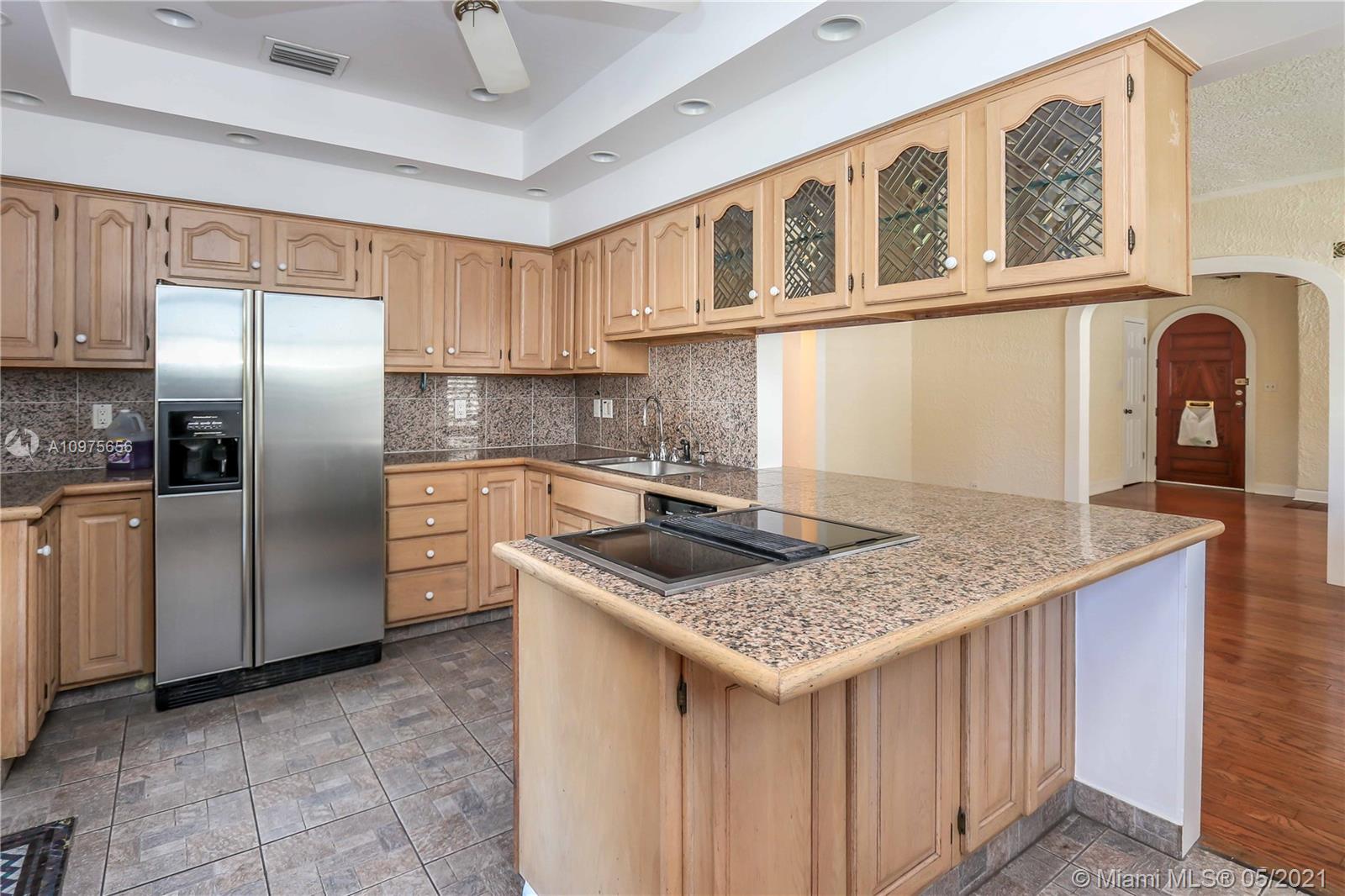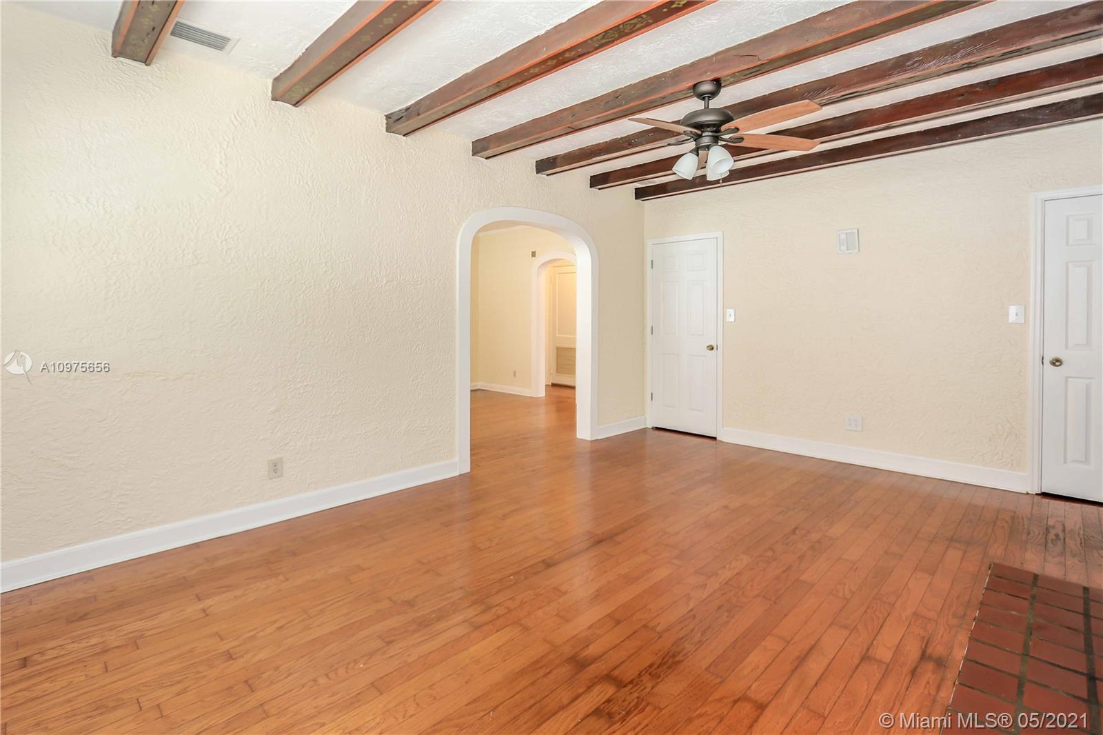 Beautiful updated Spanish style home is located in the Heart of the Hollywood Lakes, a few blocks to Northlake & famous Hollywood Boardwalk. Home features 2 BR, 2 full BA, Spacious kitchen, Granite countertops, electric range, SS appliances, dining room, spacious living room features high ceilings, exposed wood beams, wood floors, fireplace & archway entrances. French doors from kitchen, Screened in patio, washer & dryer in wood enclosure. Spacious Fenced in backyard includes. Building in back of property could be used for storage or workshop, room for a pool, alley entrance. NO HOA FEES. Fruit trees. Plenty of Room to park an RV or truck. Owner is in the process of closing out permits