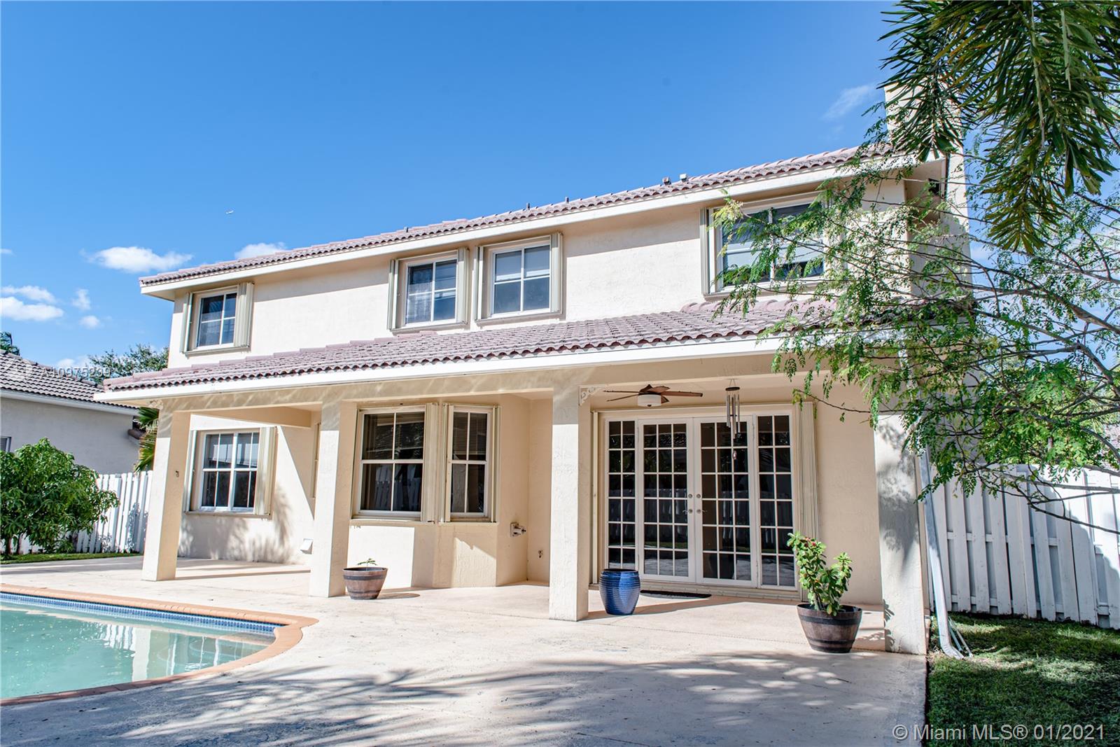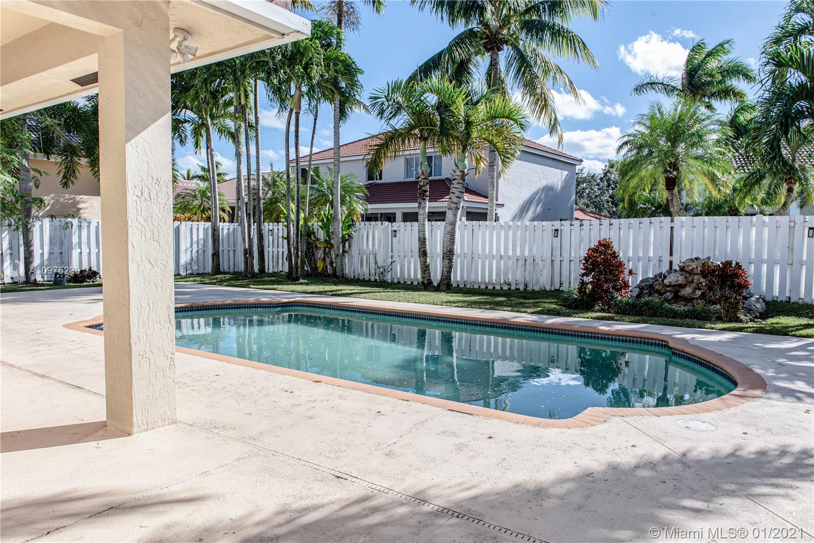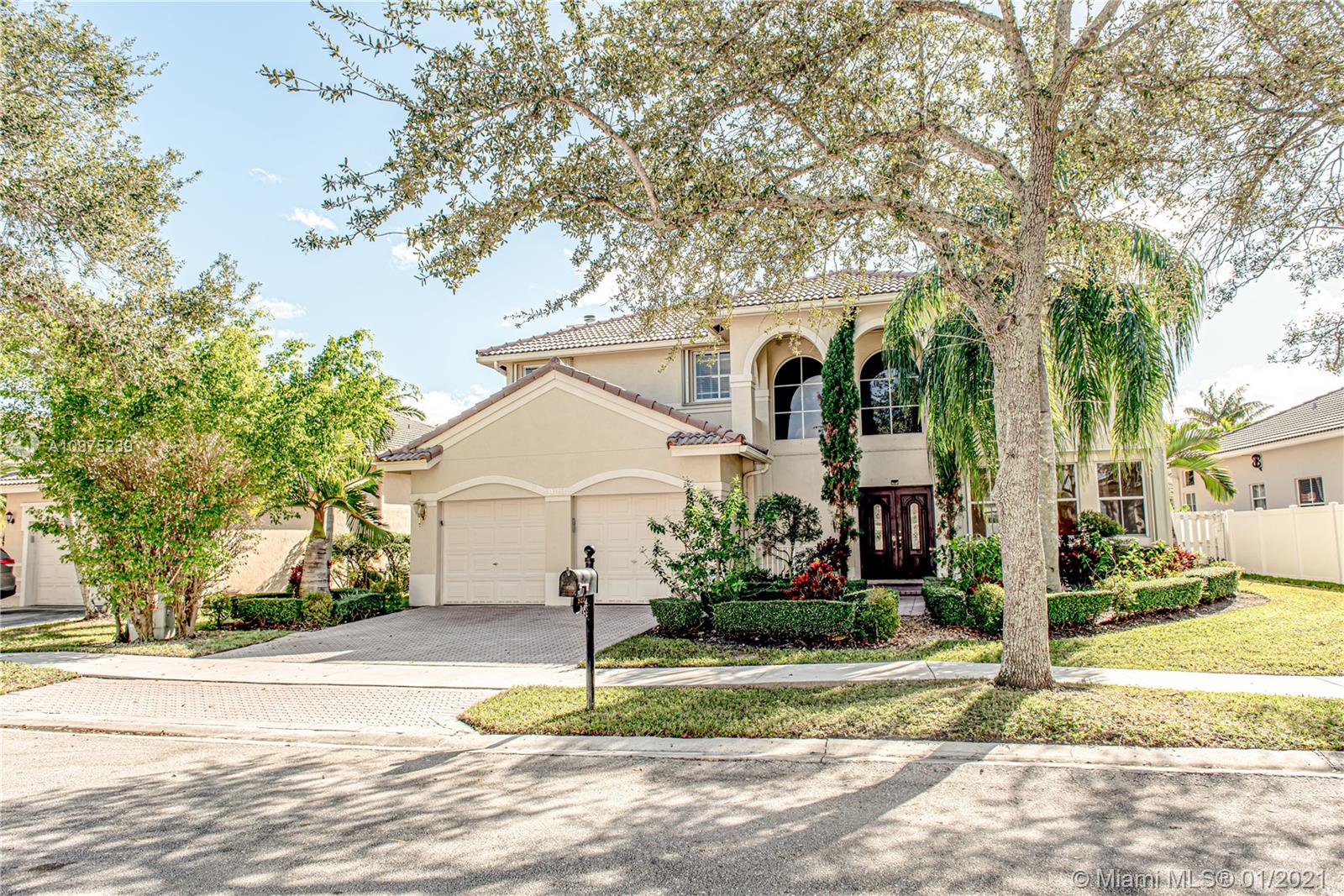 Beautiful two story home with pool located in the gated community of THE MEADOWS. Kitchen updated with Wood cabinets, Granite Counter-tops, Stainless Steel Appliances & Breakfast Area. Neutral Tile throughout upstairs and downstairs and lots of natural light. Large fenced private yard with large pool and concrete deck - great for family time and entertaining guests. Accordion Shutters -- Weston 24 hour guard-gated community (The Meadows) with community pool, tot lot, excellent A+ Weston Schools, Must See, Use Showing Assist.