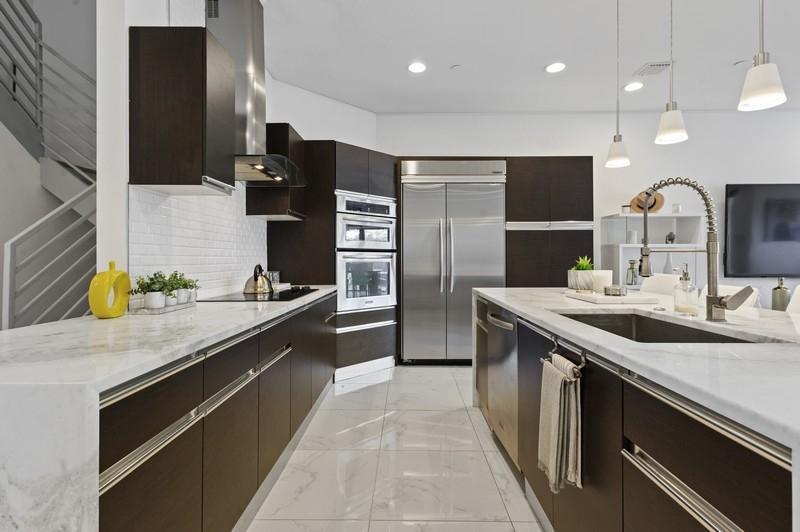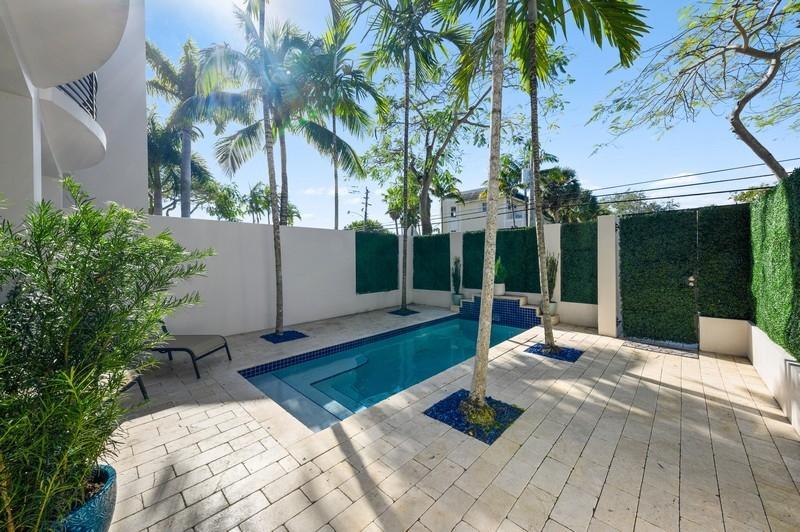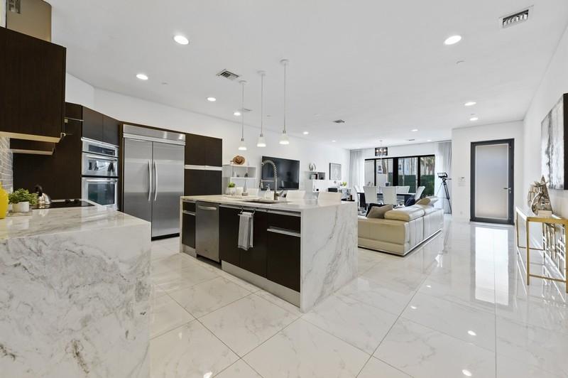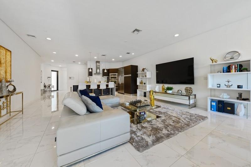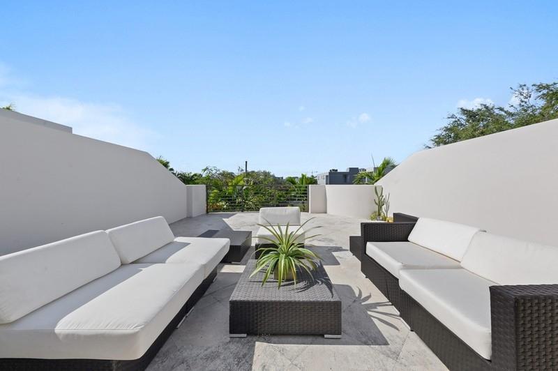 This is impressive!! Luxurious ,Spacious and sophisticated three and a half bedroom home with its own private pool and spacious third floor terrace. Three stories with elevator for convenience . Beautiful kitchen waterfall marble counter ,stainless steel appliances . Impact glass , solar tinted windows with electric, blackout shades shades in Primary Bedroom.Huge family room