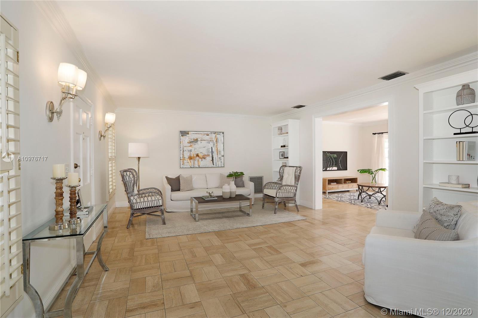 This beautiful colonial-inspired house on a gracious 12,500sf corner lot immediately feels like home. The spacious formal living room includes details such as high ceilings, lovely moldings, built-in bookshelves, and plantation shutters which can be found in the formal dining room as well. A white, bright kitchen with stainless steel appliances features a breakfast bar that opens to the family room overlooking the yard via a bank of French doors. The large primary bedroom has windows on 2 walls, the 2nd and 3rd bedrooms are generous, & the bathrooms have been tastefully and recently updated. Outside find ample green space at the intersection of two quiet streets, just perfect for children to play. New roof and a/c’s, 1 car garage, and circular drive.