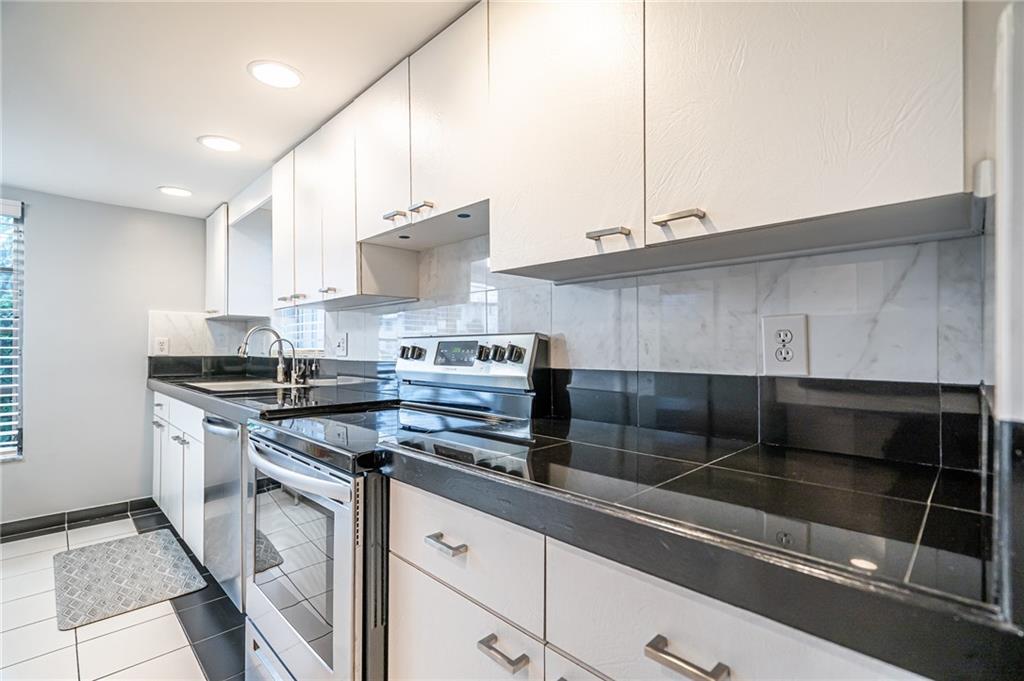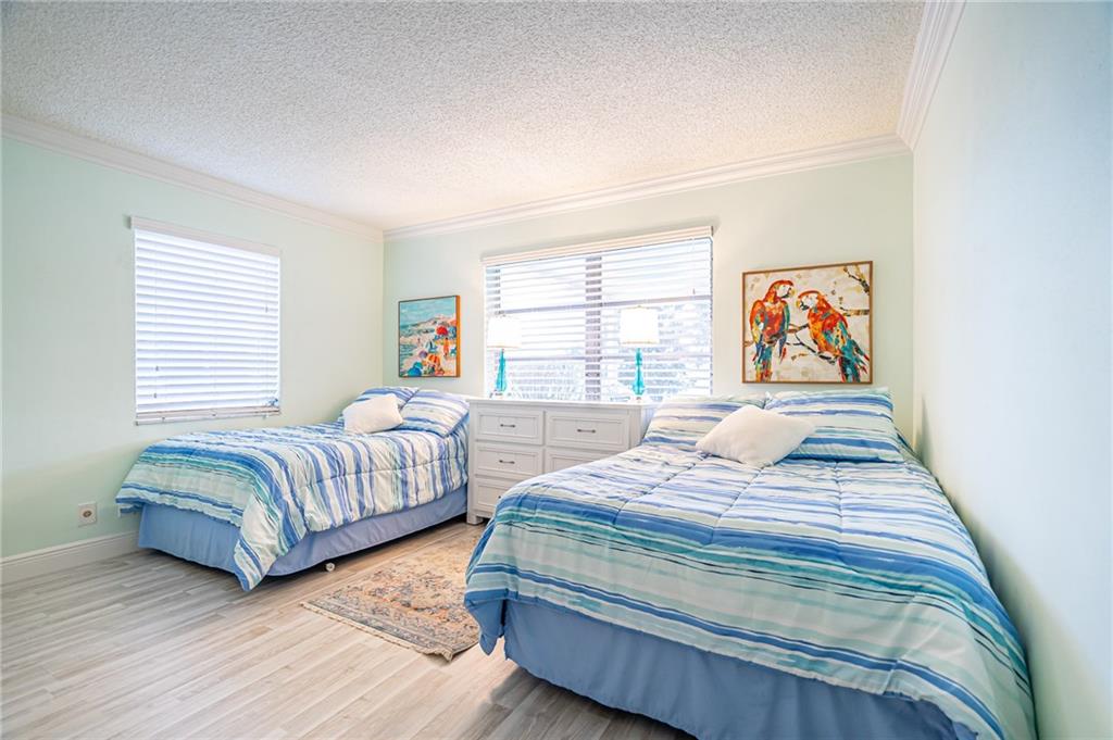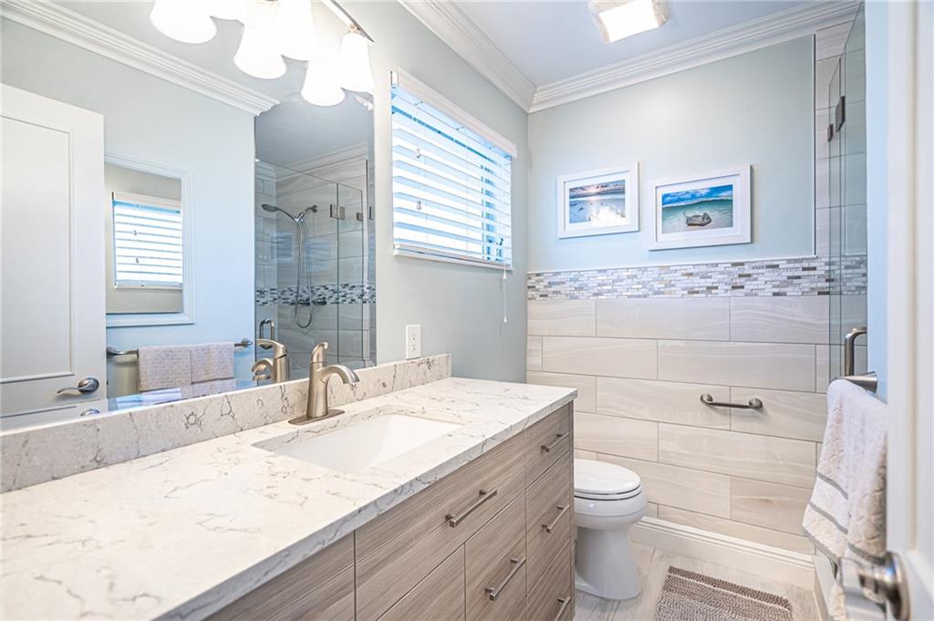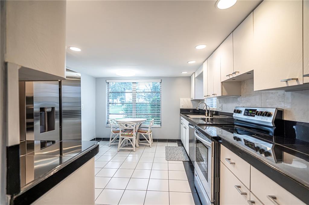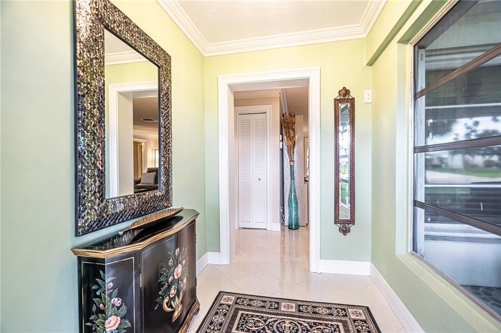 Modern, open concept featured in this bright and beautifully remodeled 2/2 home on corner lot. Garage & open front porch. Unique front foyer leads to a spacious eat-in kitchen w/huge picture window, modern design countertops and cabinetry and new stainless steel appliances +reverse osmosis water filtration system. Living area features beautiful tile and crown molding, continuing into Florida room/dining area. Unique lighting fixtures throughout. The design and decor of the completely renovated master and guest baths is fantastic! Bedrooms feature neutral laminate. And more!! NO LAND LEASE, 55+ Roof 2006 Newer A/C and water heater. Pets welcome! Maintenance includes water/sewer, 2 clubhouses with wifi, two pools, golf course, lawn maintenance, courtesy bus, and more!