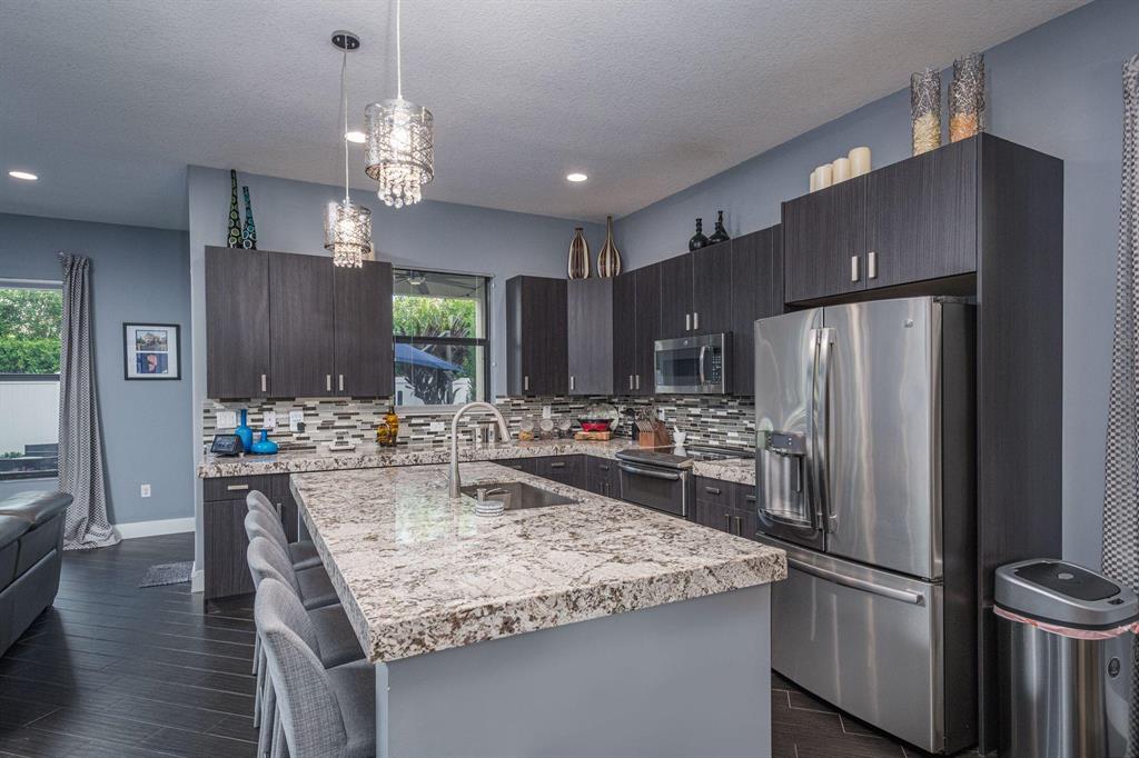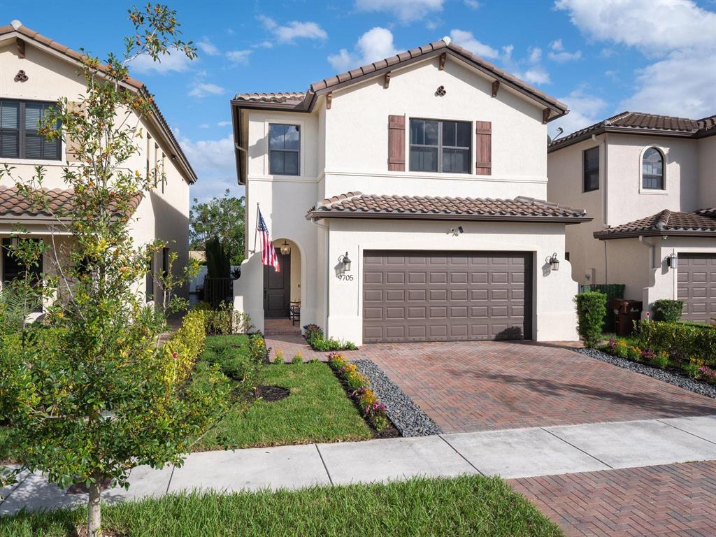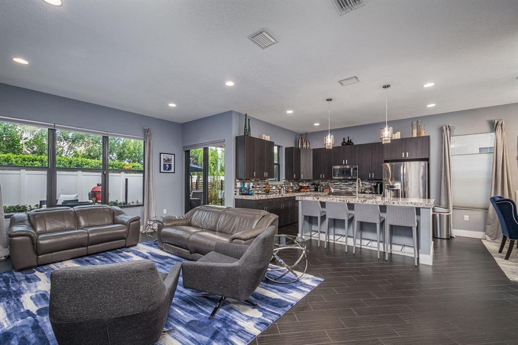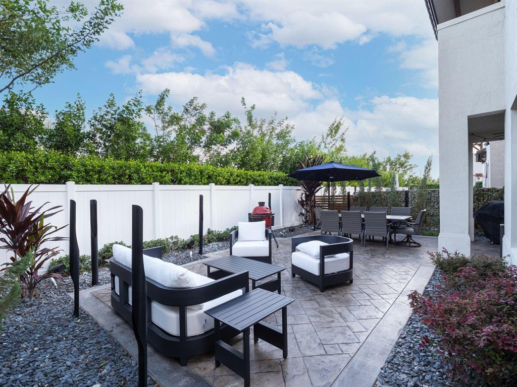This beautiful, modern, wonderfully comfortable home is located in highly sought after Bonterra. This four bedroom, two and a half bath home is clean, wonderfully appointed and provides the protection of hurricane impact windows throughout. It features high ceilings, large windows, plenty of natural light and granite countertops throughout the home. The first floor boasts a gorgeous kitchen with granite countertops, beautiful cabinets, and plenty of space at the center island. Outstanding outdoor space provides the space and comfort you're looking for for gatherings, entertainment and relaxation. Precision stamped concrete, mature landscaping and privacy fence round out an outdoor paradise. Even the garage is decked out with professionally finished floors and overhead garage rack storage.