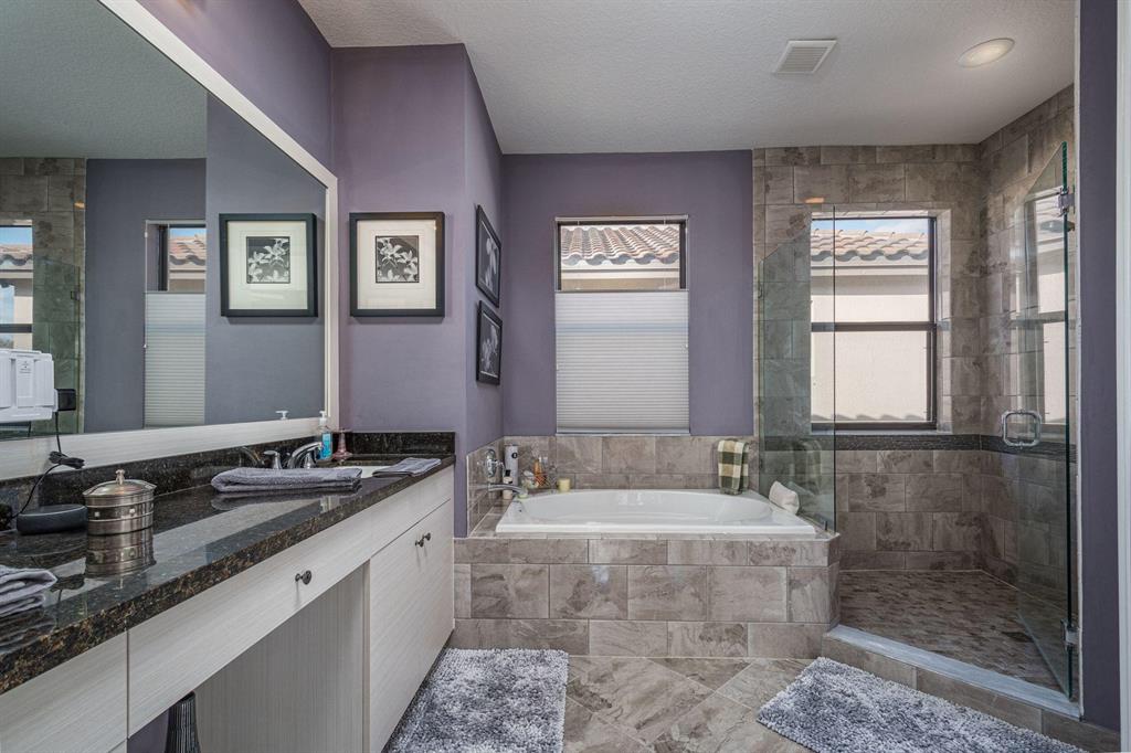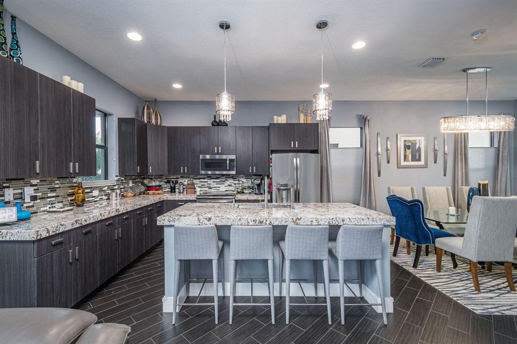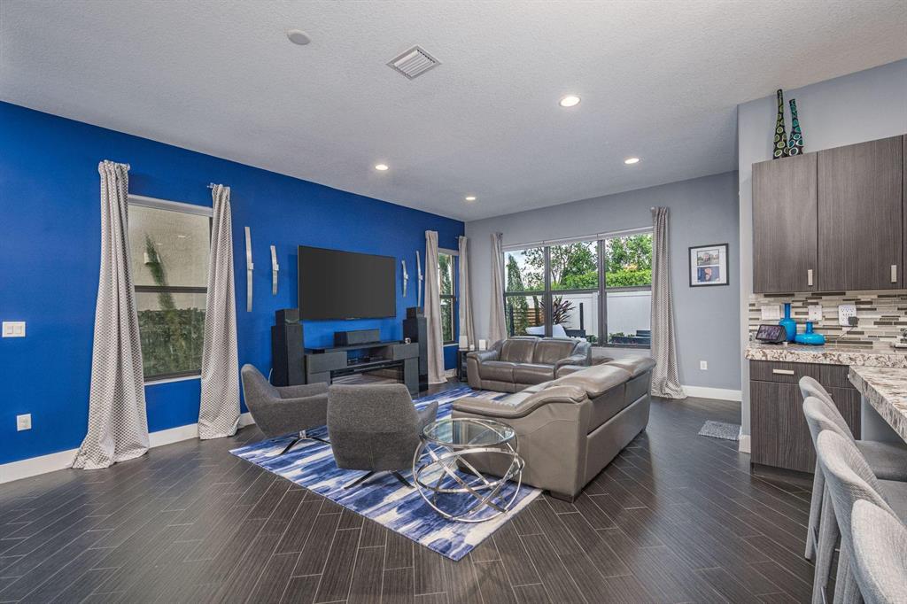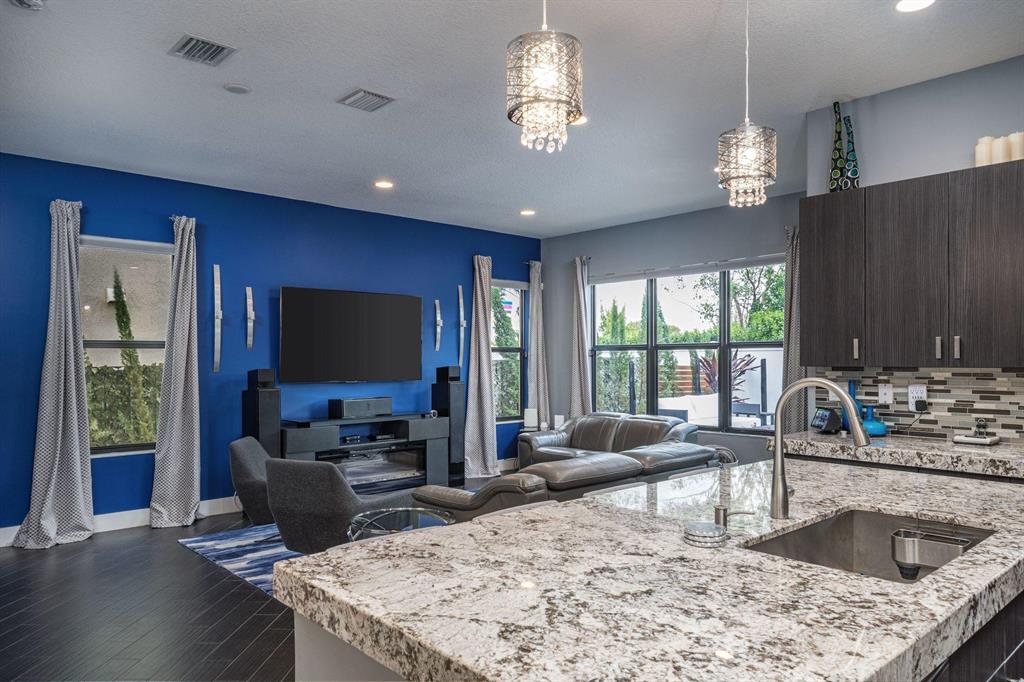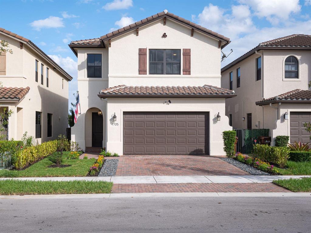 This beautiful, modern, wonderfully comfortable home is located in highly sought after Bonterra. This four bedroom, two and a half bath home is clean, wonderfully appointed and provides the protection of hurricane impact windows throughout. It features high ceilings, large windows, plenty of natural light and granite countertops throughout the home. The first floor boasts a gorgeous kitchen with granite countertops, beautiful cabinets, and plenty of space at the center island. Outstanding outdoor space provides the space and comfort you're looking for for gatherings, entertainment and relaxation. Precision stamped concrete, mature landscaping and privacy fence round out an outdoor paradise. Even the garage is decked out with professionally finished floors and overhead garage rack storage.