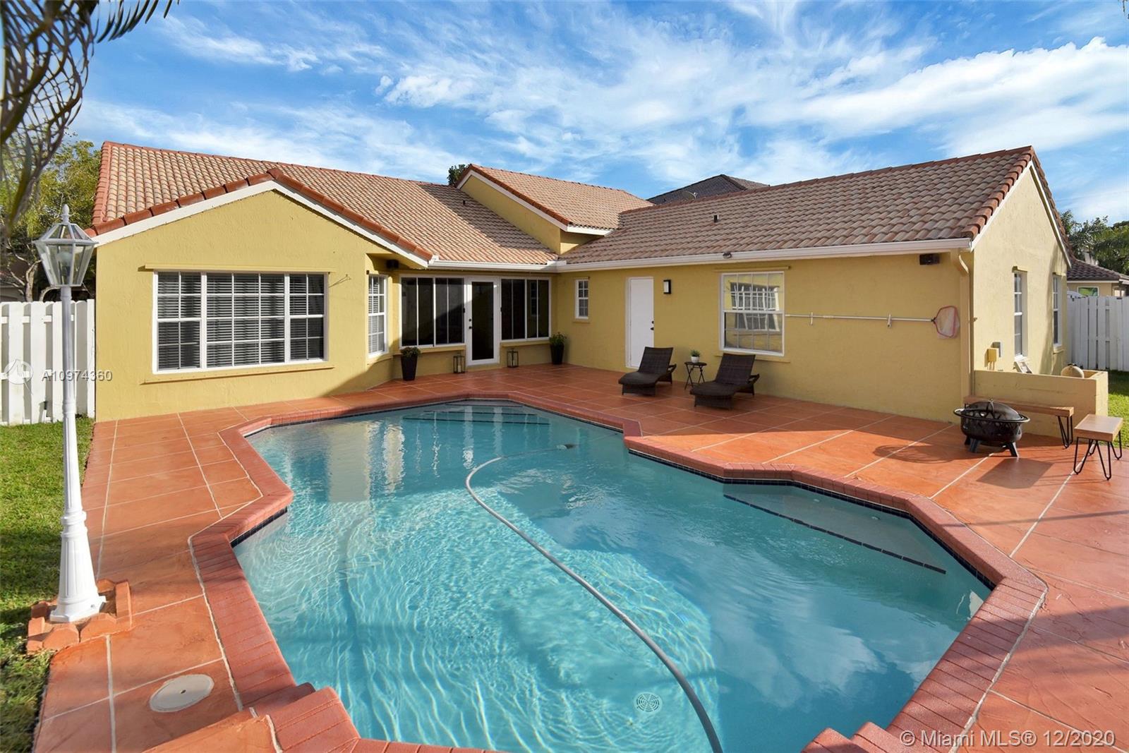 BEAUTIFUL POOL HOME IN THE AMAZING COMMUNITY OF THE LAKES IN WESTON. 5 BEDROOMS, 2 AND A HALF BATHROOMS WITH SPACIOUS LAYOUT. THERE'S A LARGE MASTER BEDROOM WITH 2 WALK IN CLOSETS, SITTING AREA, AND HOME OFFICE/BEDROOM WITH BUILT IN BOOKCASE. THIS HOME FEATURES A POOL WITH NEWLY REMODELED PATIO, DIMENSIONS APPROX 14’ BY 27’ AND ENCLOSED A/C PORCH. THIS COMMUNITY HAS A PARK AND PLAY AREA, SOCCER FIELD, BBQ PICNIC AREA AND COMMUNITY POOL. ENJOY WALKING DISTANCE TO PUBLIX, STARBUCKS, CVS, RESTAURANTS. A+ SCHOOLS. THIS HOME WON'T LAST, MOVE IN READY!