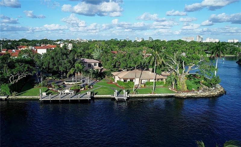 Privately hidden & extremely quiet Point Estate minutes from Las Olas! ONE OF THE LARGEST & VERY BEST PRICED South East point Estates (36,518sf/384'deep water)! Offered close to land value! Superb private resort style Estate with exclusive island compound ambiance close to Las Olas. Amazing views of River, Downtown & surrounding Estates (almost every room).Mainly 1st level living, vaulted ceilings, Chef's kitchen, theatre, wine cellar, club room, 2 bars, 3 fireplaces, gym/office, potential 2 incredible private master wings, large bedroom suites, maid's/captains quarters, impact glass.Spacious guest suite/home office over garage. Gazebo, summer kitchen, superb grounds & pool area-unlike any other point! Totally walled & gated. No bridges or traffic when venturing out from your new home!