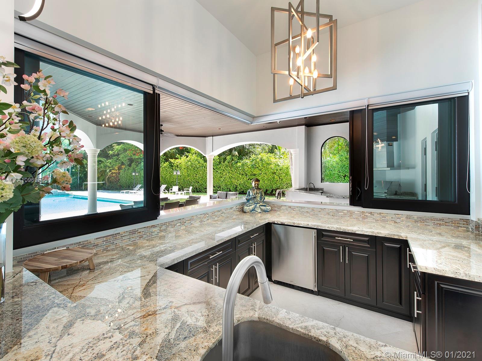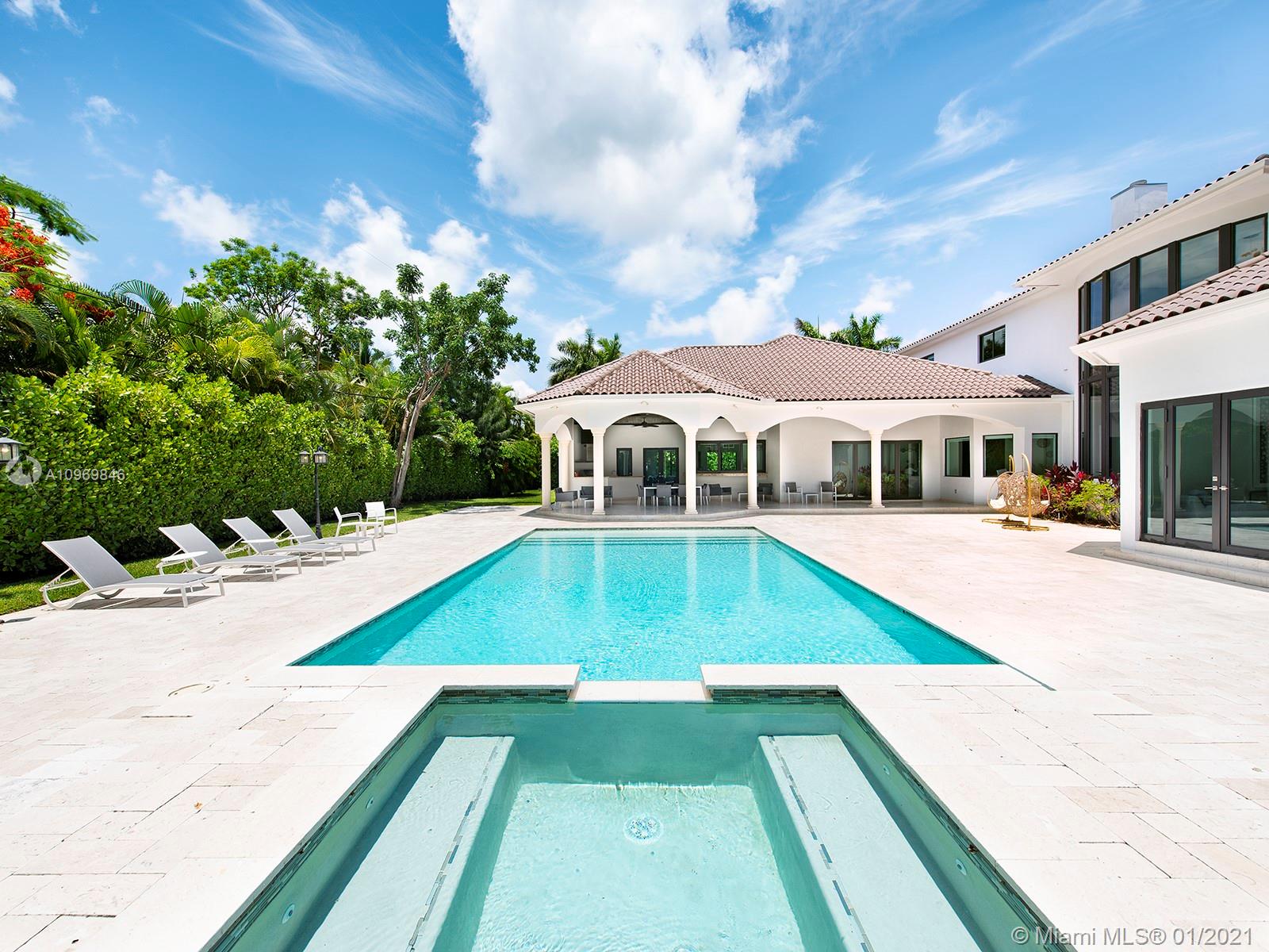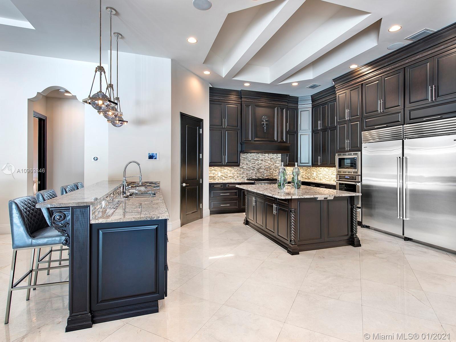 Spectacular Tuscan resort paradise! Classic and superior architectural design with exquisite, finest modern finishes and details! Stunning 28' soaring ceiling, marble, stone, and wood flooring. Designer luxurious appointments throughout. Unparalleled quality with elegant and sleek elements including smart house touch. Gorgeous and open vistas in every turn! Great floor plan. Lavish master suite! All en-suite generously sized bedrooms! Gourmet chef's kitchen, top of line appliances. Wine cellar, home theater, elevator. Additional playroom, office, and stunning open bar equipped with all entertaining features. Large summer kitchen, cabana bath! 20x45 open inviting pool and spa! Immense roofed patio. Sophisticated security system. Imposing entry! Lush landscaping! Sensational!!