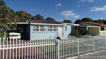 Needs TLC, 3 bedroom 2 bath East Hialeah home, tiled throughout. Featuring fully fenced large beautiful yard for growing family, Lots of fruit trees, open patio and over extended carport for additional parking and family gatherings. PETS WELCOME