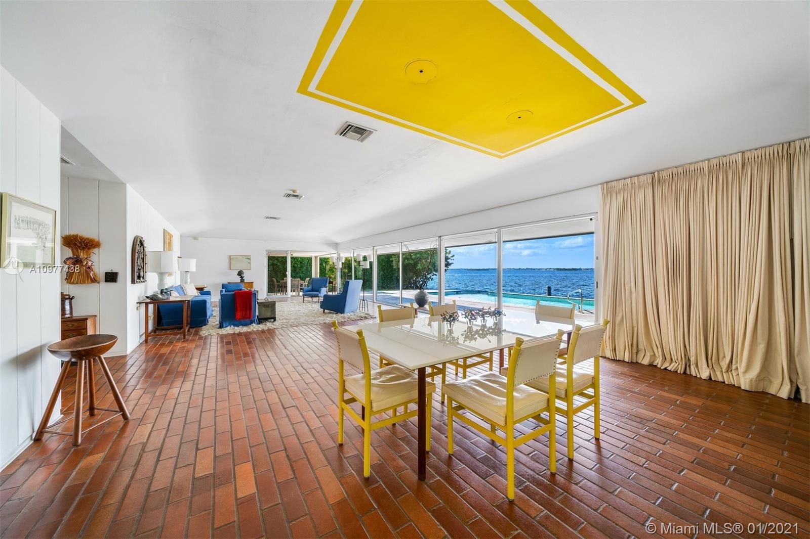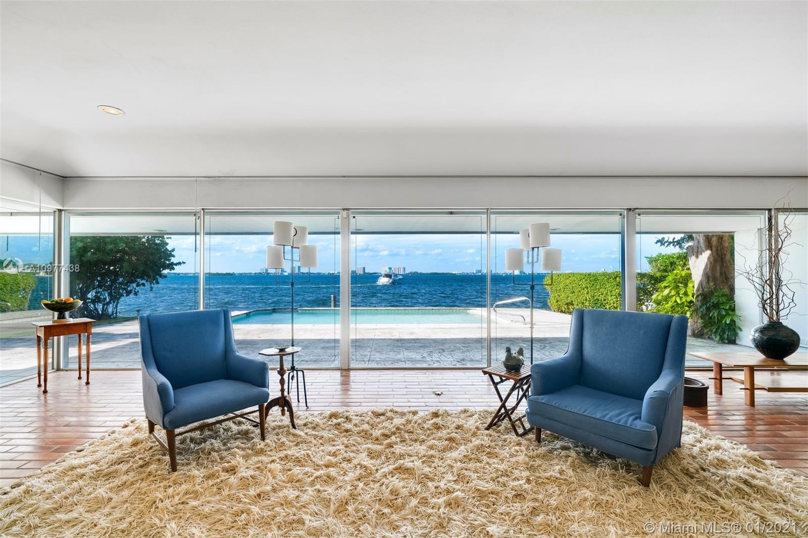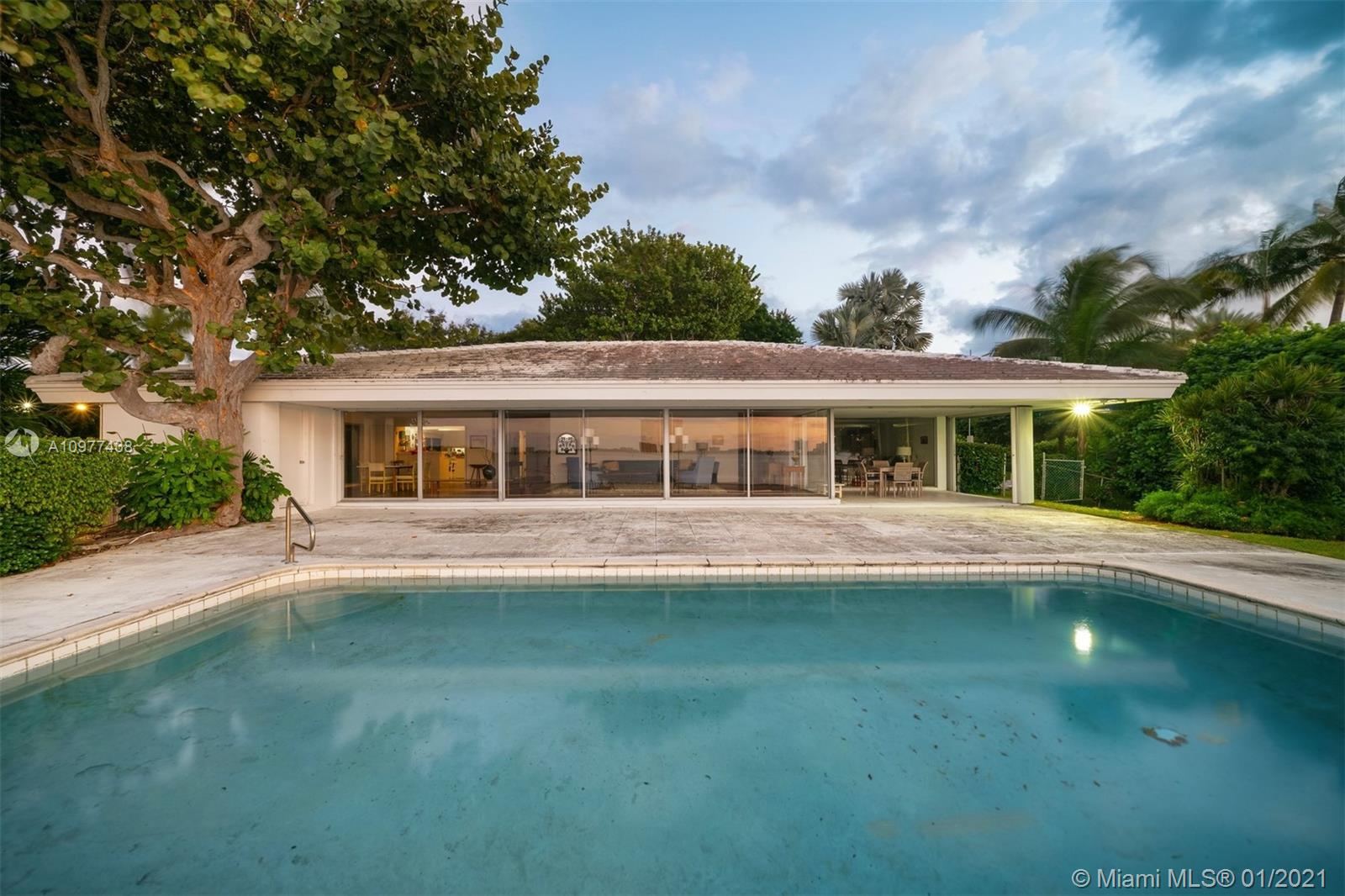 Feeling like you're floating on a cruise ship and enjoying the balmy breezes of Biscayne Bay is heavenly in this Miami Beach home on WIDE WIDE OPEN BAY. The daylight and sunset views seem like you are floating on water, as the home is situation on a high elevation. This 4 BDR/ 4 BATHS Features an open kitchen and open living areas, pool, 2 car carports & tons of storage space. Featured in National Magazines, was built by the artist and cookbook doyenne Maida Heater It stands apart from others. Situated on a corner, it is on an oversized 14, 423 SF lot. Adjoining the property there is 12,533 SF waterfront lot available for sale ,Total approx 27,000 SF of land. Located in guarded island of Normandy Shores, golf & tennis so close.