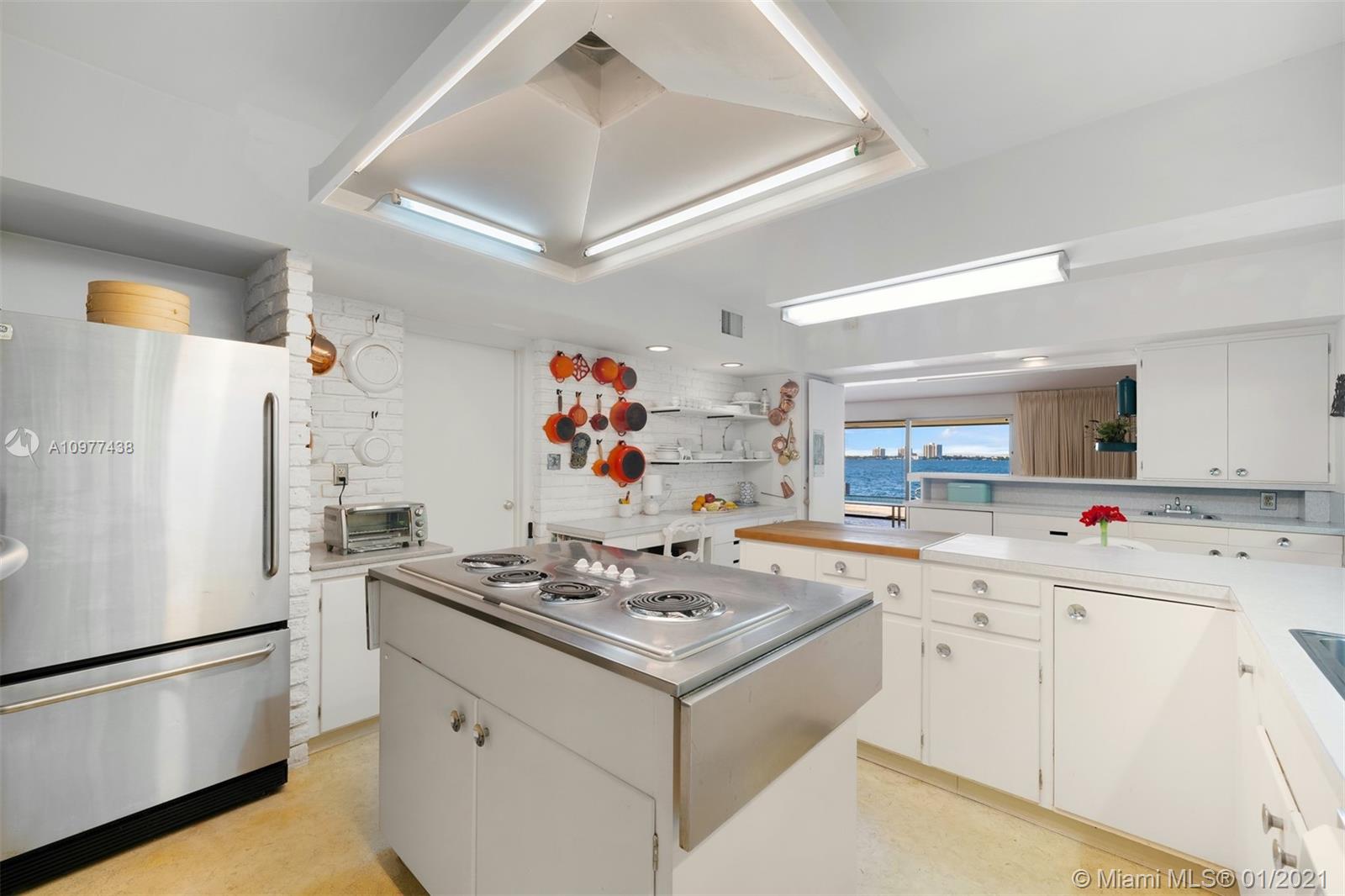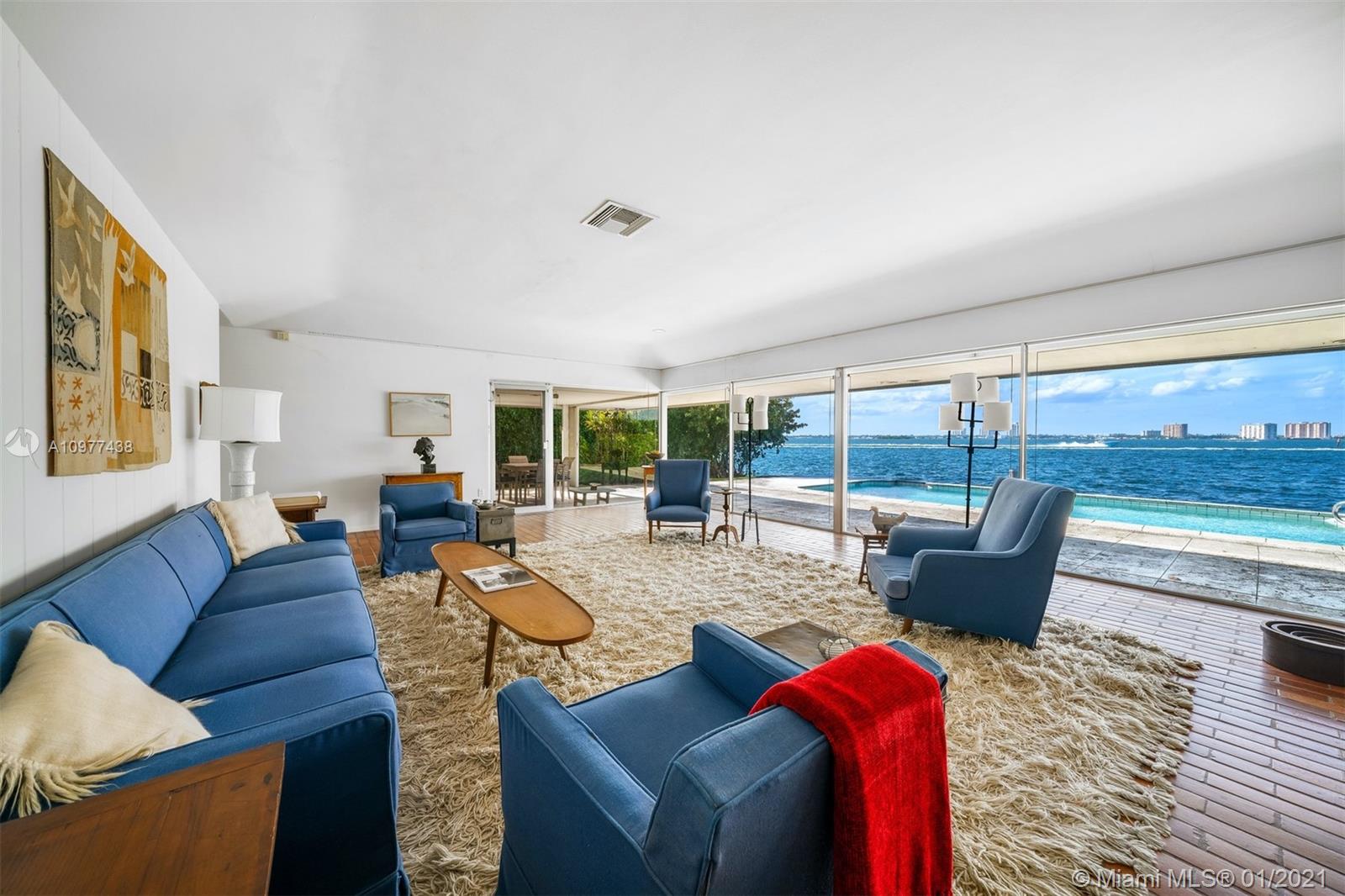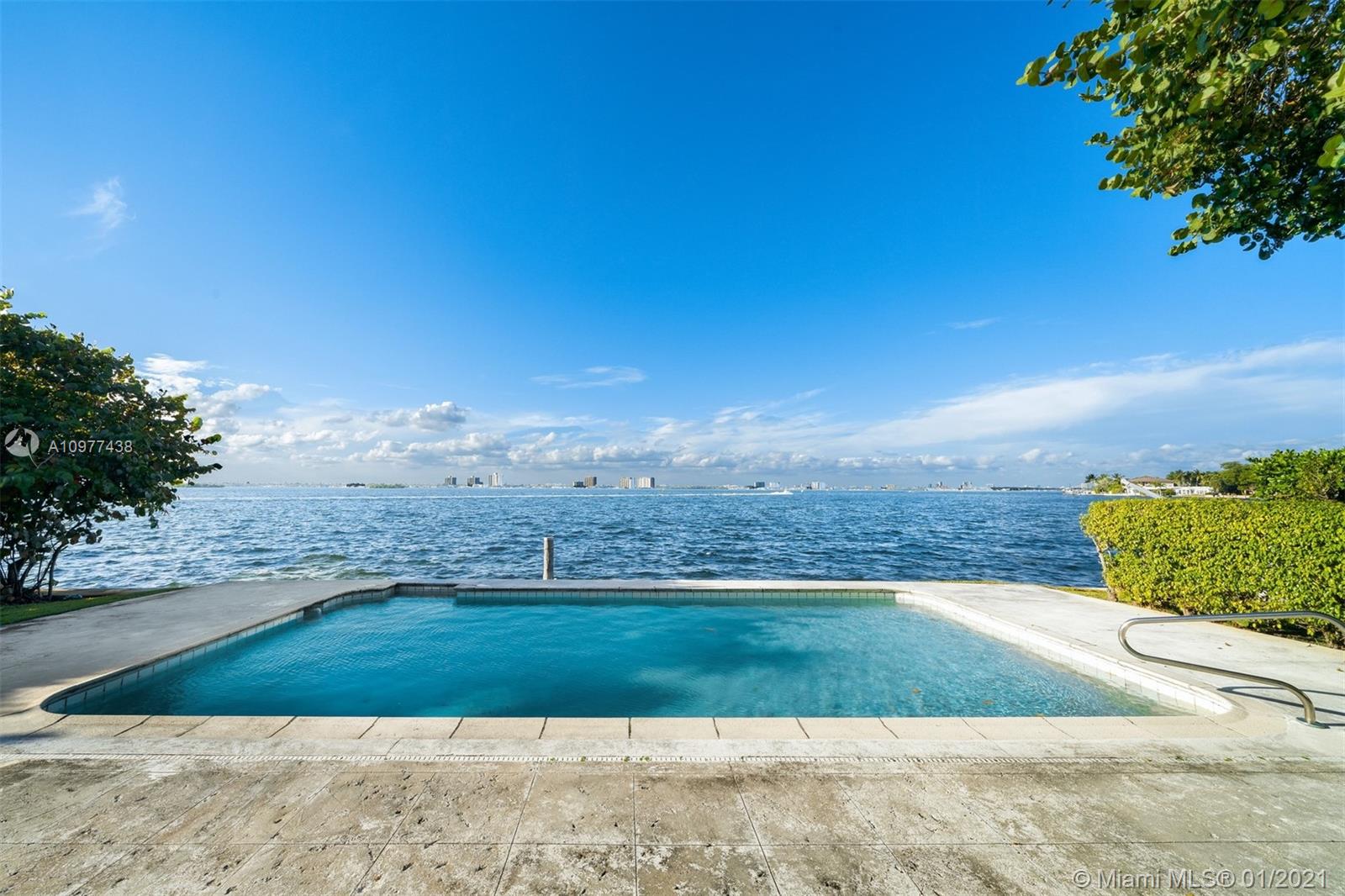 Feeling like you're floating on a cruise ship and enjoying the balmy breezes of Biscayne Bay is heavenly in this Miami Beach home on WIDE WIDE OPEN BAY. The daylight and sunset views seem like you are floating on water, as the home is situation on a high elevation. This 4 BDR/ 4 BATHS Features an open kitchen and open living areas, pool, 2 car carports & tons of storage space. Featured in National Magazines, was built by the artist and cookbook doyenne Maida Heater It stands apart from others. Situated on a corner, it is on an oversized 14, 423 SF lot. Adjoining the property there is 12,533 SF waterfront lot available for sale ,Total approx 27,000 SF of land. Located in guarded island of Normandy Shores, golf & tennis so close.