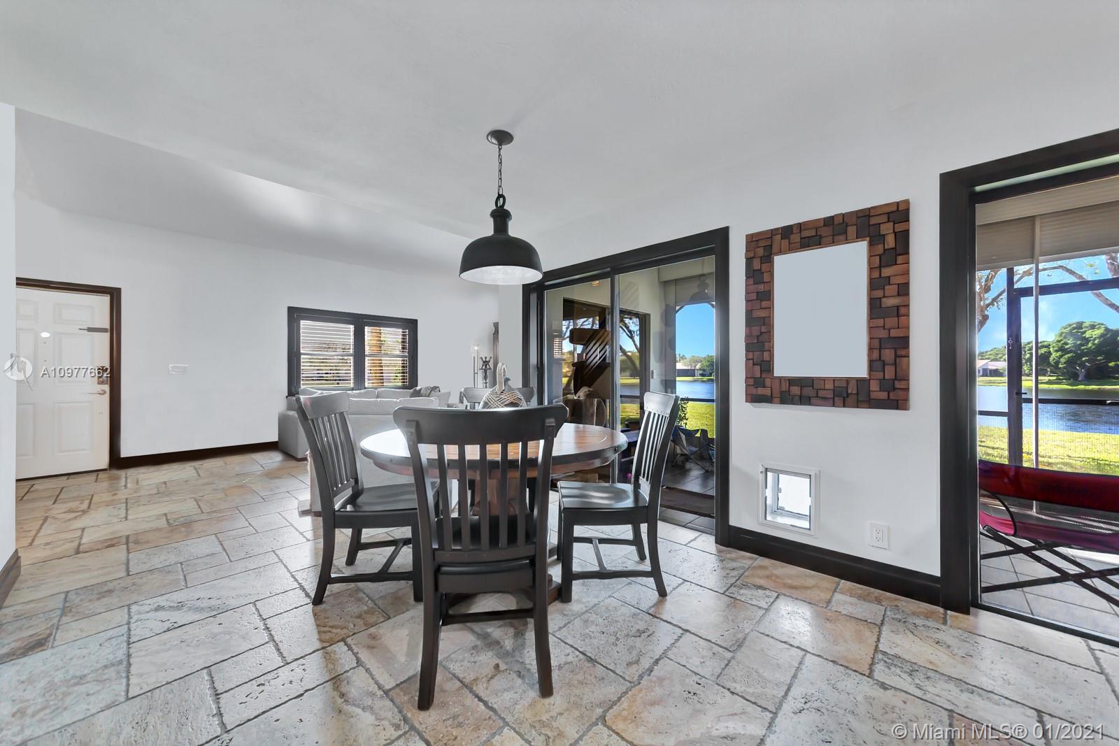 WOW! No expense spared by seller with the high end renovations throughout entire home. Property features 2 upfront parking spaces & plenty of guest parking. Mesmerizing views of the huge tranquil lake which home sits directly center of. Open floor plan corner unit features custom travertine flooring throughout first floor artistically framed by dark pure maplewood custom door casings and baseboards that also frame all doors and windows to match the custom dark brown Poplar Bahama shutters found throughout entire home. Too many high-end custom upgrades to mention but the photos and 3D Tour show this amazing property in all its glory which must be seen. Needs nothing but new owner and includes new accordion shutters. Access to Bonaventure Country Club as owner: SEE BROKER REMARKS