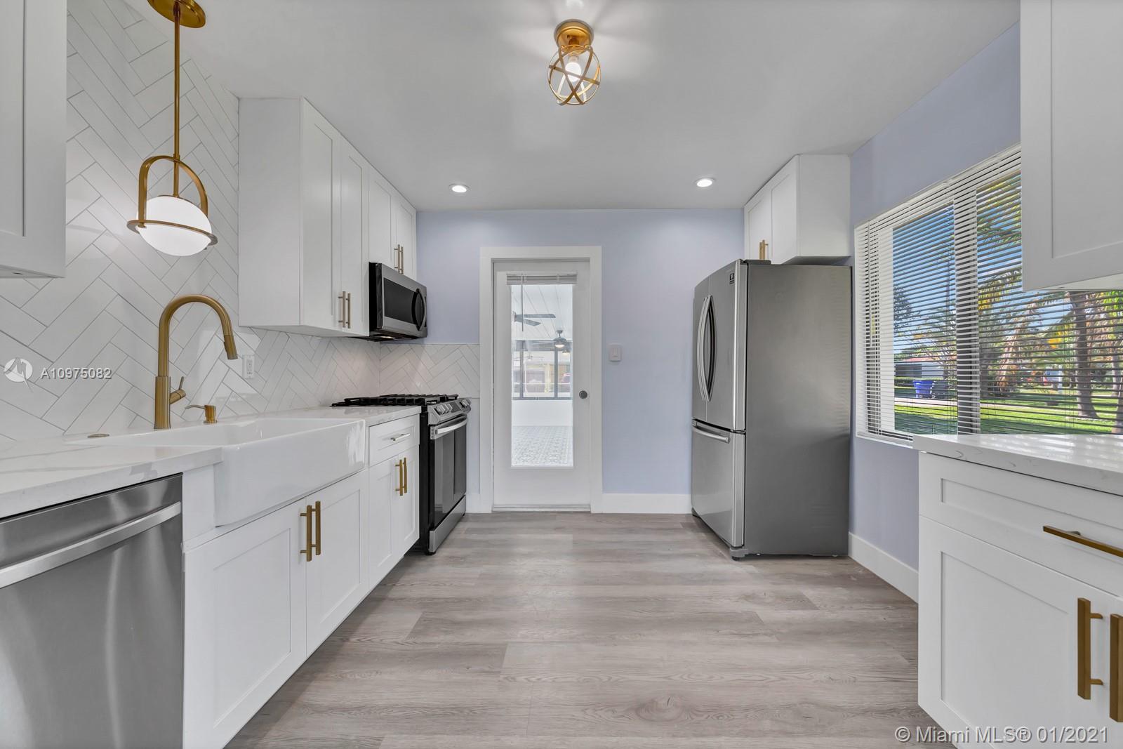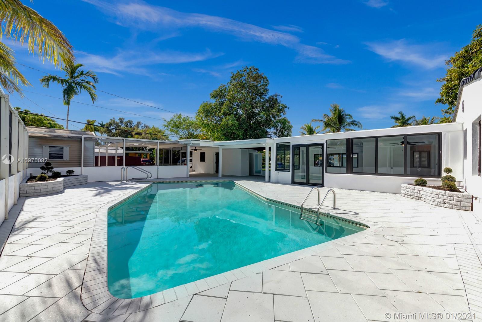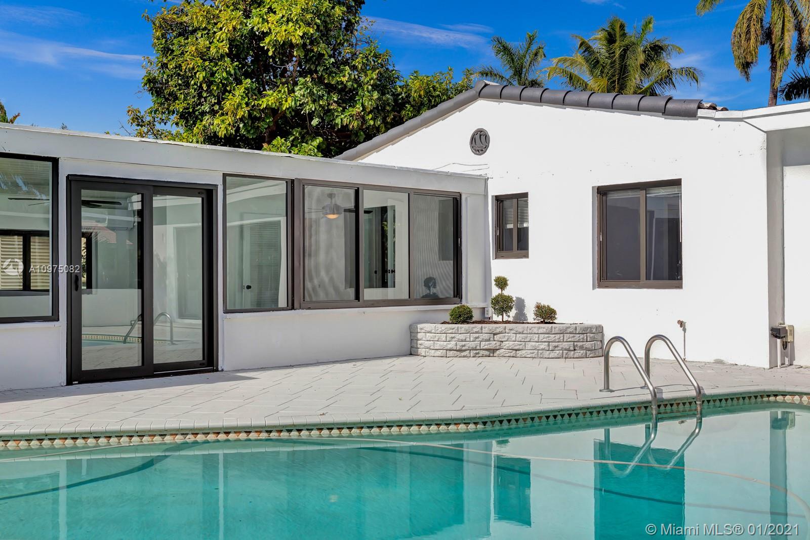 Espectacular smart corner home in a quiet and perfectly located neighborhood. House has been renovated including impact windows allowing for lots of natural light. Waterproof vinyl flooring in the main areas, top of the line stainless steel appliances and slide in gas stove. White soft closing kitchen cabinets, modern backsplash and gold finishes add to the charm of the house. Spacious master bedroom with direct access to the heated pool & patio. Bathroom features hexagon flooring which you enter thru a farmers door to enjoy a walk-in shower, stand alone bath tub & modern floating double sink. Oversized laundry, a cabana bathroom in addition to a Florida room over looking the pool making it the perfect entertainment home. Oh, did I say it has smart devices? A/C, switches, lock, and more!