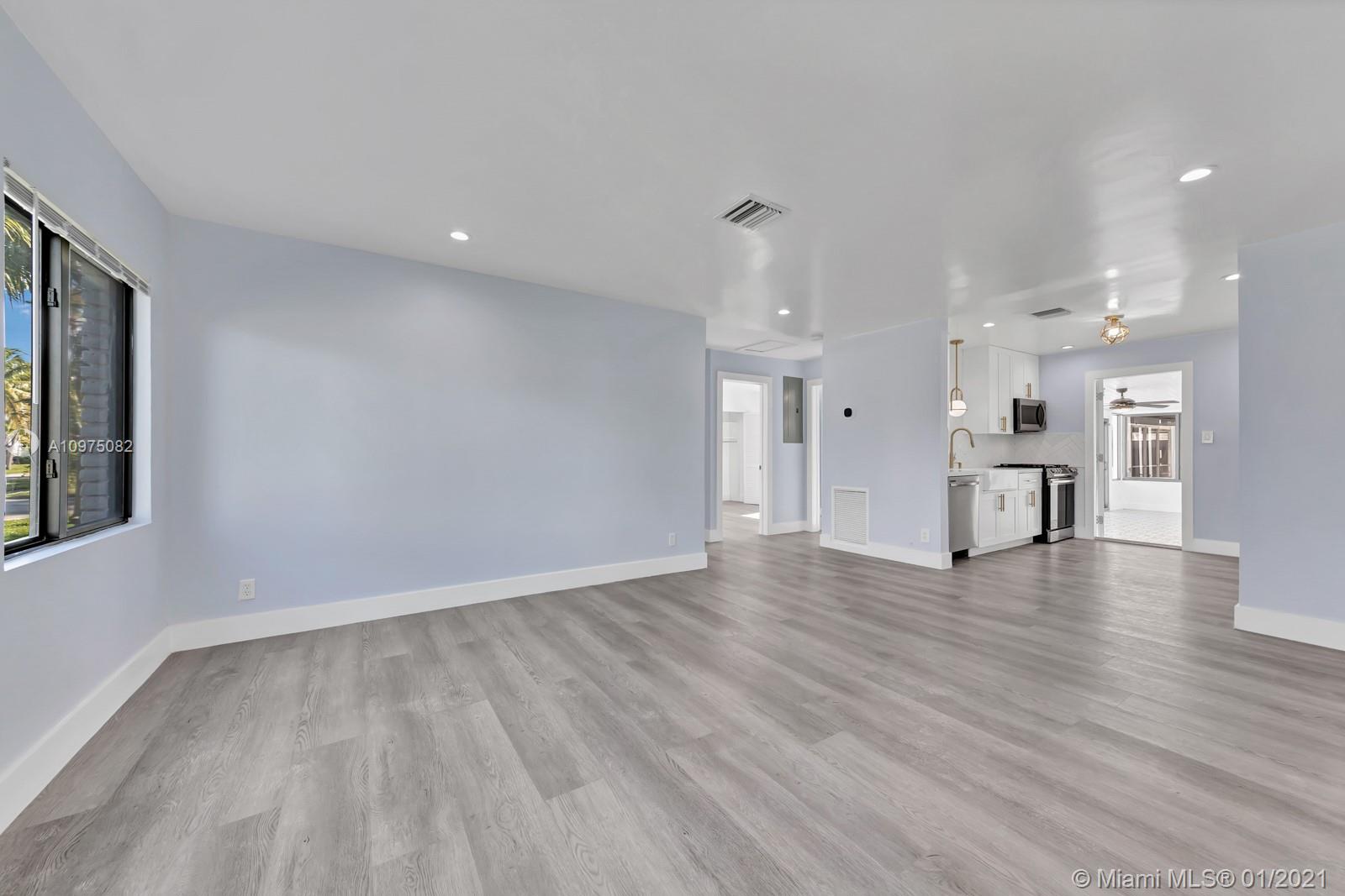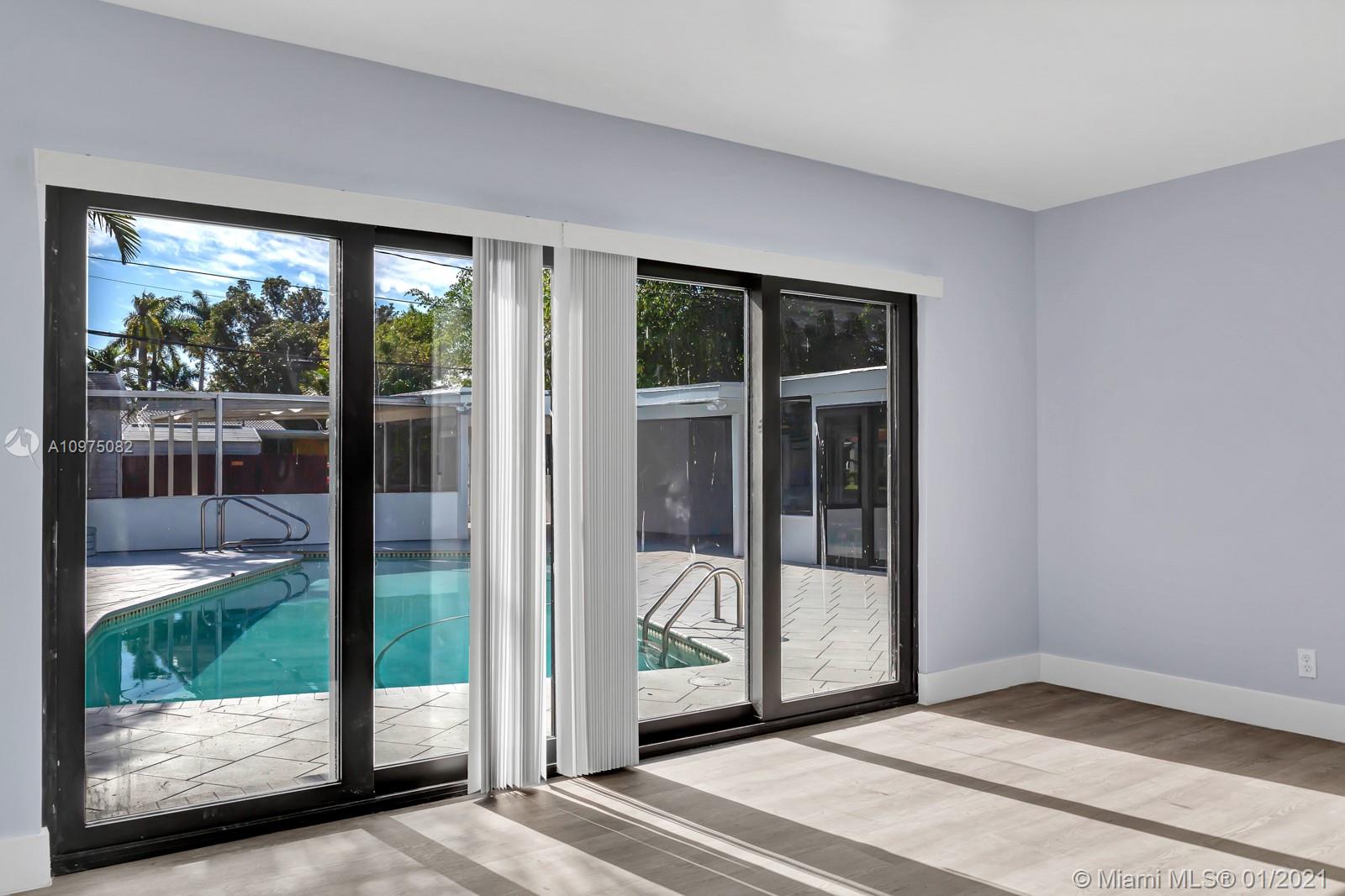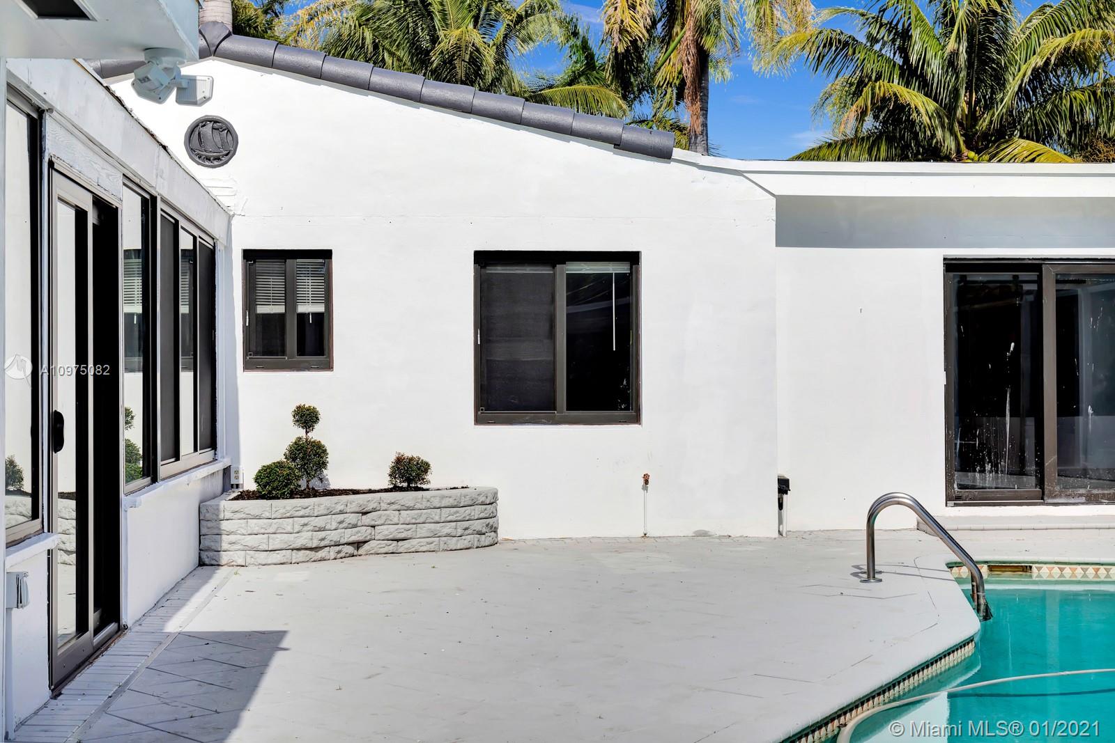 Espectacular smart corner home in a quiet and perfectly located neighborhood. House has been renovated including impact windows allowing for lots of natural light. Waterproof vinyl flooring in the main areas, top of the line stainless steel appliances and slide in gas stove. White soft closing kitchen cabinets, modern backsplash and gold finishes add to the charm of the house. Spacious master bedroom with direct access to the heated pool & patio. Bathroom features hexagon flooring which you enter thru a farmers door to enjoy a walk-in shower, stand alone bath tub & modern floating double sink. Oversized laundry, a cabana bathroom in addition to a Florida room over looking the pool making it the perfect entertainment home. Oh, did I say it has smart devices? A/C, switches, lock, and more!