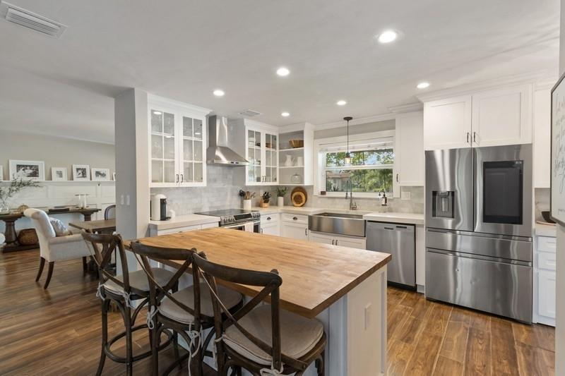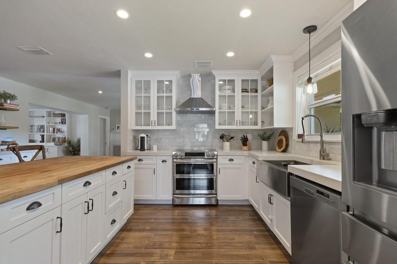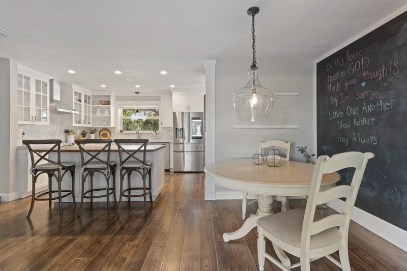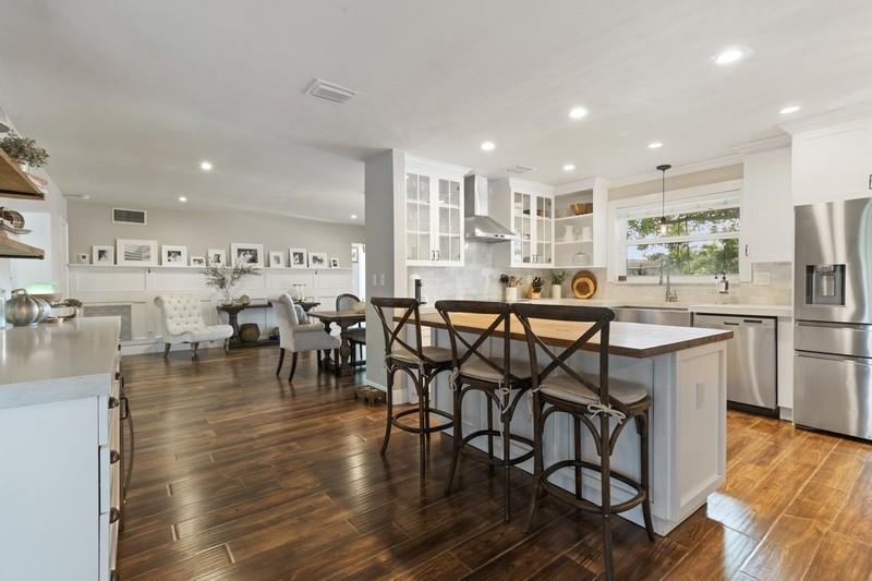 THIS STUNNING & BEAUTIFULLY UPDATED DESIGN HOME BOASTS OPEN CONCEPT & FARMSTYLE DECOR! RECESS LIGHTING/WINE FRIG/BUFFET OPEN SHELVES BUILT-IN, ISLAND/WHITE WOOD KIT CABNETS, NEWER STOVE W/HOOD/QUARTZ & BUTCHER BLOCK COUNTERS. MORE BUILT-INS/MASTER BEDRM CLOSET ORG & REDONE BATHRM. MOVING TO BACKYARD DESIGNER POOL & SPA W/ALL THE BELLS & WHISTLES! OVERSIZED PATIO FRENCH PATTERNE PAVERS. MISQUITO MISTER AROUND BACK YARD/SALT WATER CHORINATOR/HEATER/WINDOWS ALL HURRICAN APPROVED IMPACT. PLS EXCLUDE FRIG IN KITCHEN & PLAYROOM LIGHT FIXTURE EXCLUDED.
