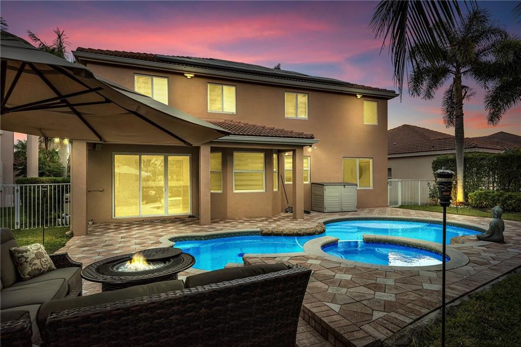 This spacious 2 story home in sought after Savanna has been totally transformed with today's contemporary look and feel; no expense was spared on this renovation. New flooring and stunning gourmet kitchen w/ center island. Full bedroom and completely remodeled bathroom on the first floor along with a modern laundry room. New impact windows throughout with slider to fully fenced yard with paver patio with overhang, and freeform pool. All bathrooms completely renovated in today's style. Stylish Spa-style Master bath with his and her rainfall shower heads. Spacious closets w/ closet organizers in all bedrooms and his and her closets in Master bedroom. Entire home operates on Solar Energy.