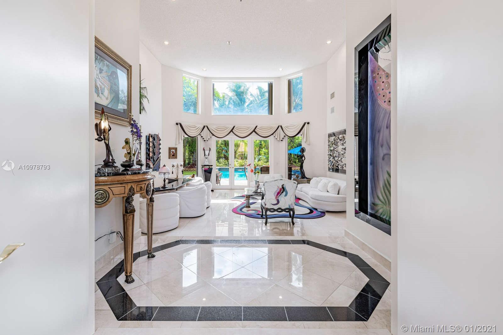 Dramatic 4 bedroom 3 1/2 bath pool home on oversized lot (17,357 sq ft). Three (3) car garage. New accordion shutters. New roof, driveway, kitchen and bathrooms. Pool area features lush tropical landscaping. Landscaping lighting both front and rear. Must be seen at night as well.