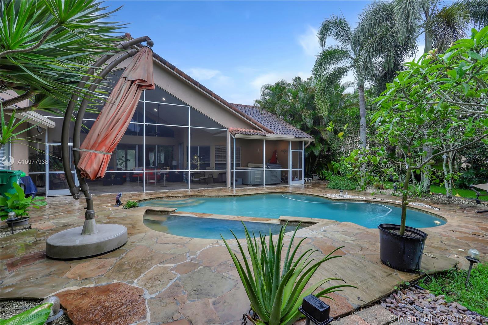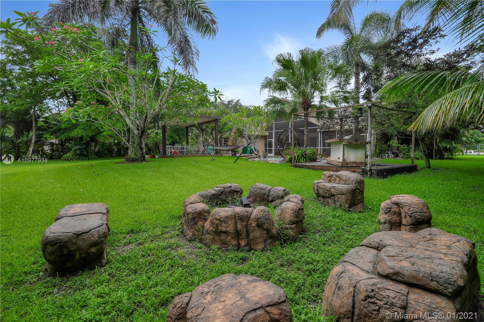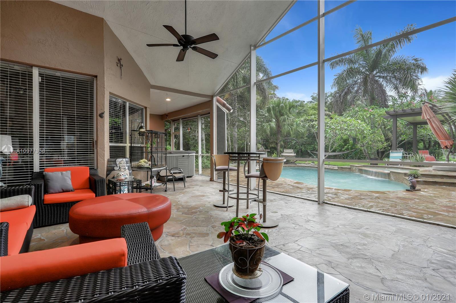 This SPECTACULAR ESTATE has Everything! A private 1.12 acre fully fenced estate on a waterway with a Salt Water Pool. Natural Florida wildlife are abundant from your backyard & New Sprinkler System. Remodeled and perfectly maintained home. Open floor plan with soaring ceilings. Large open kitchen with full granite countertops & backsplash, Custom wood cabinetry and new high-end appliances. Fabulous Family room with gorgeous coral fireplace. Two large Custom walk-in closets in master bedroom. Continuous flowing hot water loop for instant hot water from all faucets. Third car garage converted to bedroom with full bath. 7 Camera Security System. Waterfall pool and lush tropical landscaping with BBQ Island, New Pergola & Firepit. This BEAUTIFUL home has All LED Lighting.