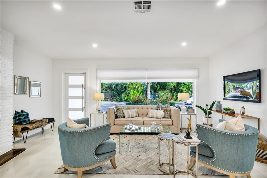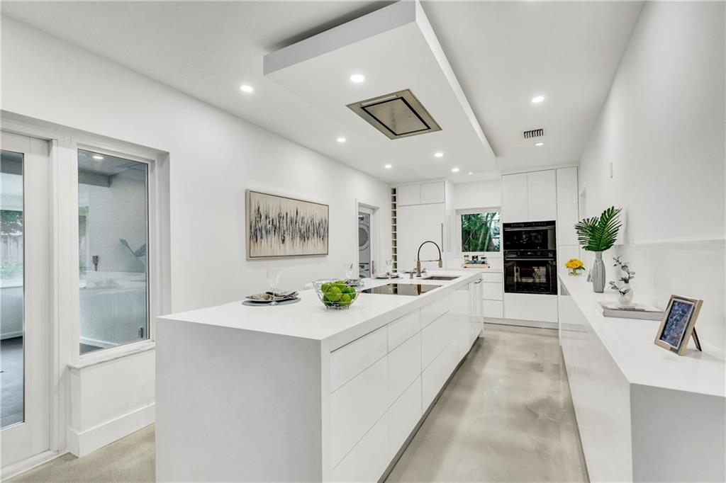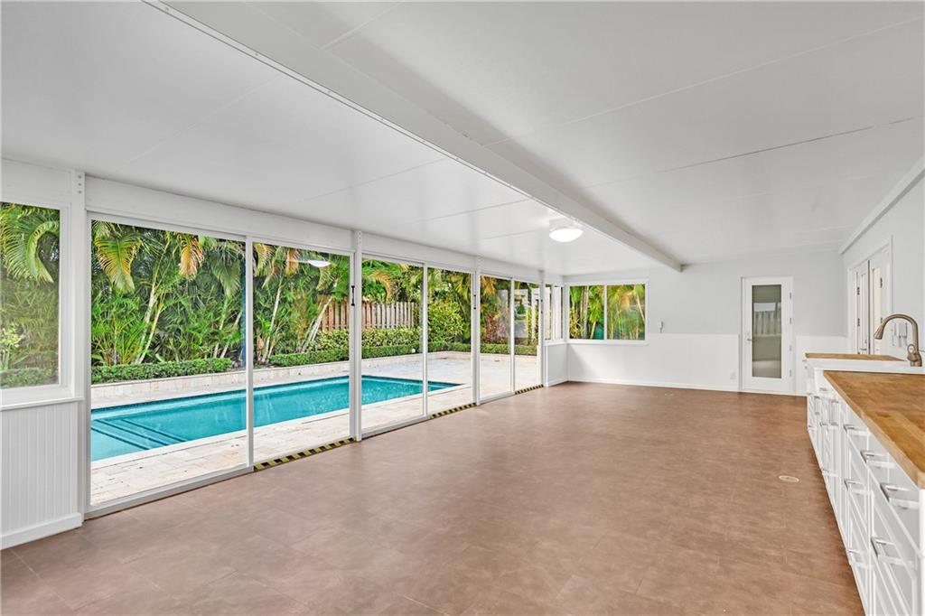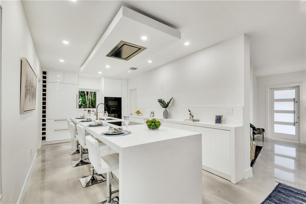 Ultra Contemporary Mid century two bedroom three bath pool home. No expenses spared on this beautifully renovated home. Impact windows doors and glass Impact garage door. Chef's Kitchen all white Italian Kitchen Cabinetry with Wolf induction island cooktop, Wolf double ovens, subzero refrigerator, quartz countertop waterfall Island seats 4 perfect for entertaining. Stunning polished concrete flooring throughout main living area, master bedroom with custom built in walk-in closets. Master bath streamlined finishes with rain shower, 2nd bedroom ensuite with walk in closet, 540 square foot Florida room with its own Inline ac unit, with large kitchen island with running water perfect for entertaining looking out over the beautifully landscaped pool area. Mins to shops of Gateway Plaza