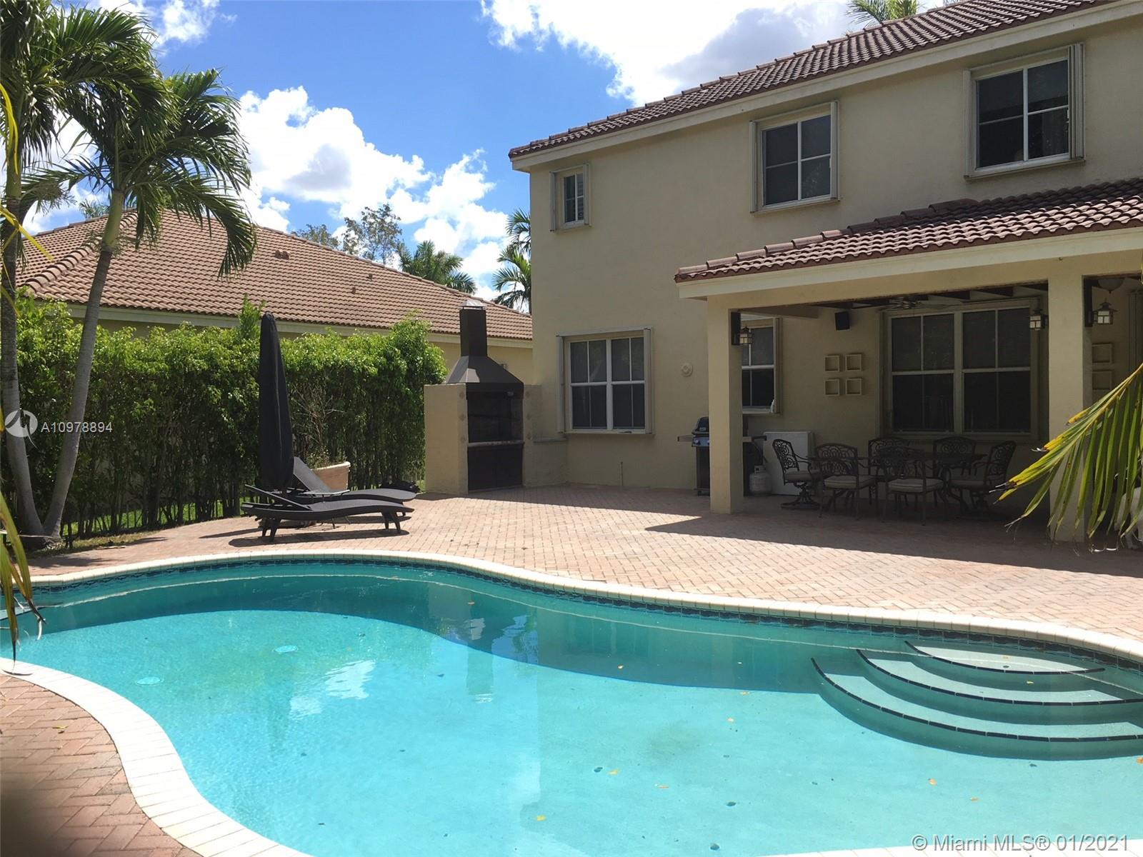 Enjoy living in this large 5 bedrooms 3 1/2 bathrooms POOL house, with a 2 covered car garage, located in one of the most famous Savanna Gated Community, with resort like amenities like Lap pool, Resort pool , Water slide, Interactive Kiddy pool and Baby pool. impeccably maintained and clean home that is ready to move in .Huge family room open to kitchen with peninsula, ready for parties. Enjoy outdoor Florida living from the pavered patio with pool, and barbecue. Upgraded features include accordion shutters , 42"" kitchen cabinets , granite countertops, SS appliances, Master bedroom with in suite his & her closets. Separated laundry room downstairs. Excellent location in an "A" rated school zone, near restaurants, major roadways and only 20 mins from Sawgrass Mills. Low HOA.