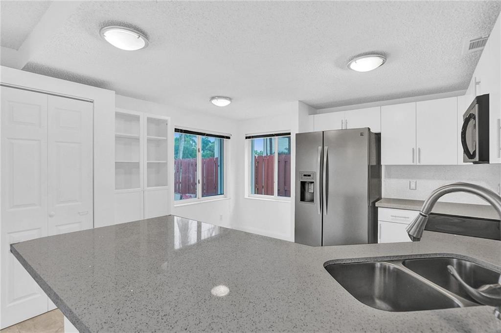 FRESHLY PAINTED 4 BEDROOM 2.5. BATH HOME OFFERS LARGE UPDATED KITCHEN OPEN TO FAMILY ROOM. TILE FLOORS THROUGHOUT. NEWER A/C MASTER BATH HAS TUB & SEPARATE SHOWER. ACCORDION STORM SHUTTERS CROWN MOLDING. 11X30 TILED BACK PATIO. PAVERS IN FRONT. NICE TROPICAL, FENCED PRIVATE BACKYARD!
