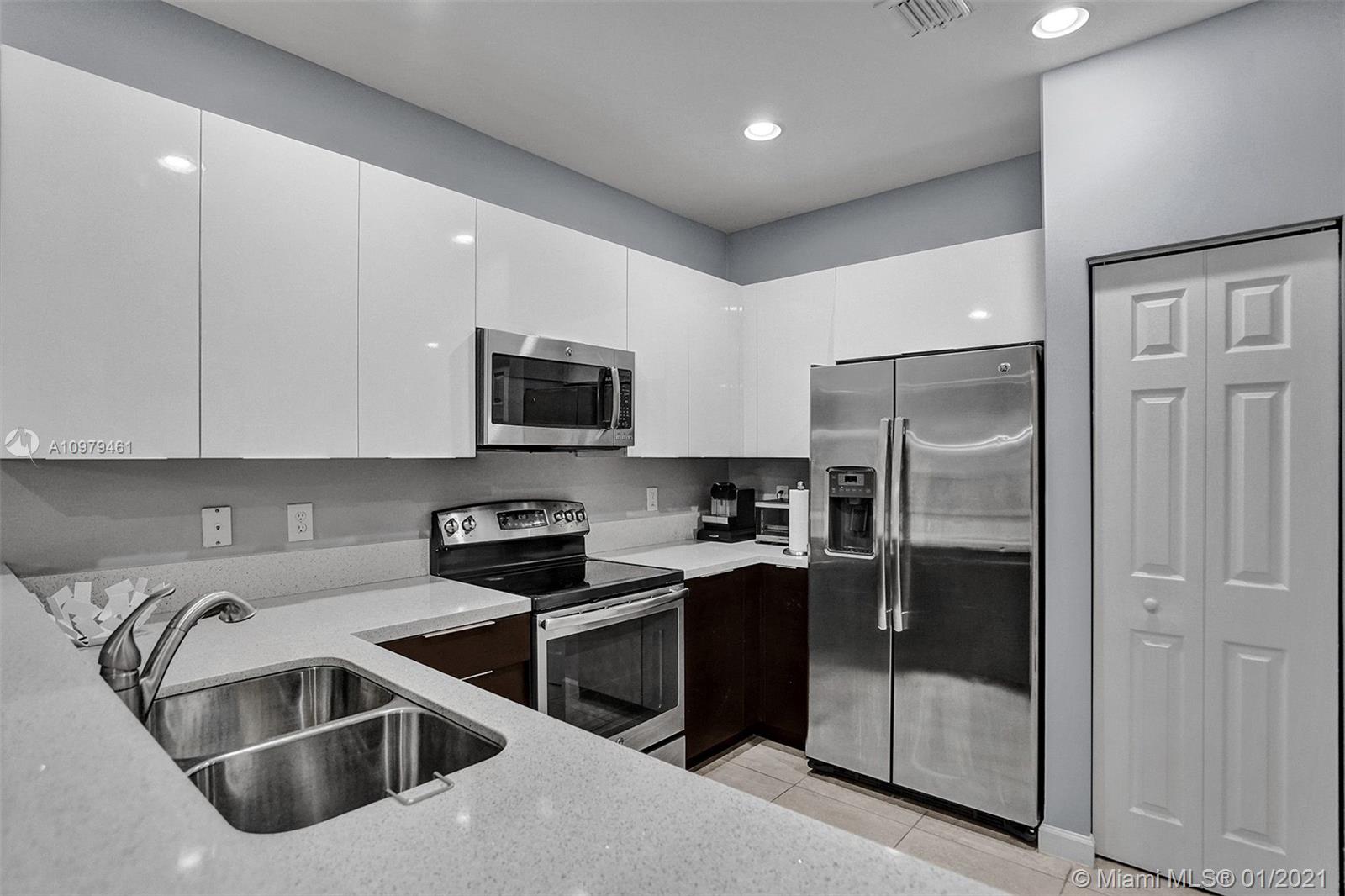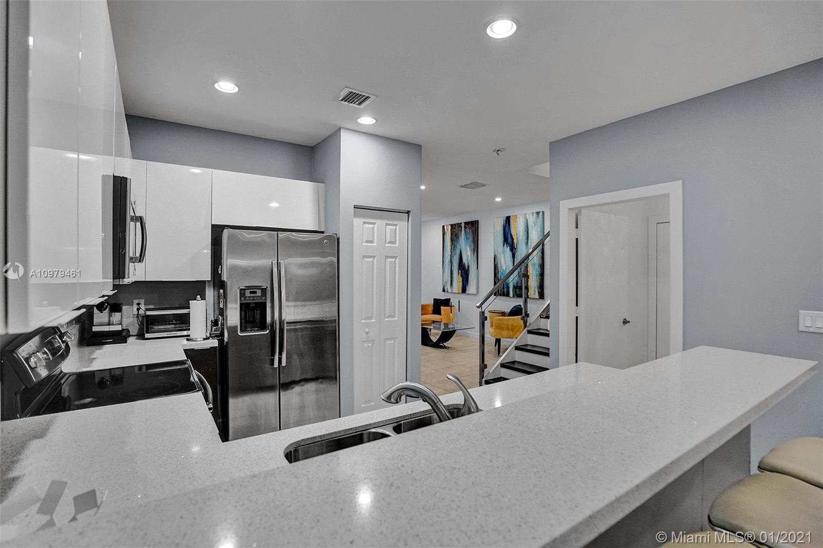 Wonderful and Stunning 2-story remodeled Townhome in a fabulous gated community! The interior welcomes you with a fresh coat of interior paint, smooth walls and ceiling and plenty of room to entertain guests in the living & family room. Modern glass handrail and remodeled stairs. Enjoy cooking in this lovely open kitchen with flat panel cabinets, quartz counter tops, and stainless-steel appliances, Combined dining room & family room grants you entry to your outdoor paver remodeled patio. Luxurious Master with a huge custom walk in closet and dual sinks, marble countertop vanity, and glass enclosed shower! This fabulous TH has extra storage room under the stairs, like no other. Amazing amenities like a Resort Style Living. Excellent location: Shopping, Freeways, A+ Schools.