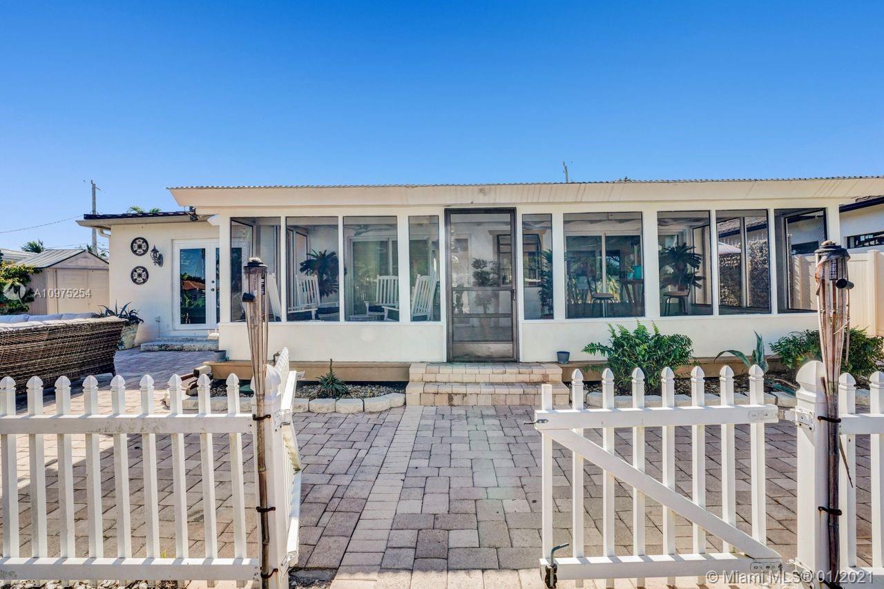 Bring your boat-waterfront beauty- -doubled in size in 2008 2,220+SF. 3 bed + den/office & 2 1/2 bath. Impact doors & windows, pavered circular driveway w/1-car garage & large rear screened-in patio. Dock/seawall & new Dingy in great condition -65' on water, in-water color accent lights. Fully fenced, space to entertain, BBQ gazebo w/pass-thru to kitchen, shed w/power outlets & outdoor shower. BIG master suite w/walk-in closet, high ceilings, ensuite bathroom w/Jacuzzi tub, shower, toilet room & vanity. Open kitchen w/wood cabinets, desk, counter bar & gas stove. Big Florida Room w/wall of windows out to dock. ADT security, 2 ACs. NOT A TEARDOWN. Laundry in epoxy floor garage w/TV. Office was 2nd car garage. Ocean access, no fixed bridges. Galvanized roof. Larger than SF on record