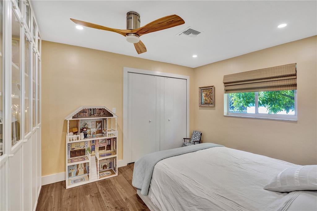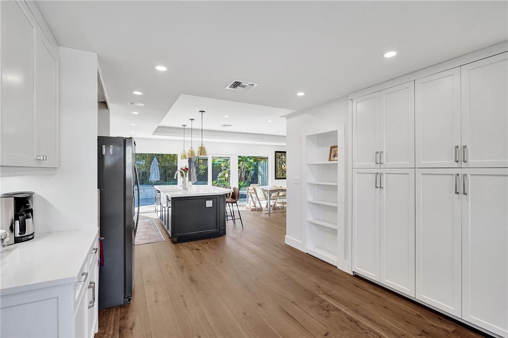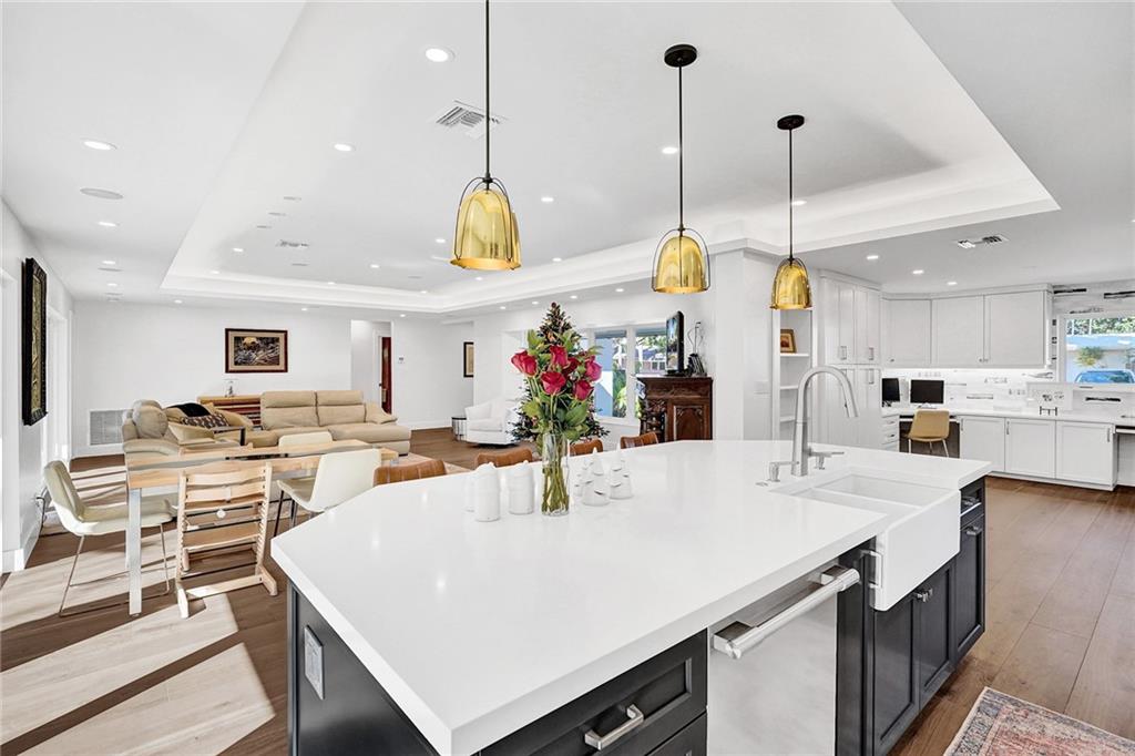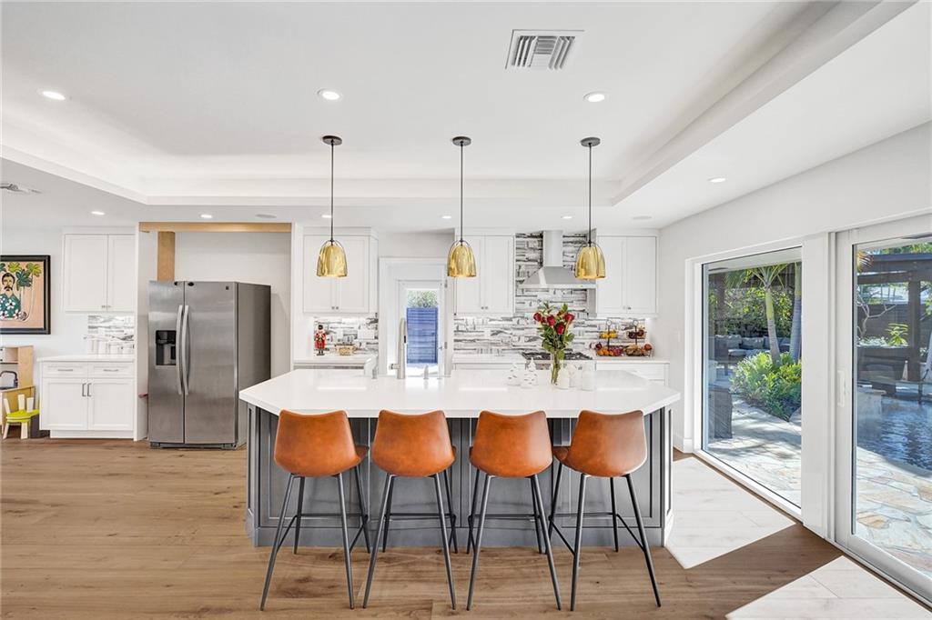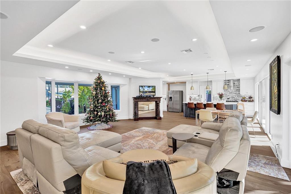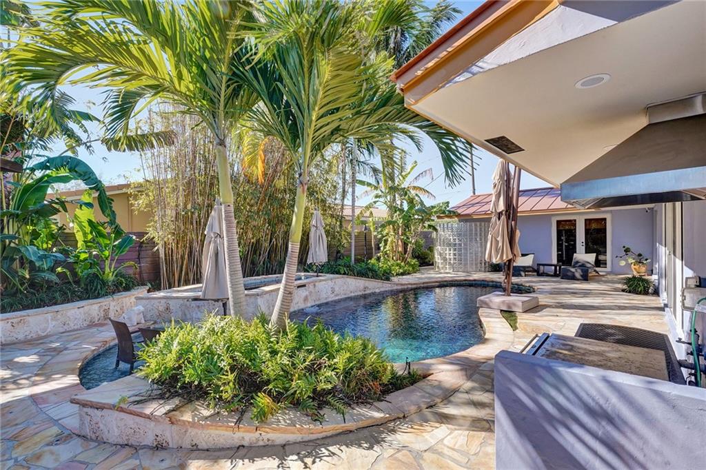 Completely remodeled 3 bedroom home in sought after Coral Ridge Country Club. This home features an open floorplan with seamless indoor/outdoor living. Updates included wood flooring throughout, impact windows/doors, recessed lighting, gourmet kitchen with gas range, updated bathrooms with heated flooring, custom built-ins with ample storage, sewer lines replaced with pvc and more. Backyard oasis boasts saltwater pool with heater and chiller, covered patio space, outdoor shower and grass area. Front and side driveways to accommodate multiple vehicles.