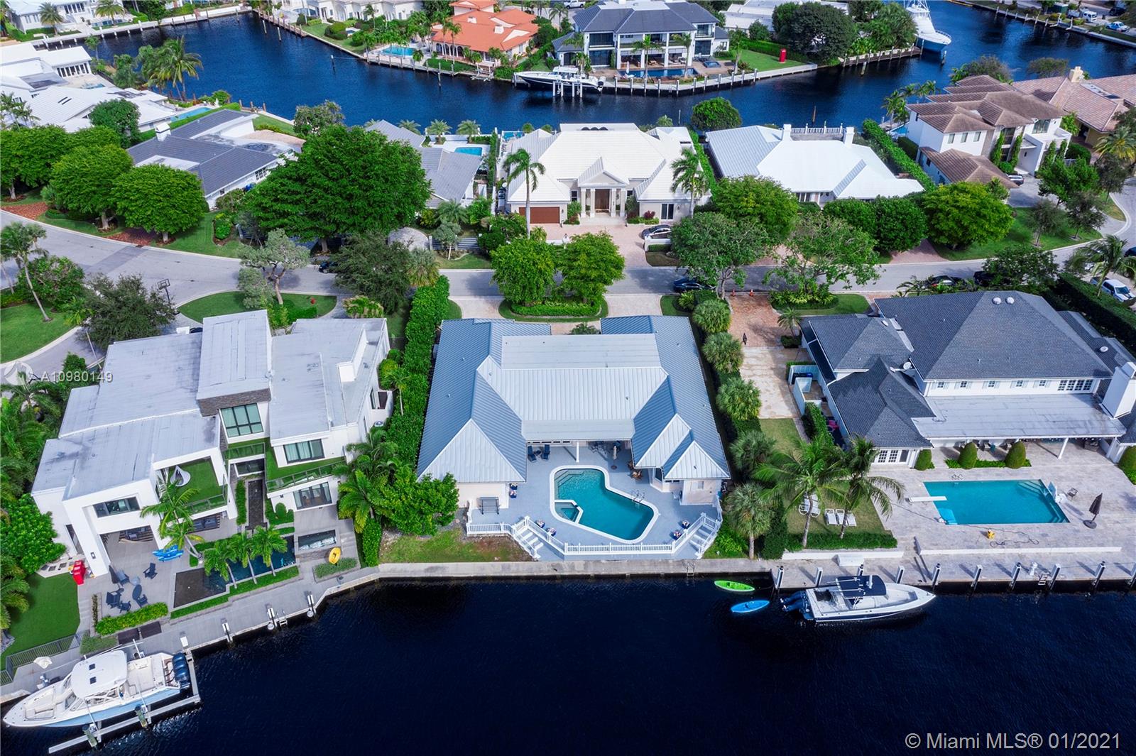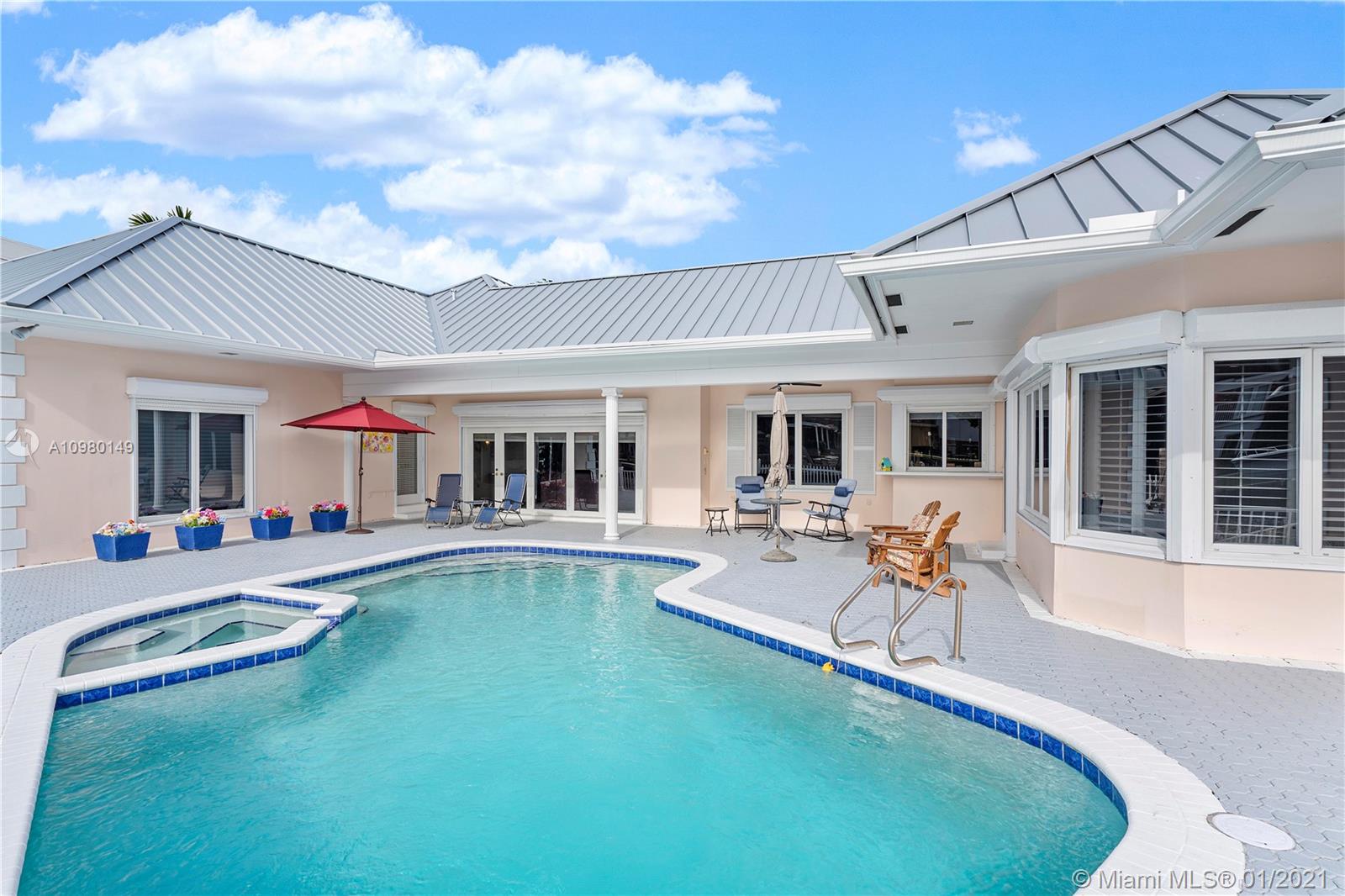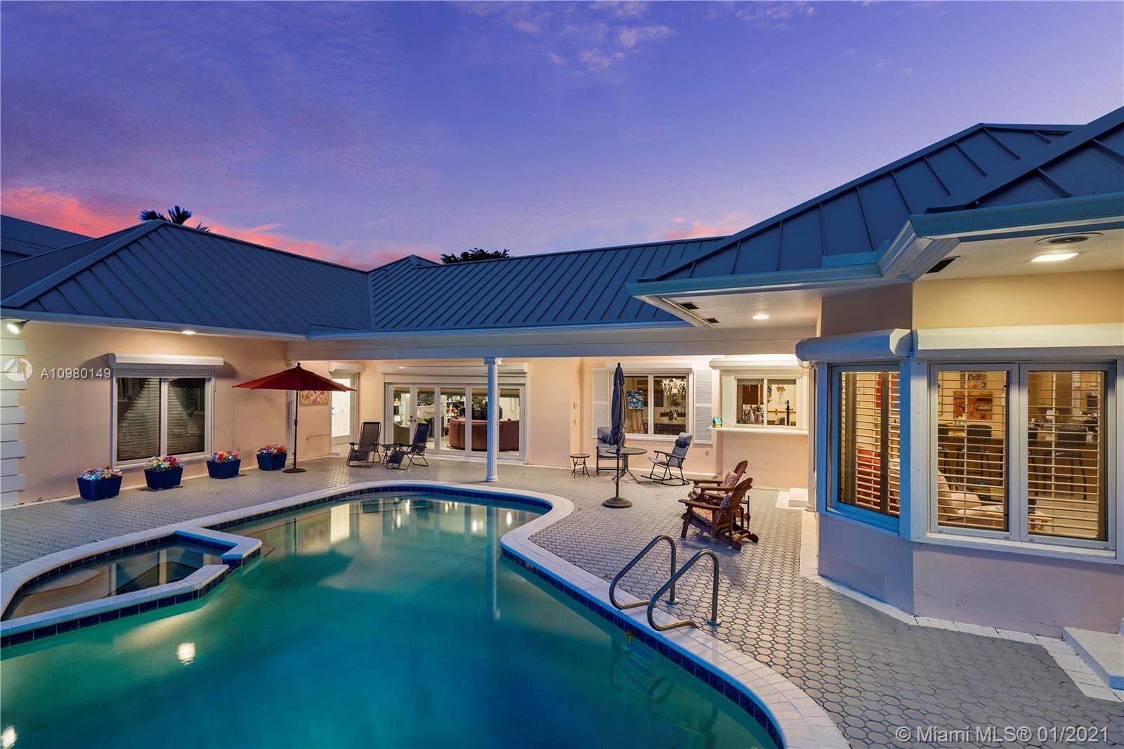 Spectacular waterfront home in gated family friendly Bay Colony. Nestled on a lovely waterfront lot, this wonderful family home features spacious VIP suite with large walk in closets. Huge gourmet kitchen with bonus family room and generous living space make this unique one story elegant home perfect for a family. Lovely pool area with dock and water view, brand new metal roof, porcelain floors, and light and bright. Property has a generator. 24hr security guard gated and located in the heart of Fort Lauderdale. Minutes from Pine Crest School.
