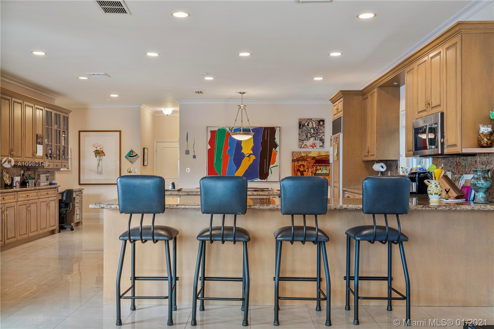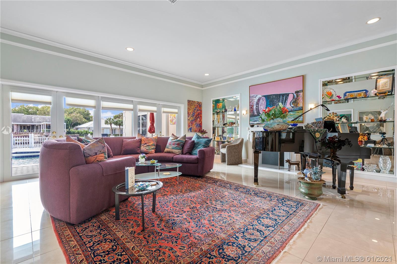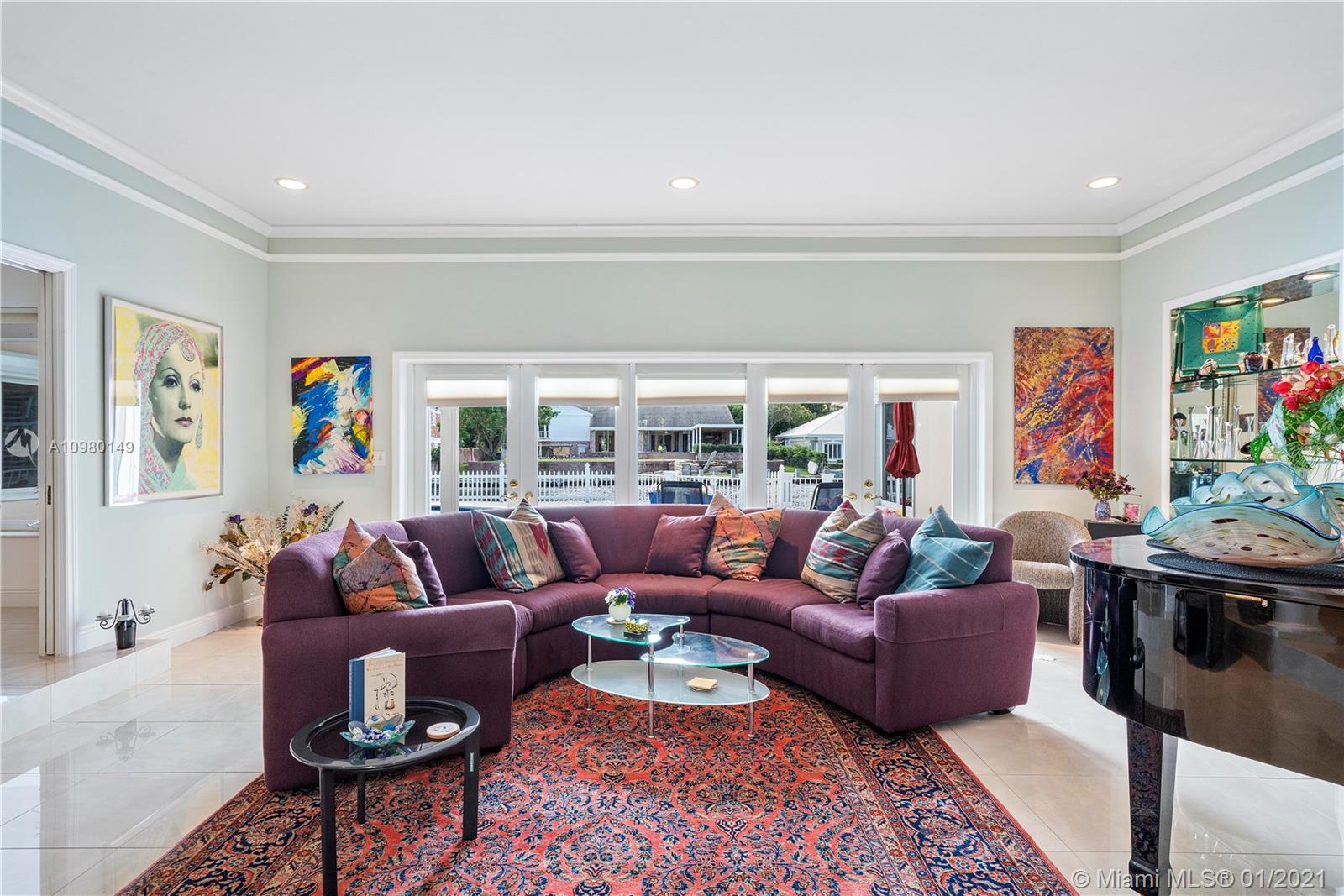 Spectacular waterfront home in gated family friendly Bay Colony. Nestled on a lovely waterfront lot, this wonderful family home features spacious VIP suite with large walk in closets. Huge gourmet kitchen with bonus family room and generous living space make this unique one story elegant home perfect for a family. Lovely pool area with dock and water view, brand new metal roof, porcelain floors, and light and bright. Property has a generator. 24hr security guard gated and located in the heart of Fort Lauderdale. Minutes from Pine Crest School.