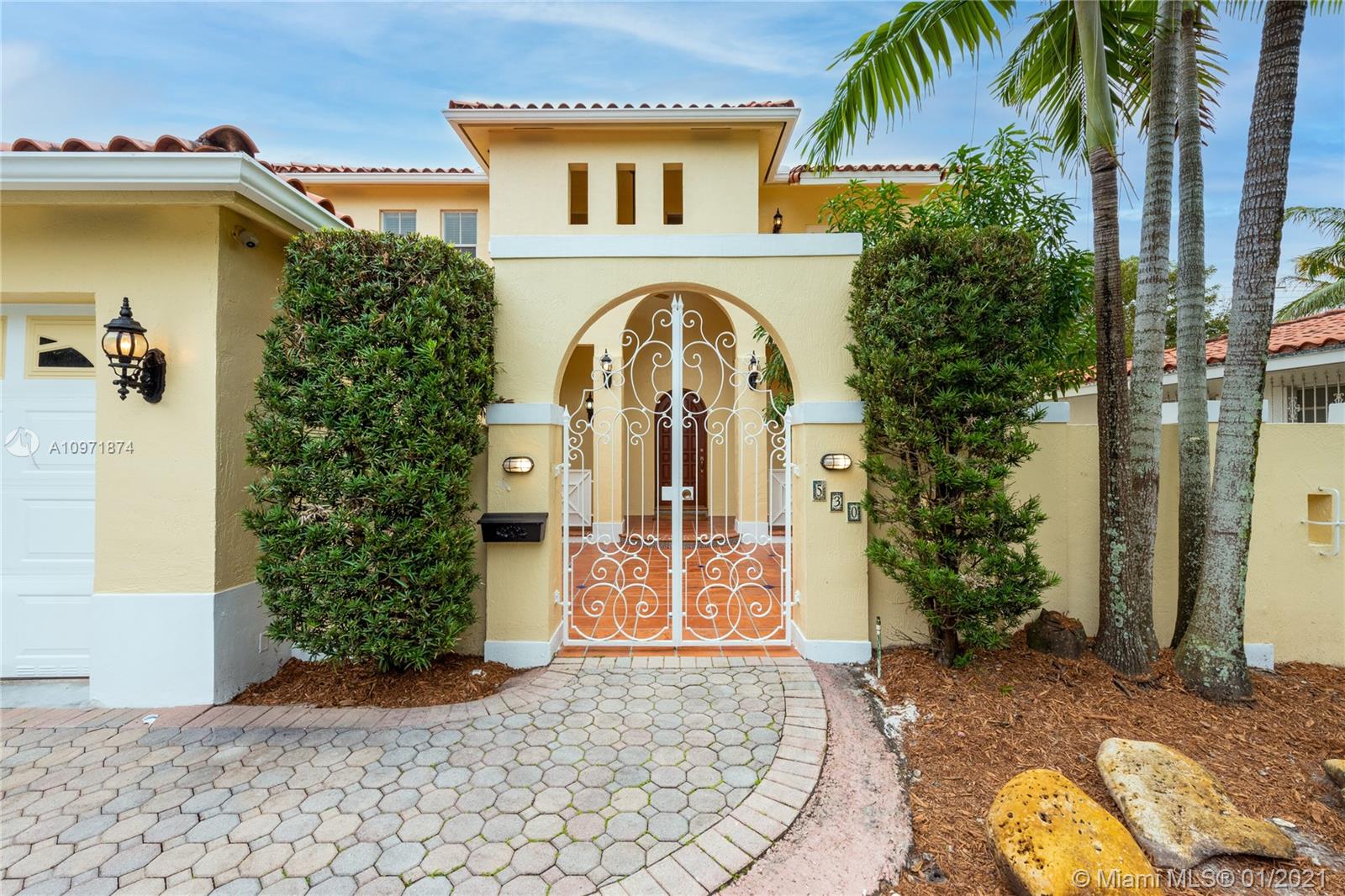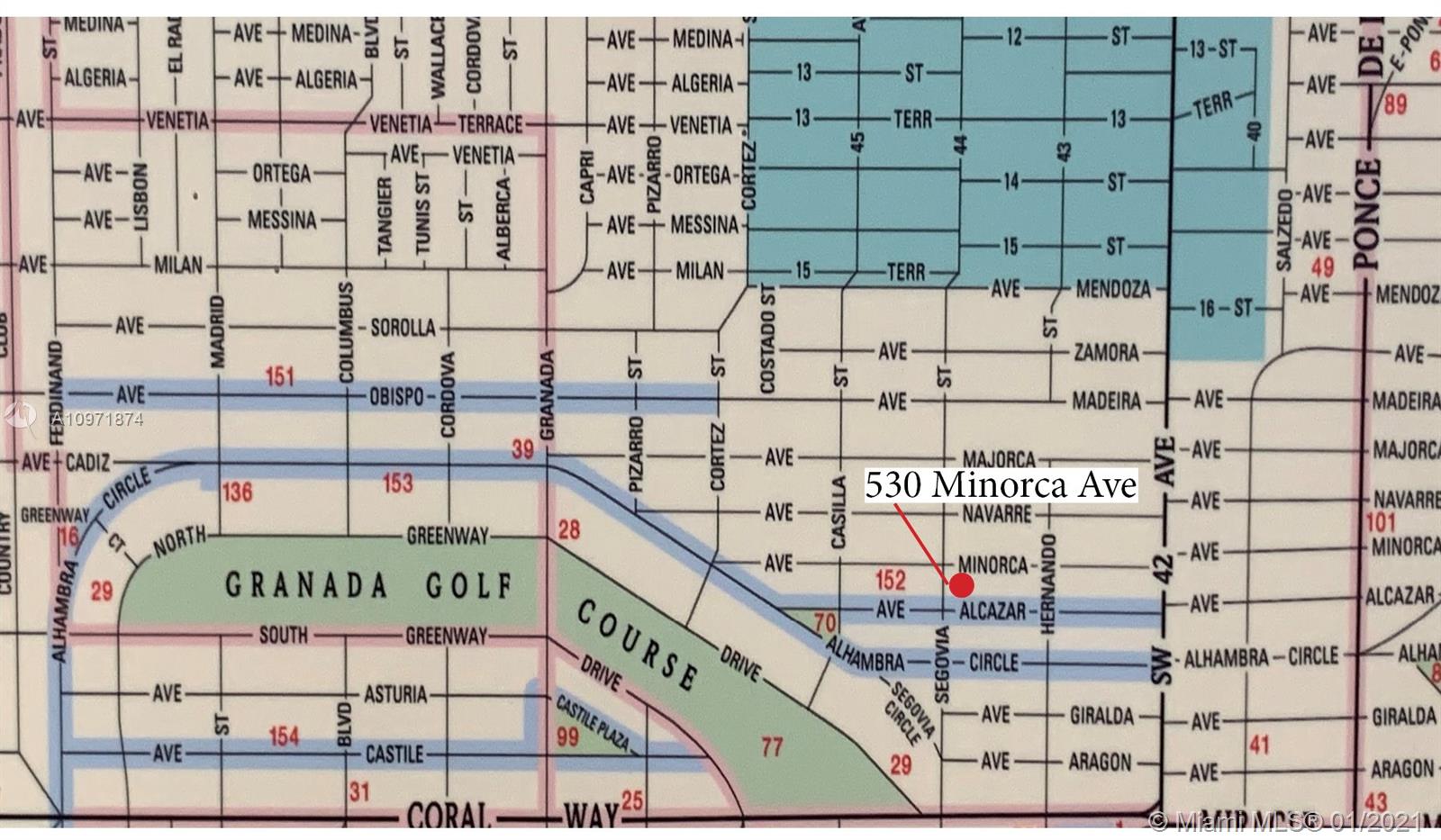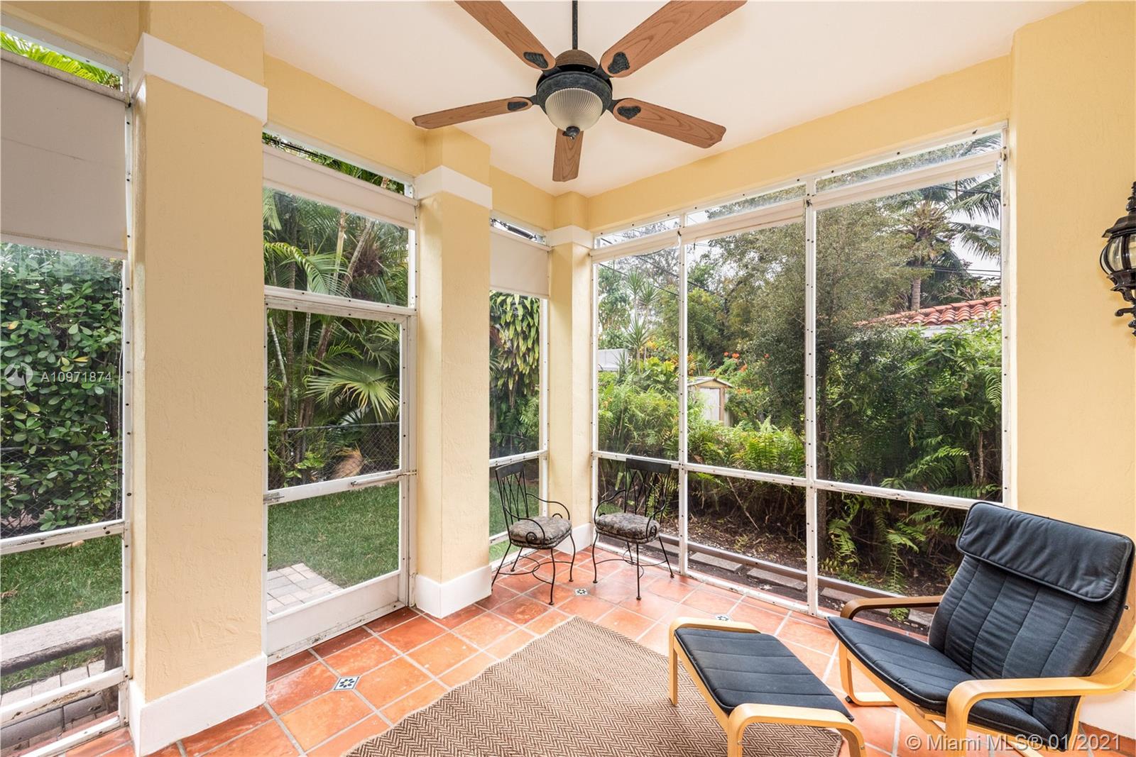 New Listing! Two-story, 4-bedroom/3 bath home on lovely, tree-lined street just N. of Alhambra Blvd. Walk to Miracle Mile, restaurants, & Publix. Built in 1995. Private courtyard entrance. Large foyer. Formal dining to the right, living room straight ahead. Eat-in kitchen. Downstairs guest room/office with hall bath, separate laundry room. Garage. Rear screened porch opens to a small backyard. Upstairs, master suite stretches across the backside of the house with walk-in closet, French doors to outside terrace, a spacious bath with jacuzzi, shower, his/her vanities. Across the hall are two bedrooms (one with a balcony) and a hall bath. High Ceilings. Most of the house is original but in good condition. The home is priced fairly, and it is FIRM. Limited showings by appointment only.
