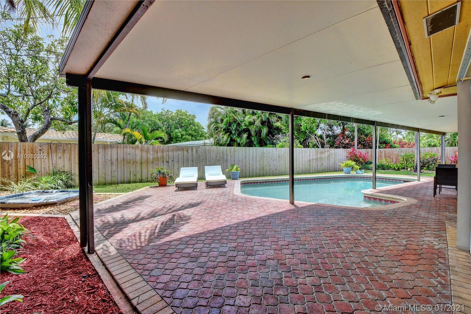 ** BACK ON MARKET thru no fault of seller. You MUST send pre-qual/POF before all showings ** Beautiful remodeled pool home in the heart of Poinsettia Heights. Large lot with lush landscaping and backyard for entertaining. Spacious 2 bedroom home with lots of closet space, 2 full bathrooms including steam shower, Jacuzzi tub, and 2nd big shower with seat. Master bedroom has French doors that open to pool area. Solar panels, pool, hot tub, and all pool/spa equipment stays. Outdoor shower with hot/cold water. Brand new 3500 ton A/C unit one year old with 9 year warranty. One car garage with built-ins, great curb appeal, and plenty of privacy. New fence with hurricane resistant gate panels, and durable, easy to install hurricane shutters for all windows and doors. Plus wonderful neighbors!
