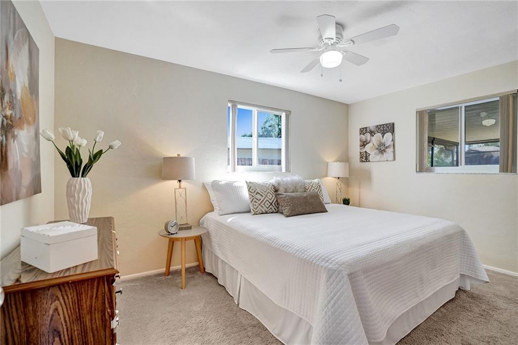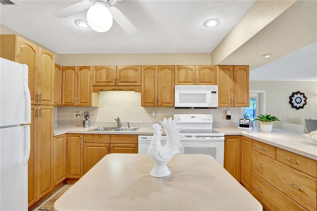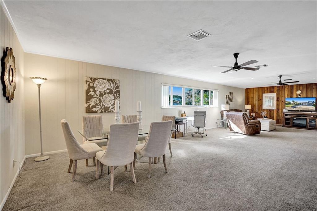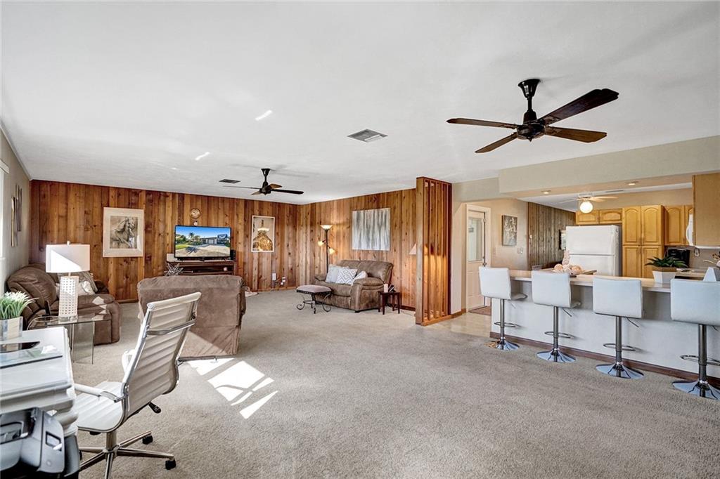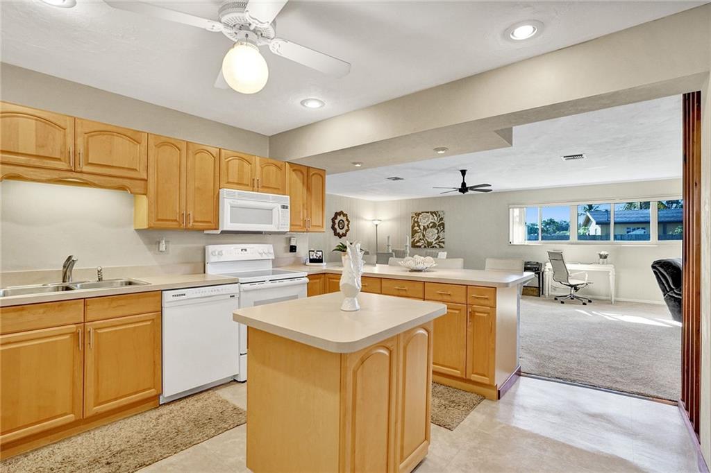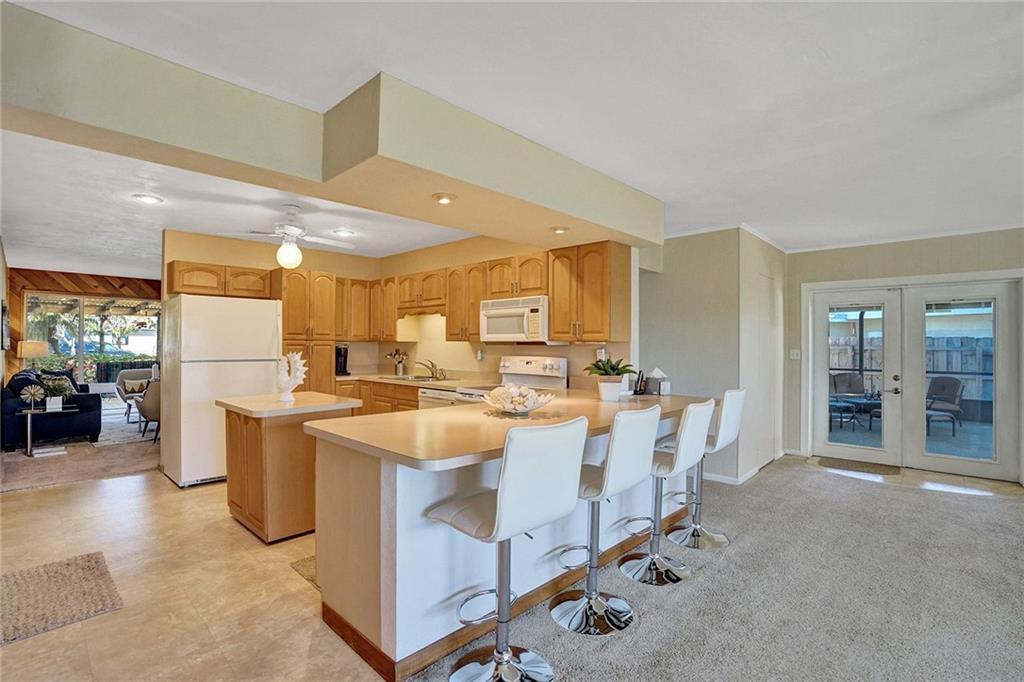 You will be amazed! Captivating custom features throughout this meticulously cared for Riverland home w/garage. Friendly covered front deck (20x15). Comfortable living room. Big classic kitchen enhanced by cafe counter, movable island, fully applianced, lots of cabinets/pantry. Grand family room (40x20) fit for a big, big screen and formal dining area, French doors out to large screened patio .. just perfect for entertaining! Each bedroom with its own personality, Murphey bed in 2nd bedroom, renewed baths. Sunny laundry room has added storage cabinets. Private fenced back yard. Storage shed/electric for workshop. 16X8 cement slab for recreational. Hurricane impact windows, panels for doors. Double-wide driveway. Unbeatable location convenient to everything. Perfect choice. Check it out!