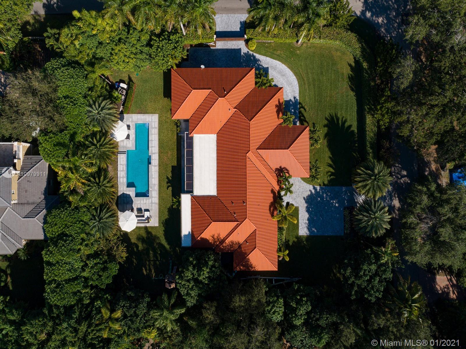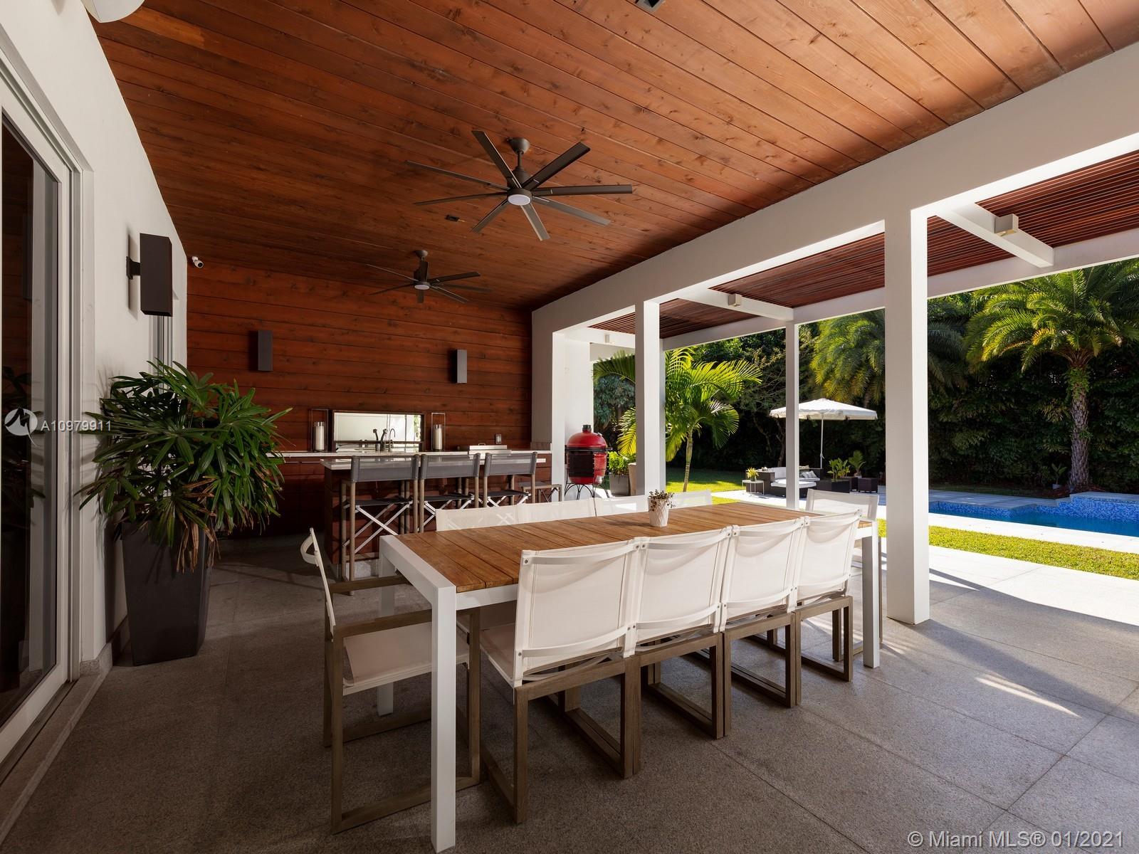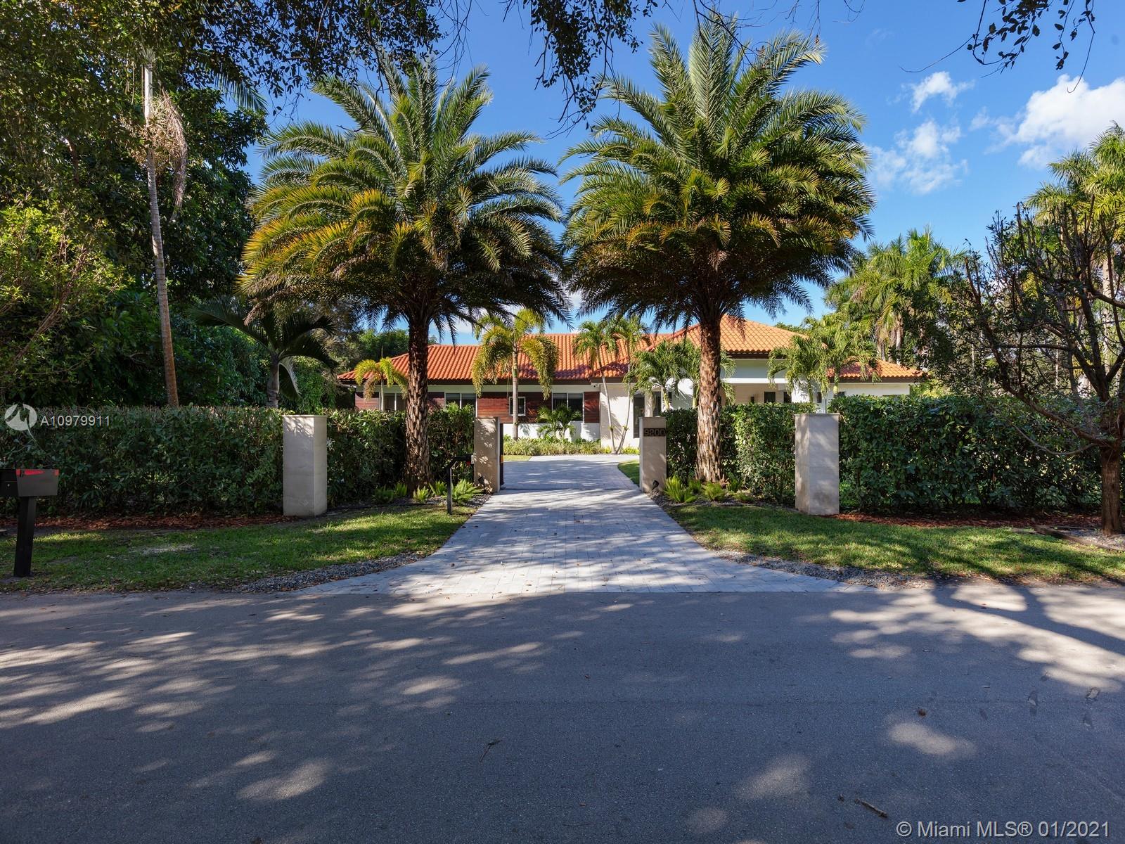 Impeccably pristine estate located in N Pinecrest, nestled on a 33,976 sf gated lot, surrounded by manicured landscaping. This estate has been completely renovated w/ fine finishes & high ceilings throughout. Welcomed by a spacious open floor plan w/ an elegant living rm, dining, breakfast area & numerous imp windows & doors providing fascinating views. This 6-bedrm, 5-bathrm residence boasts expansive living areas incl two family rms, media rm, & open concept kitchen w/ top-of-the-line appl, wet bar & wine gallery. Master suite offers a spacious setting w/ spa bath, walk-in closet & access to patio area. Discover an outdr oasis w/ covered patio, lounging area, summer kit, & large swimming pool. Additional Features: 2 Car gar, service quarters, mango fruit trees. Pinecrest Elite Schools.