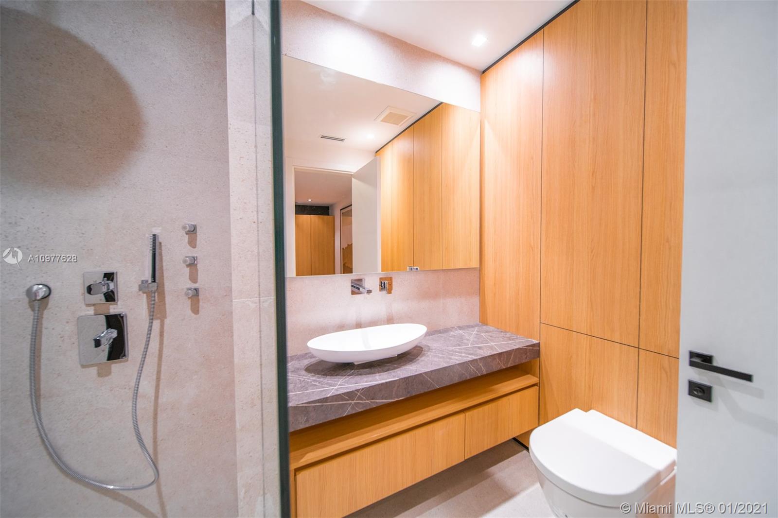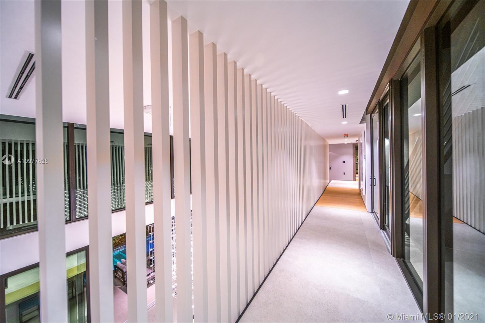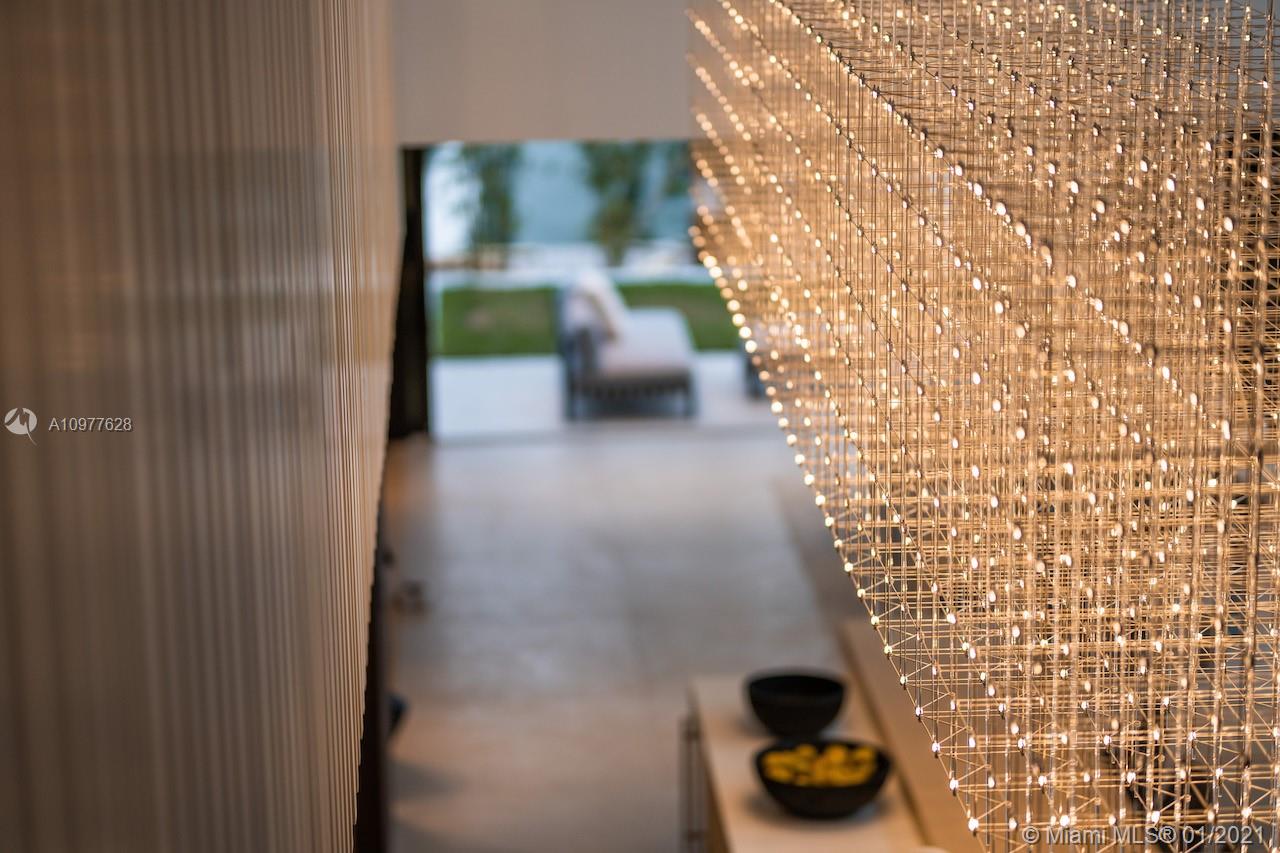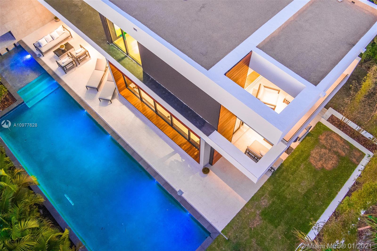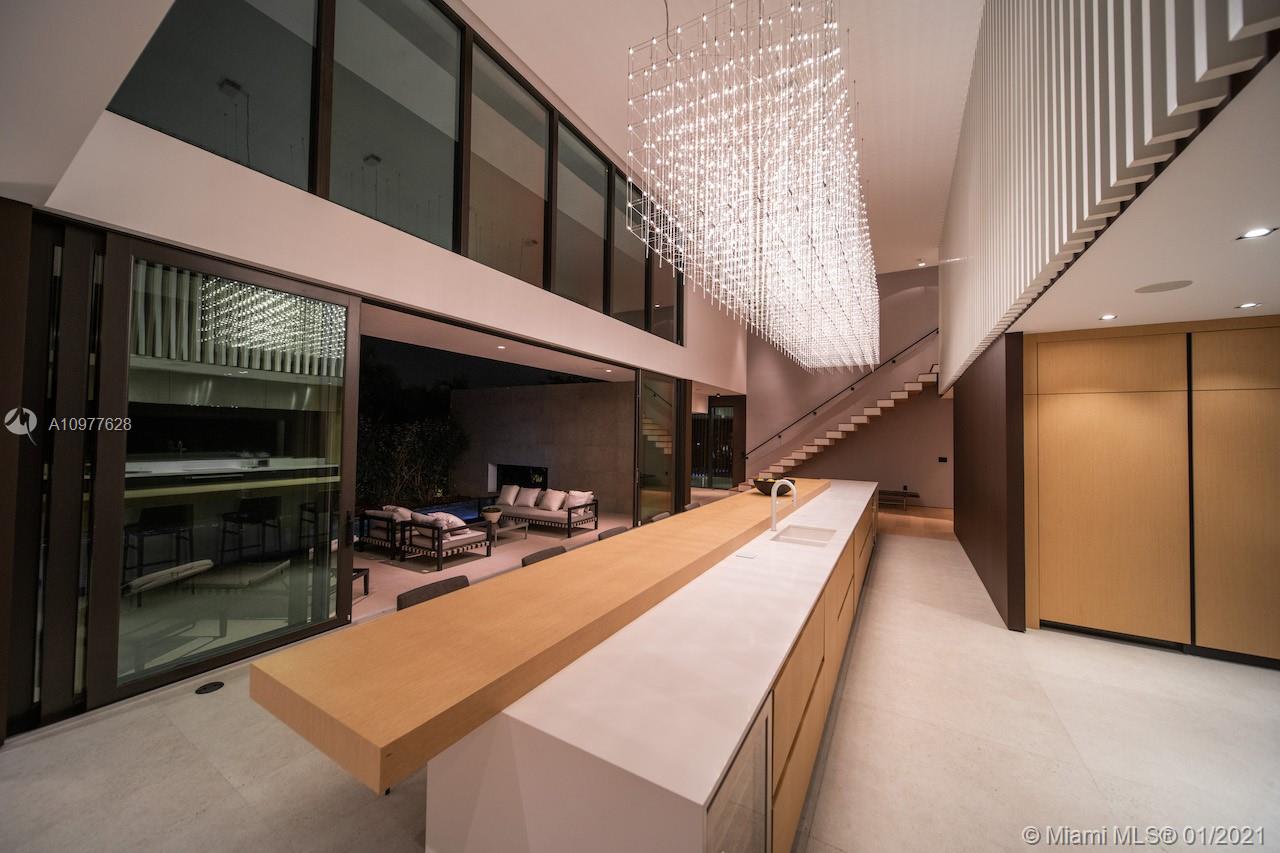 Villa "L'Artiste" is a modern estate that sits in a quiet gated community encompassing the famous Normandy golf club and brand new tennis center. The property broadcasts 5 bedrooms with 5 en-suite bathrooms and 1 powder room.Boasting opulence and sophistication with design by Togu, the main level of the home provides a fully equipped kitchen with Miele appliances, a 22 foot bianquissimo quartz countertop, 20 ft high soaring ceiling and a 20 ft long LED Chandelier across the living area. A 500 sqft Rooftop overlooks the Golf course, the canal and the Bay. Full size sliding doors lead to a 55 foot long boat dock and oversized heated pool prolonged by a decorative 40ft pond. Finally, Villa "L'Artiste" is staged by Meredith Baer with Modern furniture to boast luxurious indoor-outdoor living.