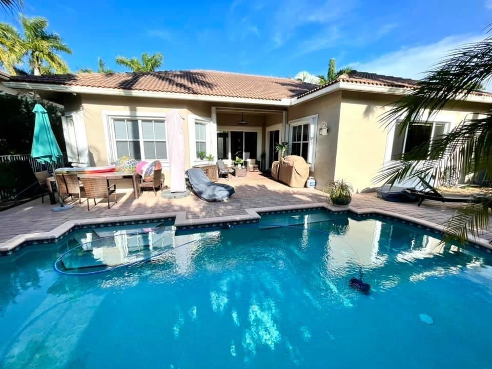 Bring your tooth brush. Exquisite, completely renovated and upgraded two-story home: 5 bdrms + den/office/gym & 3.5 baths! Oversize Master Shower. Master on main floor. Walk In front coat/storage closet. Oversize lot with fabulous floor plan (split) and circular driveway. NEW flooring and newly renovated bathrooms. Custom-built kitchen w/wine fridge and warming drawer. A gorgeous landscaped tropical paradise with custom beautiful salt water pool. Exterior landscape lighting throughout. Accordion shutters and impact glass windows. Custom impact glass double door entry. Custom closets. Security cameras and alarm system included. Walking distance to a beautiful neighborhood park: basketball court, soccer field, and playground. Most desirable friendly neighborhood: Weston Hills Ctry Club.