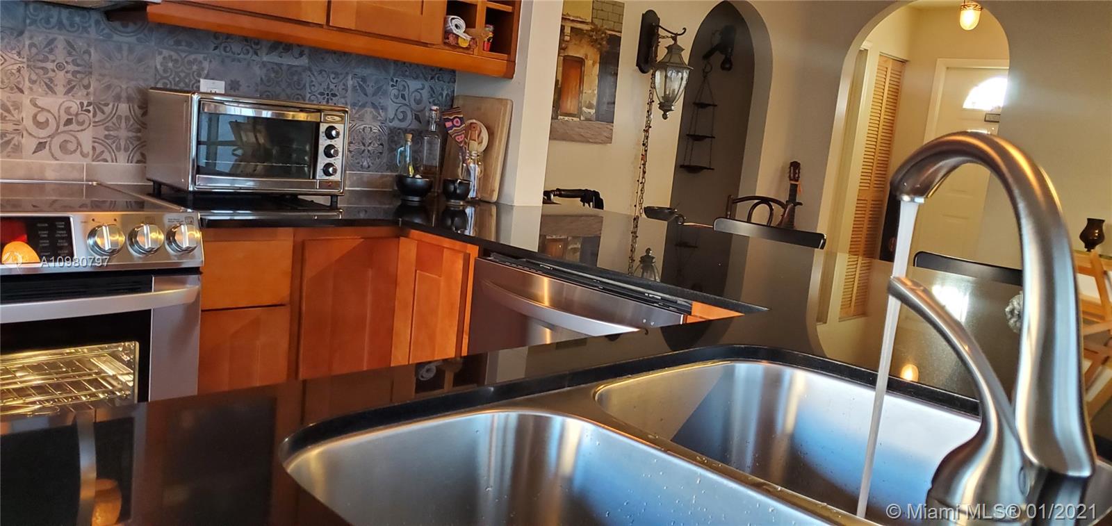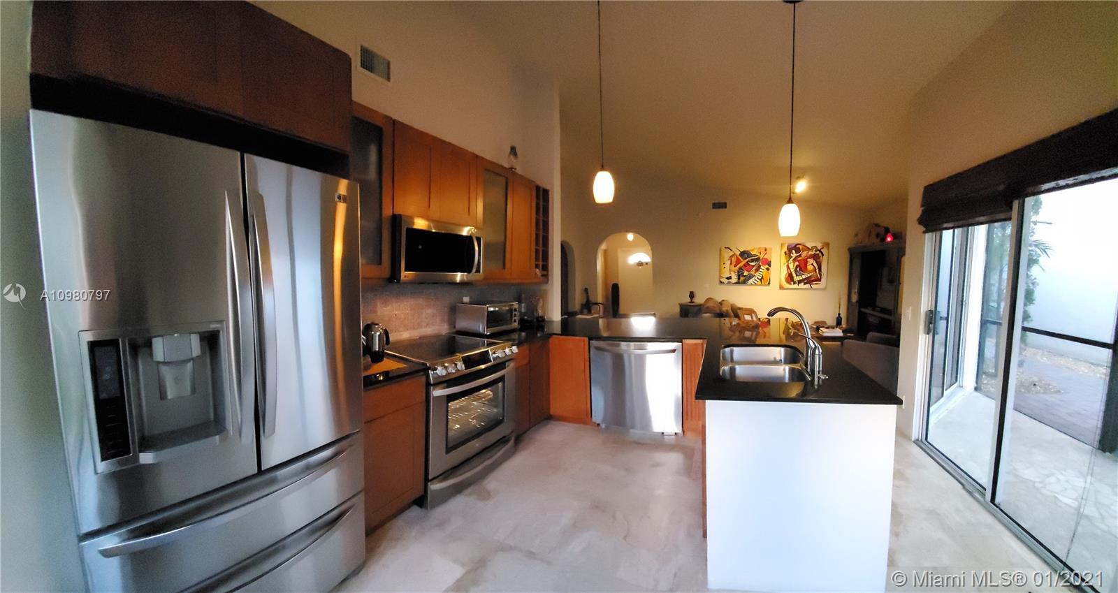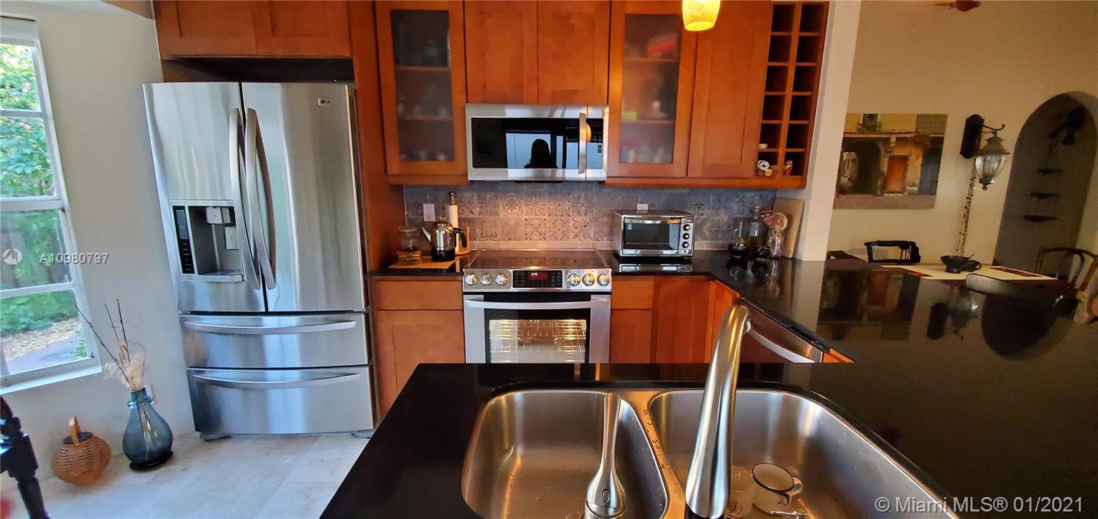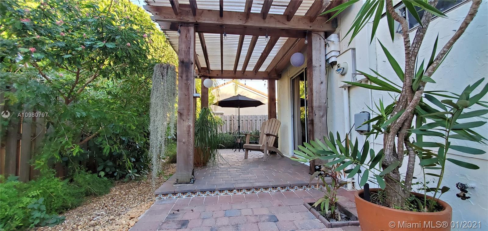 Absolutely gorgeous 2 bedroom 2 bath substantially remodeled home with huge Zen-like patio, must see! neutral color beautifully designed Travertine marble flooring throughout. Top of the line new LG kitchen stainless steel appliances in tastefully well thought to cook and entertain type of kitchen featuring quartz ample counter tops, pretty backsplash, and modern sleek cabinets. Chic bay window breakfast area looking into the inviting patio. NO popcorn ceilings, professionally painted with reflective type of paint. Brand New Air Conditioning,1 month old! Perfect 2009 roof. Secluded relaxing patio part screened in, privacy fence all around, pavers, romantic covered pergola surrounded by trees and greenery that provides peaceful relaxation. Close to famous Weston Town Center, shop and dine