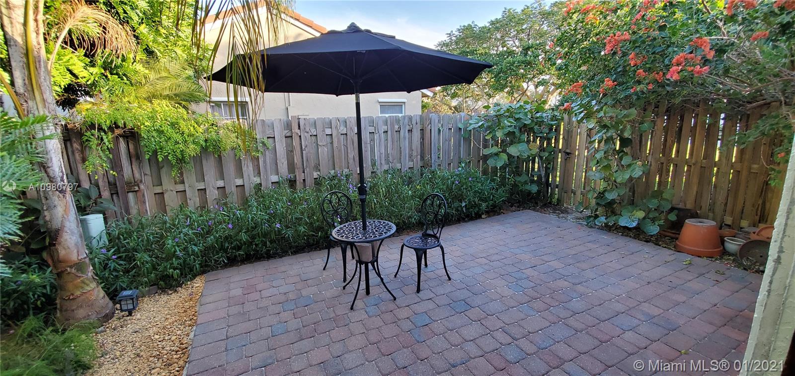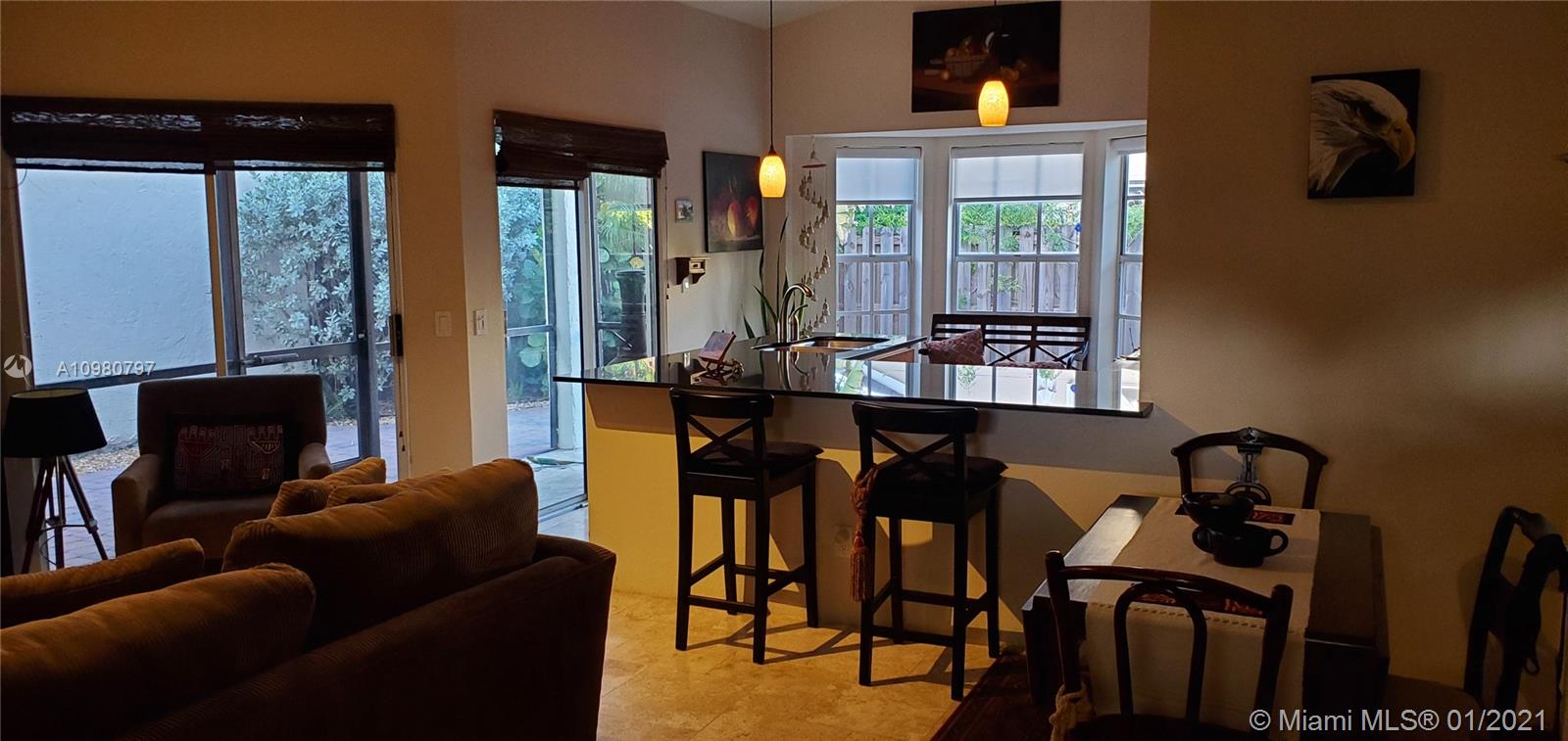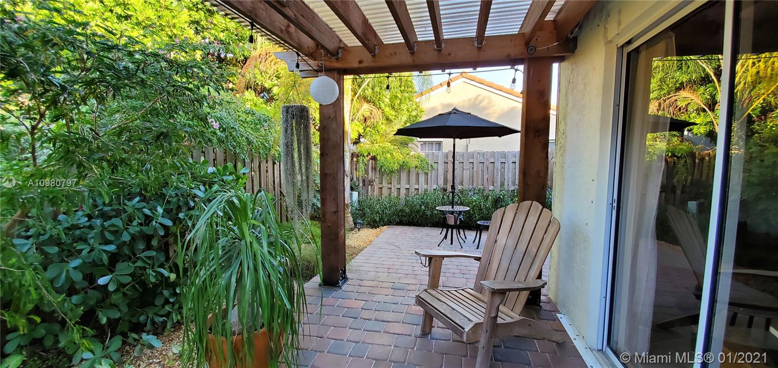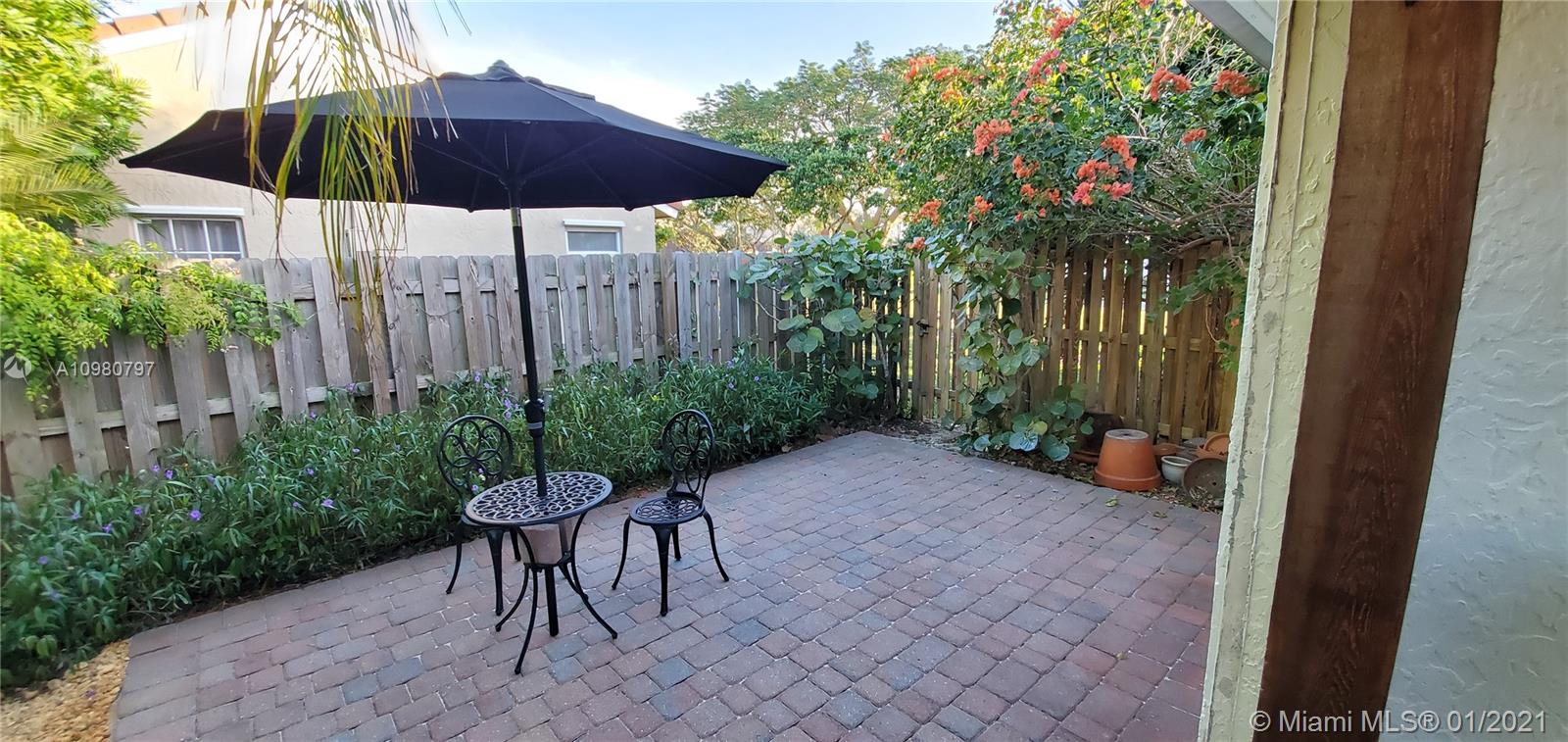 Absolutely gorgeous 2 bedroom 2 bath substantially remodeled home with huge Zen-like patio, must see! neutral color beautifully designed Travertine marble flooring throughout. Top of the line new LG kitchen stainless steel appliances in tastefully well thought to cook and entertain type of kitchen featuring quartz ample counter tops, pretty backsplash, and modern sleek cabinets. Chic bay window breakfast area looking into the inviting patio. NO popcorn ceilings, professionally painted with reflective type of paint. Brand New Air Conditioning,1 month old! Perfect 2009 roof. Secluded relaxing patio part screened in, privacy fence all around, pavers, romantic covered pergola surrounded by trees and greenery that provides peaceful relaxation. Close to famous Weston Town Center, shop and dine