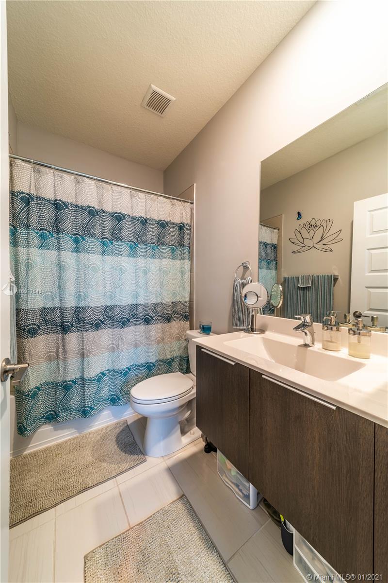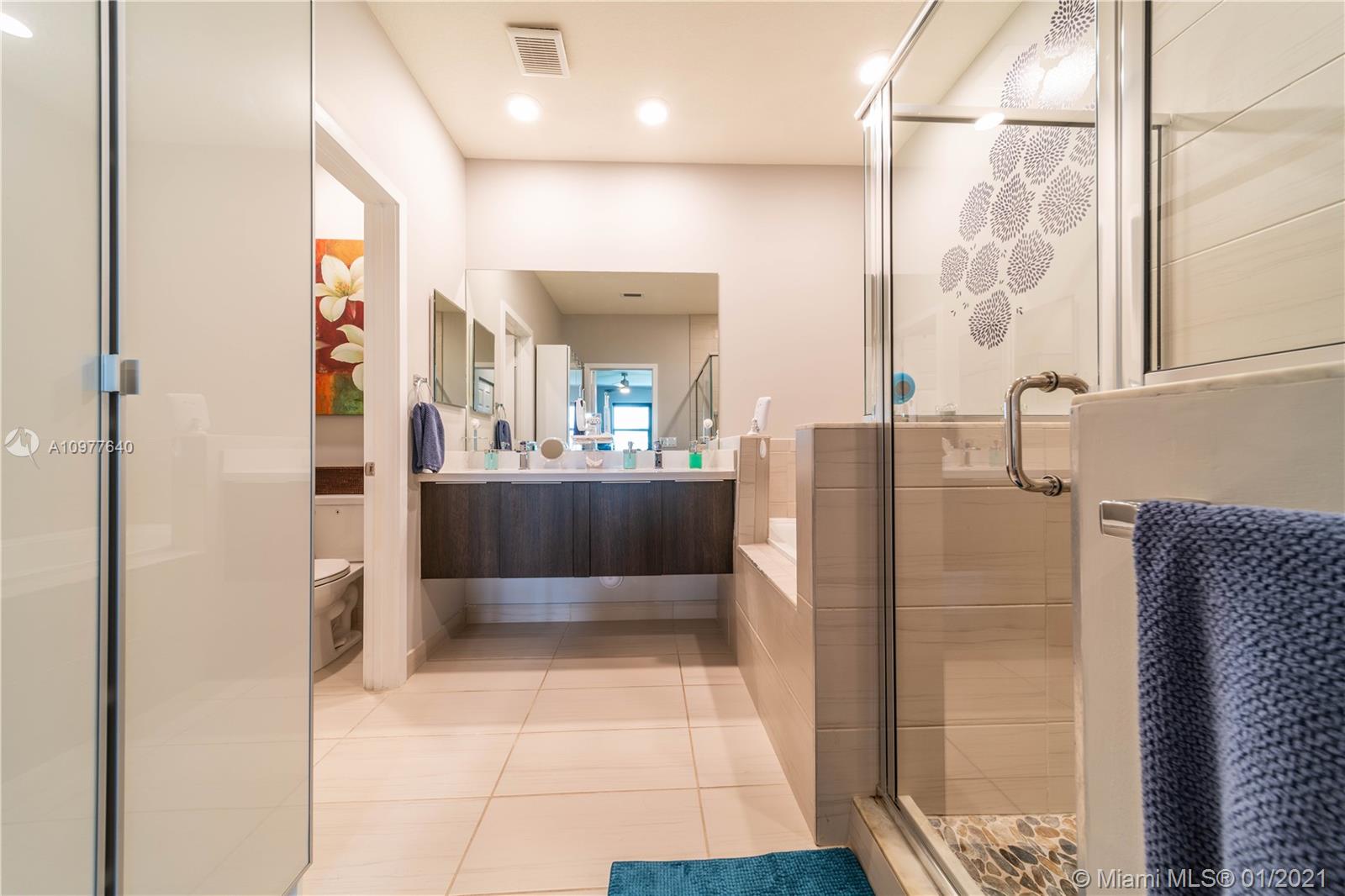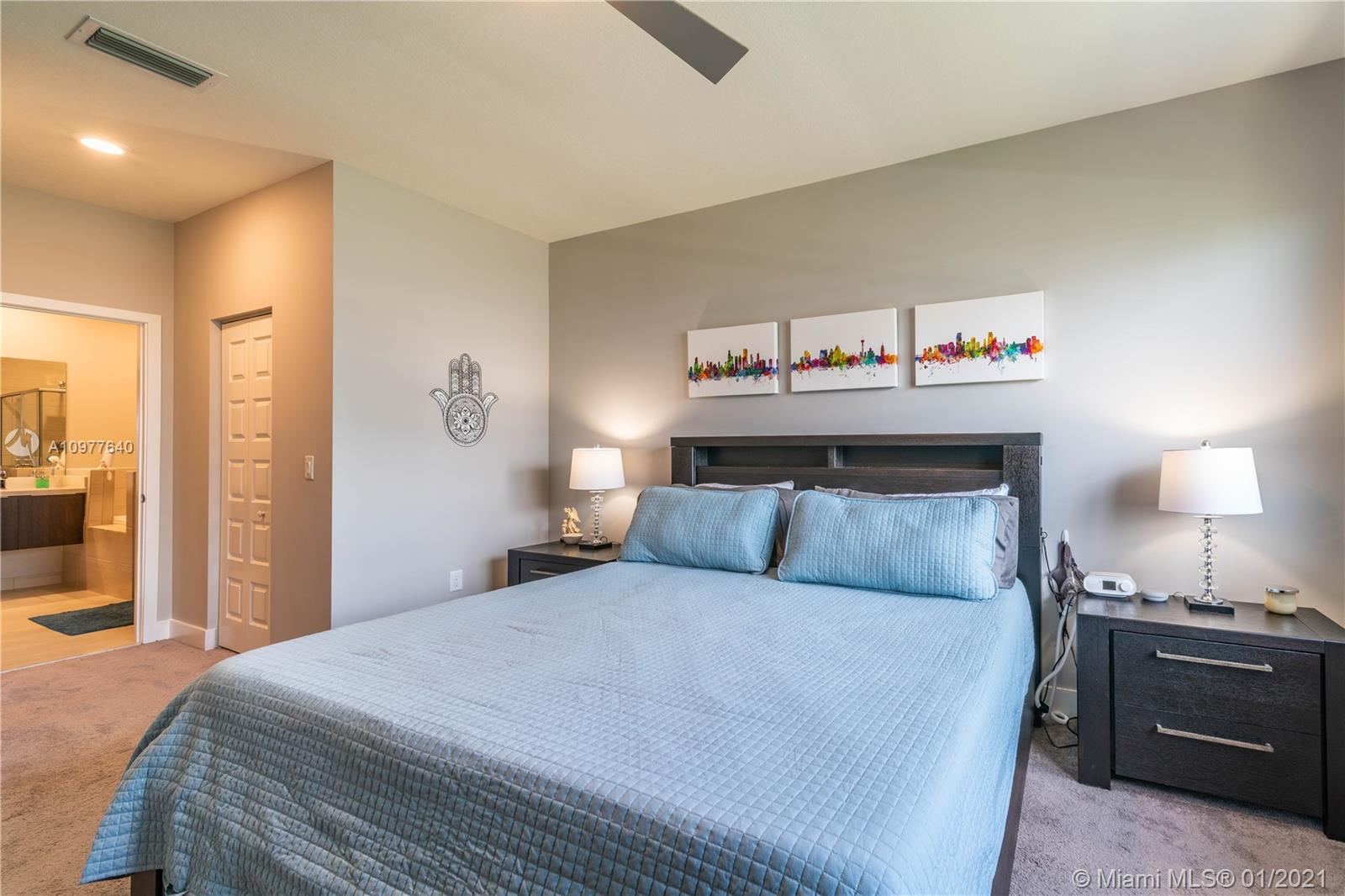 Welcome to this impeccable turnkey townhome in the city of Doral! Best price for this model! Don't miss out on this 4 bedroom/3.5 bathroom home with plenty of upgrades. The master bedroom features his/her closets, double sink, and tub/shower combo. Kitchen features stainless steel appliances with large pantry. Enjoy the paved backyard with no direct neighbors behind you and recently installed gutters. There is also a private path that is perfect for walking your pets and it even leads out to the nearest Publix. The home features Zebra blinds throughout as well as a 2 car garage. Be part of the Grand Central Clubhouse that offers vacations style amenities; resort style pool, tennis court, gym with spinning room, children's water park, sauna, steam room, and children's playground.