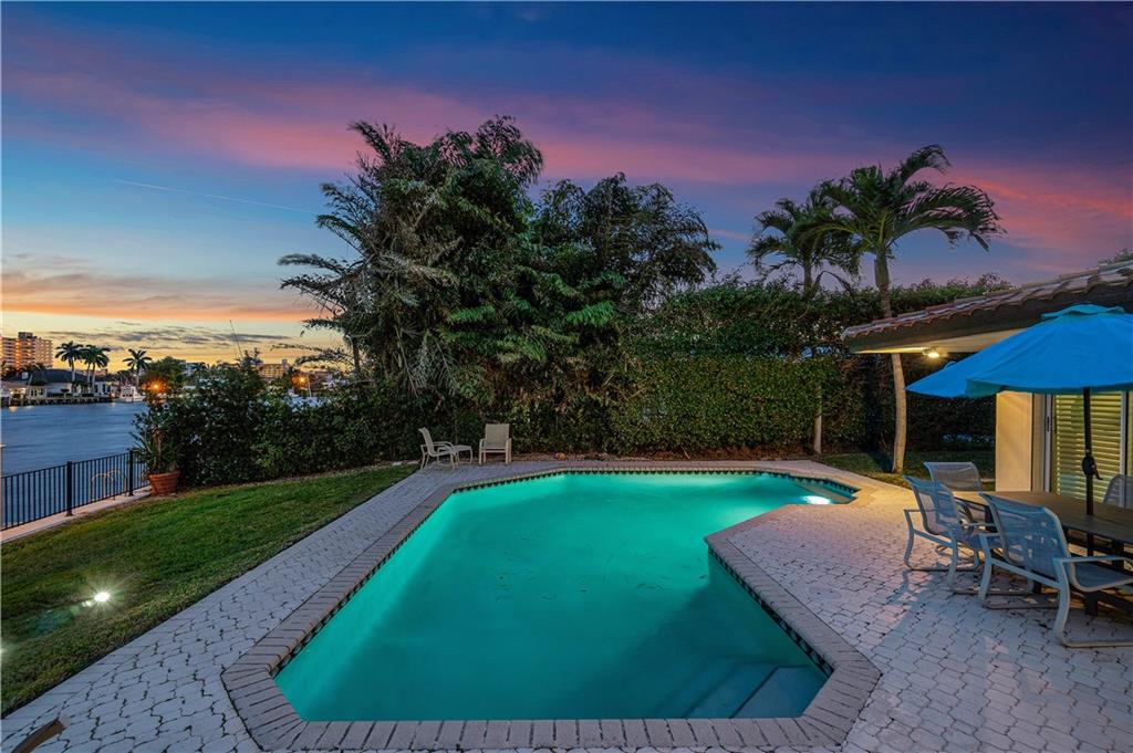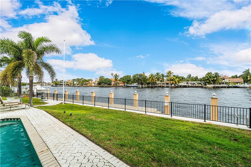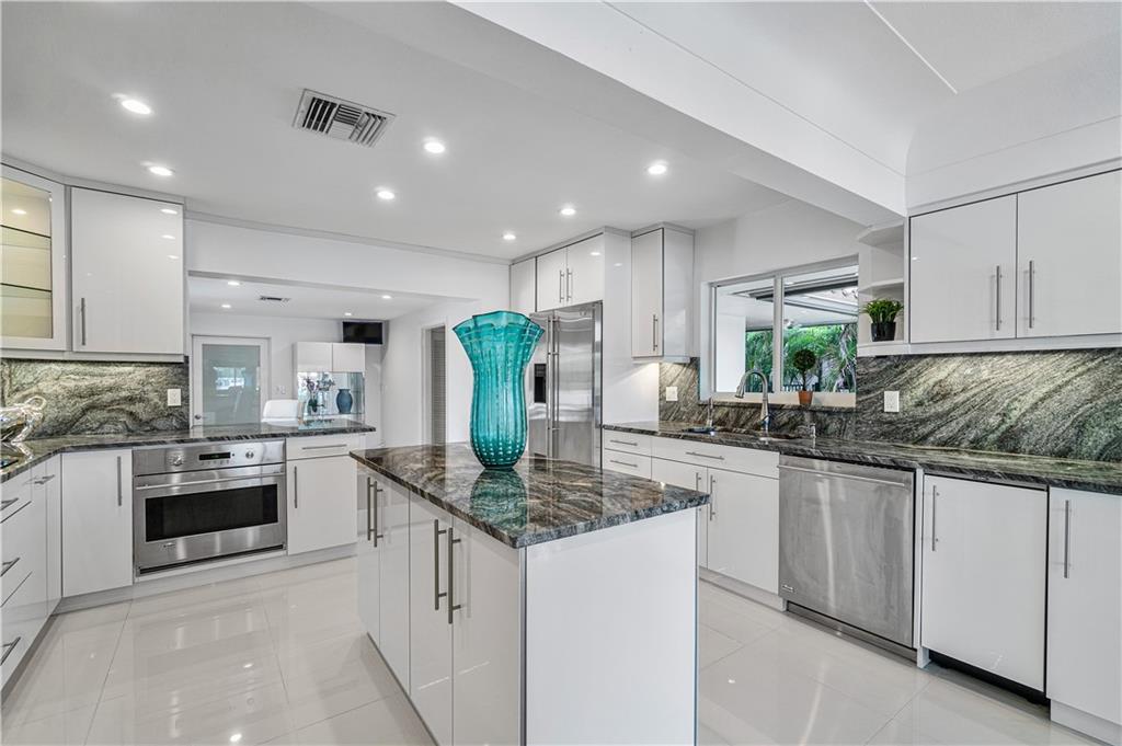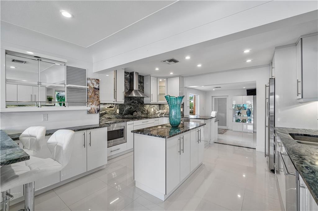 Bring your boat!! This spectacular direct waterfront home is situated on a spacious cul-de-sac lot with plenty of room to add on. This perfectly tropical South Florida location is a boater's dream – from your dock to the ocean in just few minutes! Did I mention the 80’ dock that’s waiting for you? As you approach this waterfront beauty at the end of the street you are greeted with an expansive circular driveway with an electric private gate at your entryway. All on one level, this home offers an updated kitchen with soft close drawers/updated appliances, granite counters, ceramic flooring throughout, loads of natural light, and tastefully updated bathrooms. Enjoy the soothing colors of the intracoastal waterway (no wake zone) as you reflect and/or entertain by your private pool.