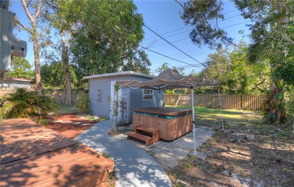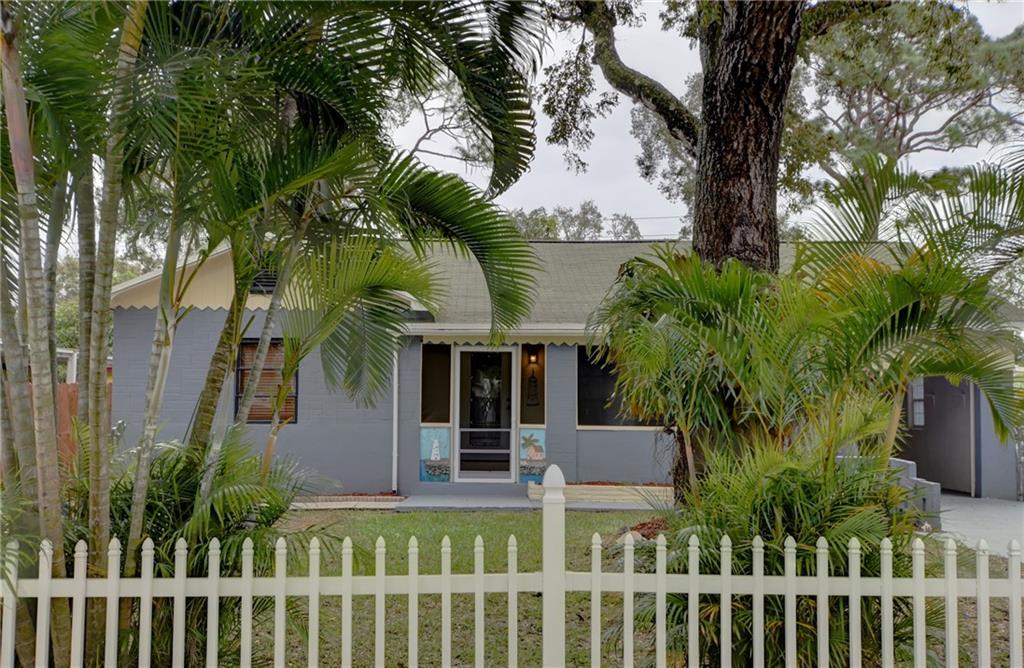 This is a charming, white picket fence, very well maintained 3 bedroom 2 bath home. The interior features brand new appliances, wood burning fireplace, Cedar Lined master closet, Jacuzzi tub, marble and granite bathroom floors. One car garage. In back is a separate 9X12 building with 220 power and water hookup. Perfect for a cabana or extra room. The outside has a huge, tropical back yard with an 11x22 wood deck, and a spa. The over sized screened in front porch is an extra bonus. Outdoor living at it's best.