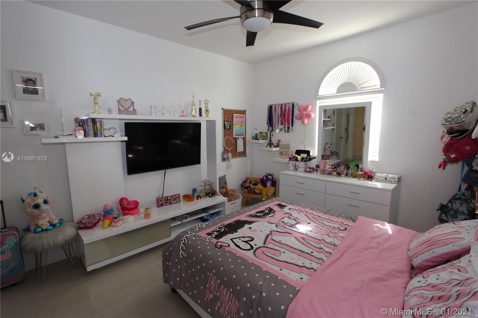 Great corner single home in Island at Doral. Spacious and bright areas, porcelain floor all over, Italian kitchen cabinetry, quartz counter top, studio and 1 bedroom downstairs, garage with laminate floor and fan. Enjoy the backyard with a pool and a trampolin. Stainless steel stairs railing give access to upstairs. Resting area.
