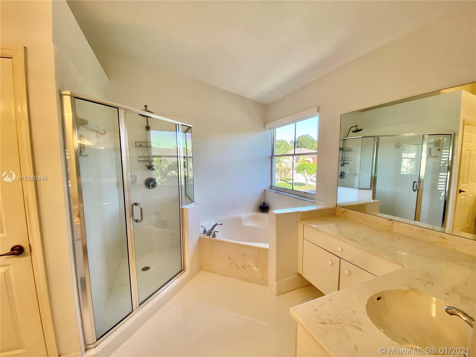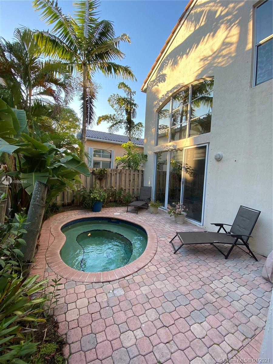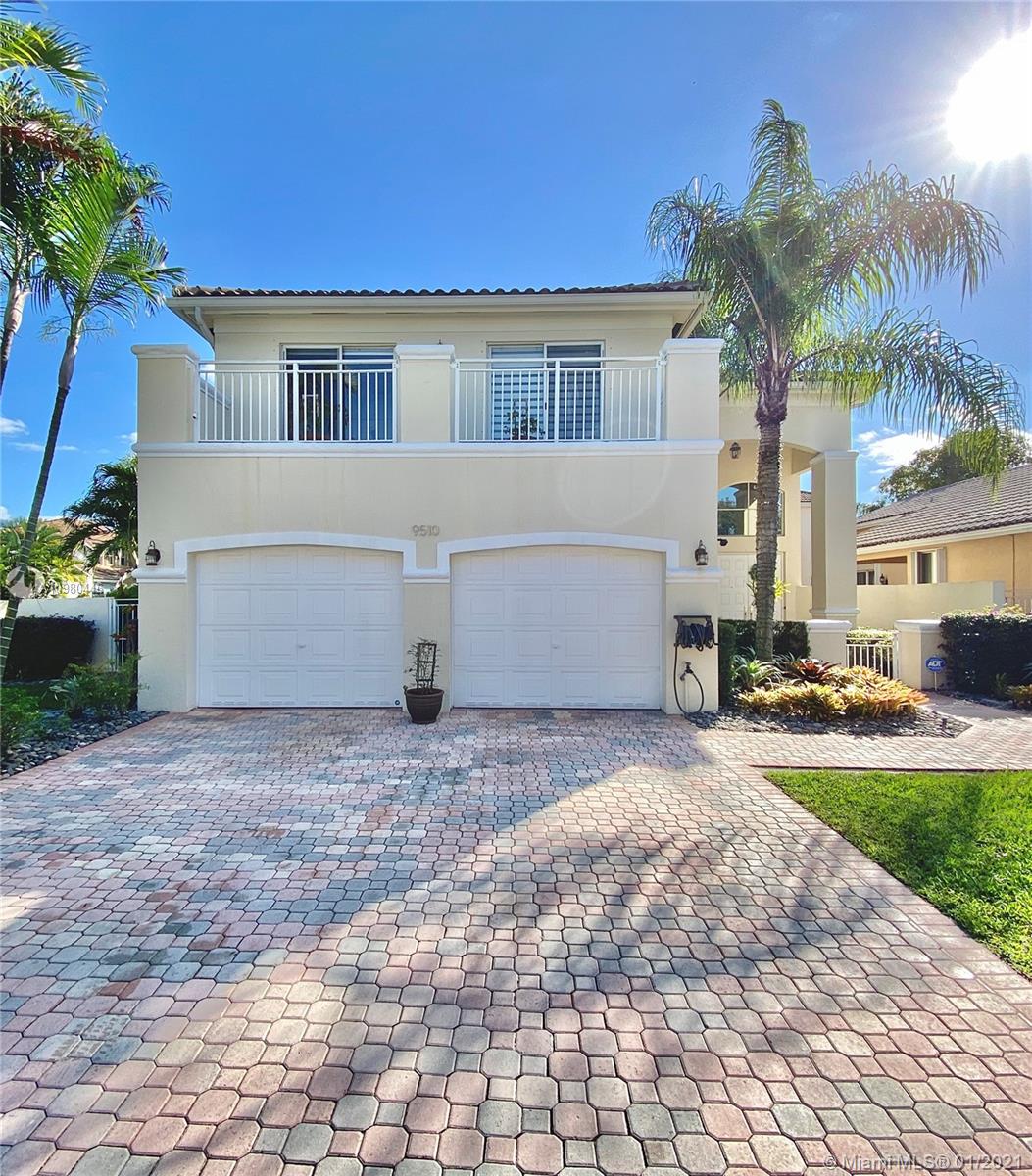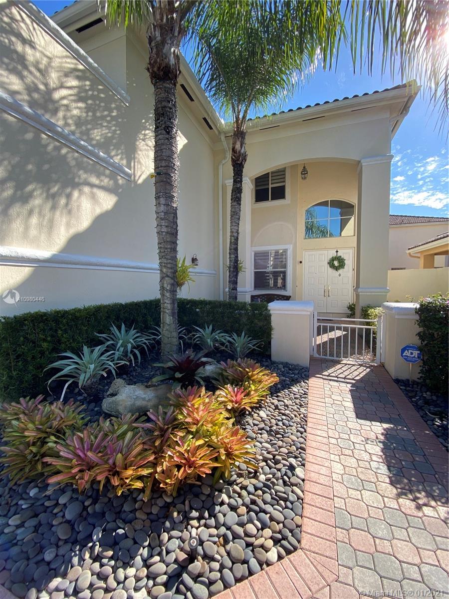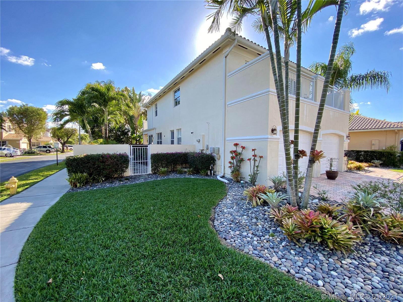 Rarely available 4 bedroom, 2.5 baths, 2 car garage home on a prime corner location with extensive landscaping, dual zone irrigation and pavers throughout exterior areas. Roof installed in 2016! Dramatic picture window fills the living and dining rooms with natural light. Updated kitchen equipped with stainless steel appliances, granite countertops, 42" cabinets, pantry and oversized island. Family room with half bath and laundry room on the first floor. Upstairs the in suite master bedroom features 2 walk-in closets, private water closet with bidet, dual vanities, shower, roman tub and large balcony. Bedrooms 3 and 4 share a balcony. Enjoy hours of relaxation in your covered patio and spa. Exclusive Gated community with 24 Hour Security, pool and children's playground. Call today!
