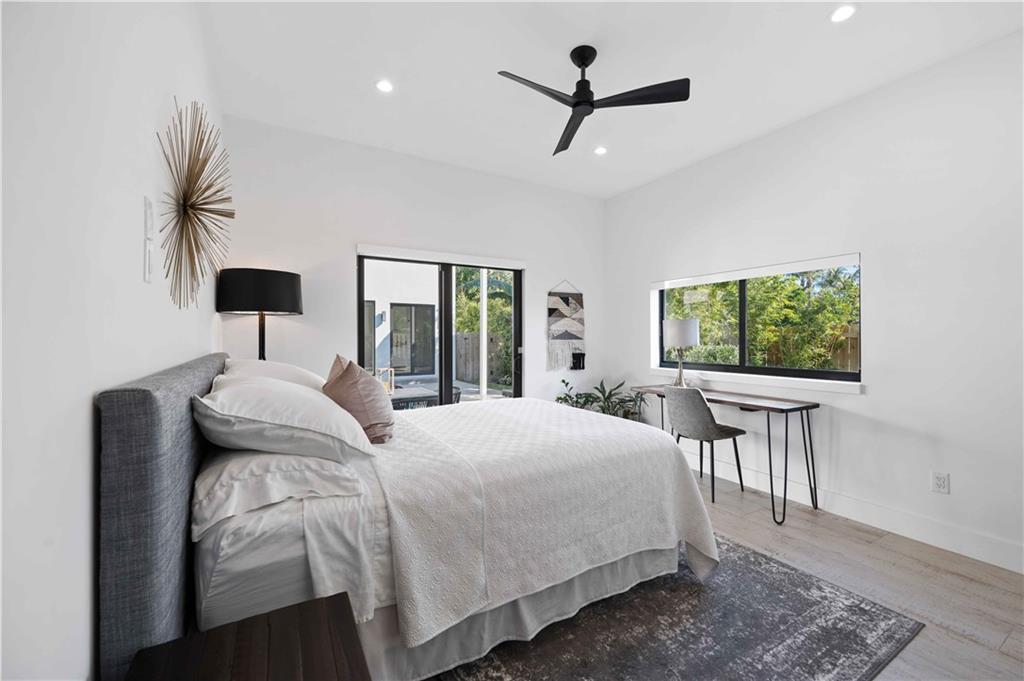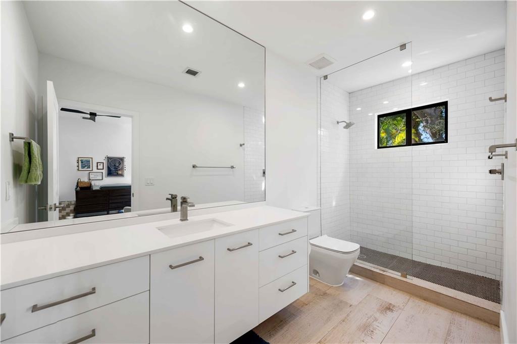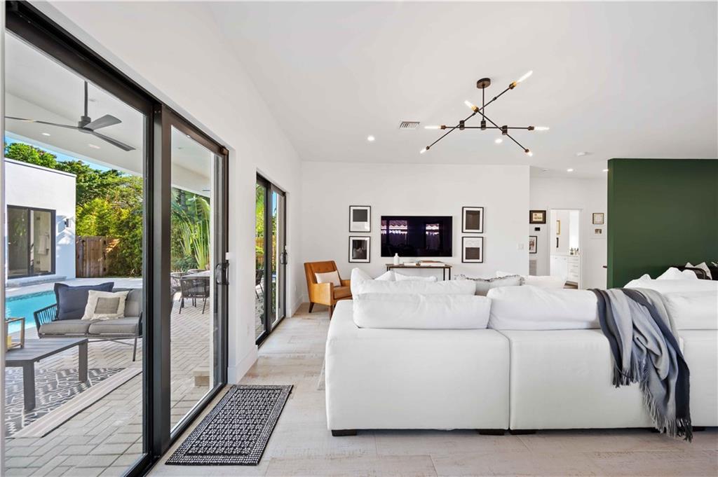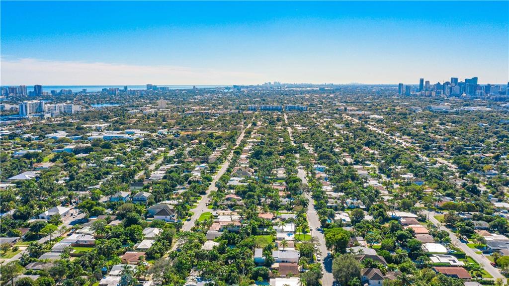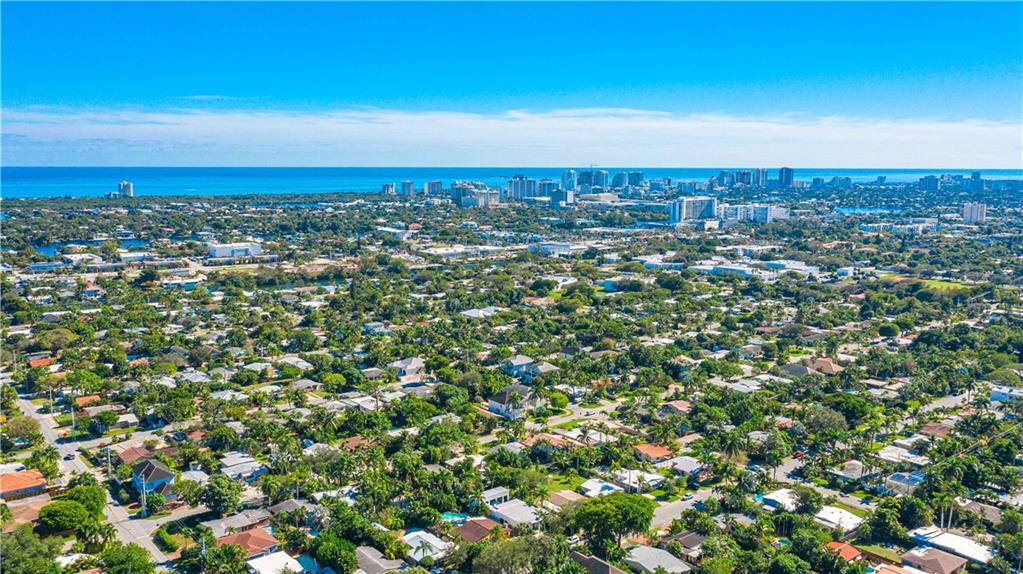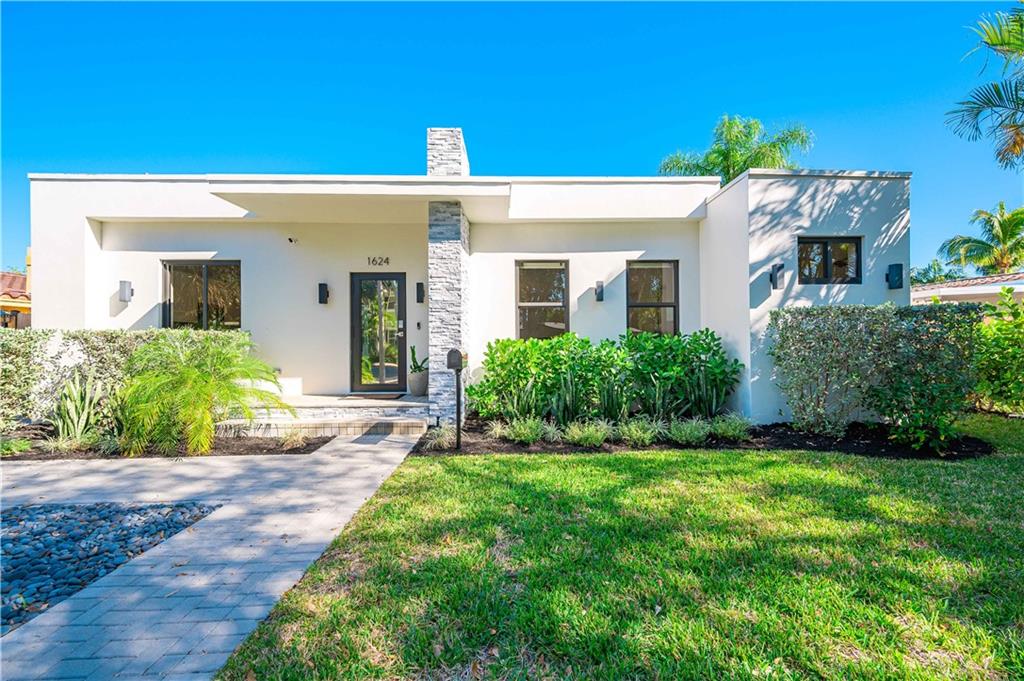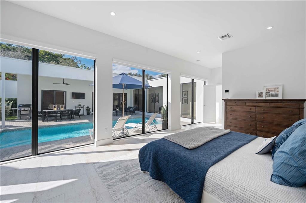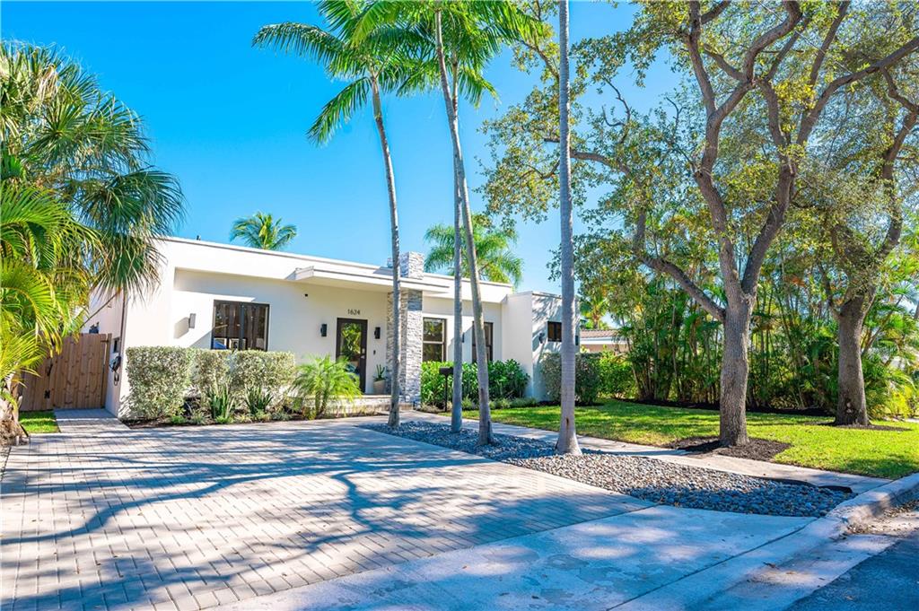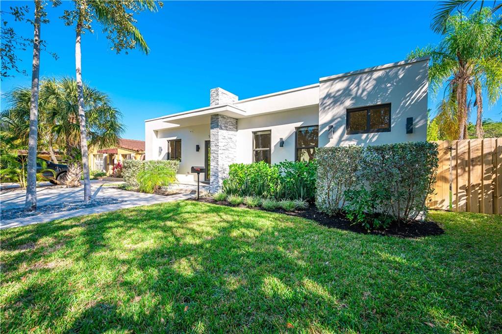 Distinct Miami Modern artfully designed surrounding a central courtyard pool making the pool into a centerpiece. Also a wide sundeck and generously sized covered terrace. All impact rated window walls and doors provide access from almost every room. Created for our casual Florida lifestyle this sun filled home transforms to a glowing glass box as evening sets. The two guest rooms each have generous closets, high ceilings and in-set lighting. The primary suite, with its own a/c features an integrated bath with a dramatic soaking tub and separate shower. The fully fenced rear yard offers an additional area away from the pool that is perfect for pets or a child's play area. Located in the heart of very desirable Poinsettia Heights, this home is convenient to shopping, dining parks & beaches.