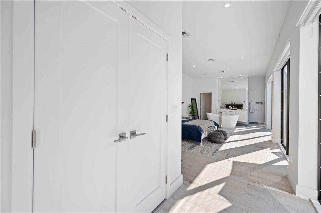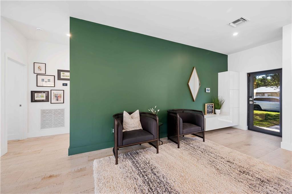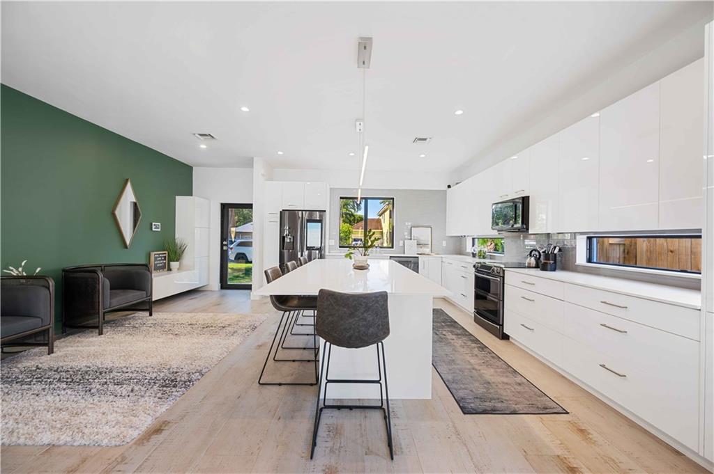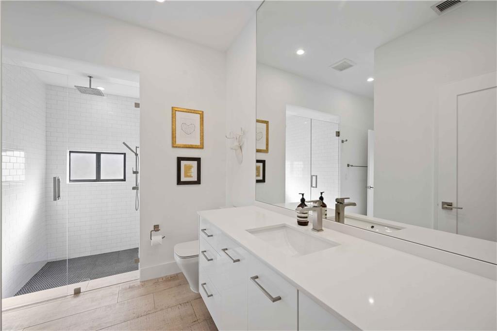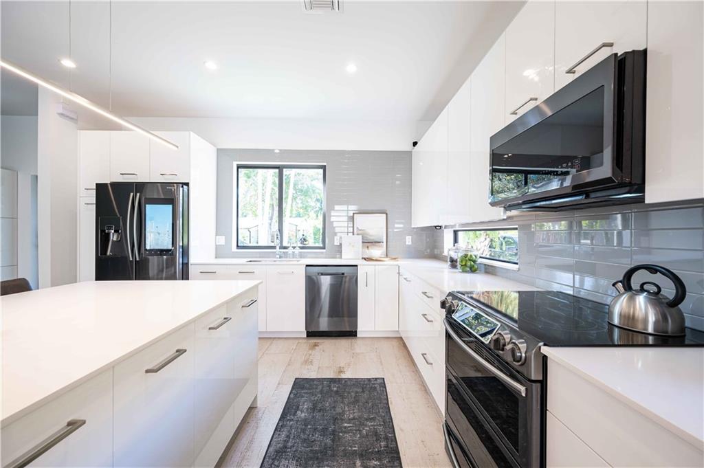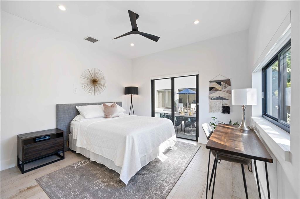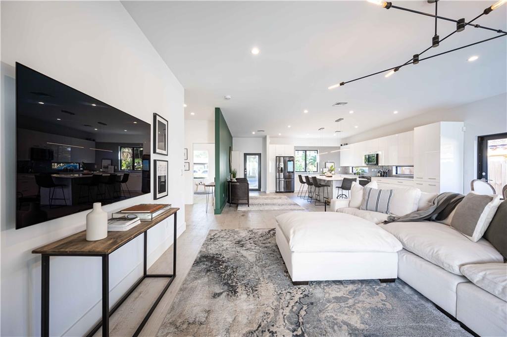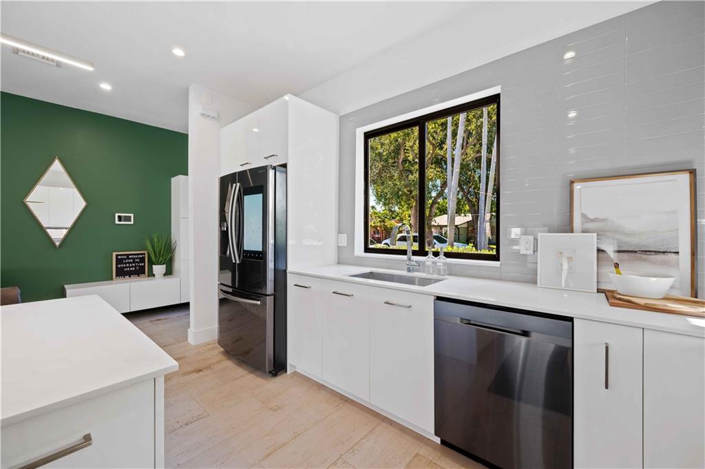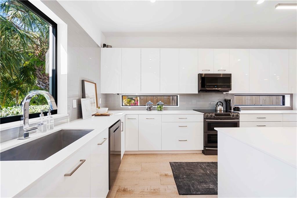 Distinct Miami Modern artfully designed surrounding a central courtyard pool making the pool into a centerpiece. Also a wide sundeck and generously sized covered terrace. All impact rated window walls and doors provide access from almost every room. Created for our casual Florida lifestyle this sun filled home transforms to a glowing glass box as evening sets. The two guest rooms each have generous closets, high ceilings and in-set lighting. The primary suite, with its own a/c features an integrated bath with a dramatic soaking tub and separate shower. The fully fenced rear yard offers an additional area away from the pool that is perfect for pets or a child's play area. Located in the heart of very desirable Poinsettia Heights, this home is convenient to shopping, dining parks & beaches.