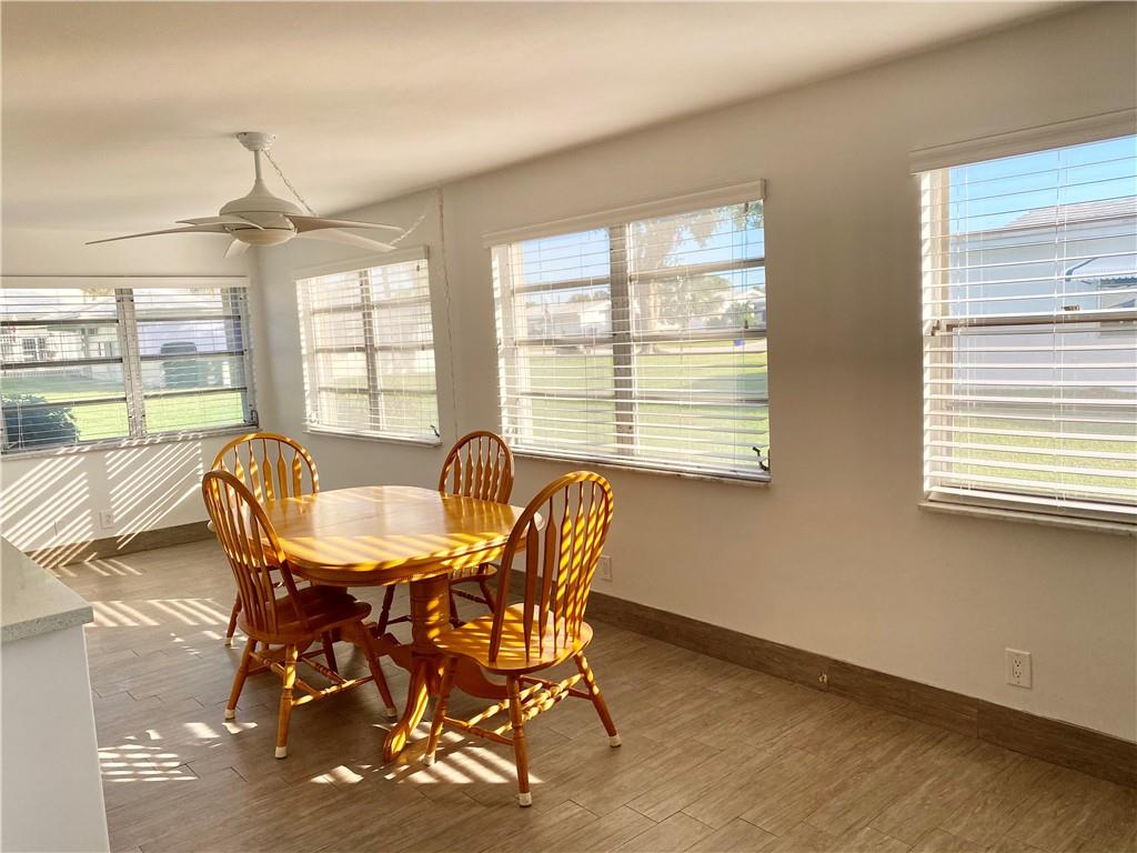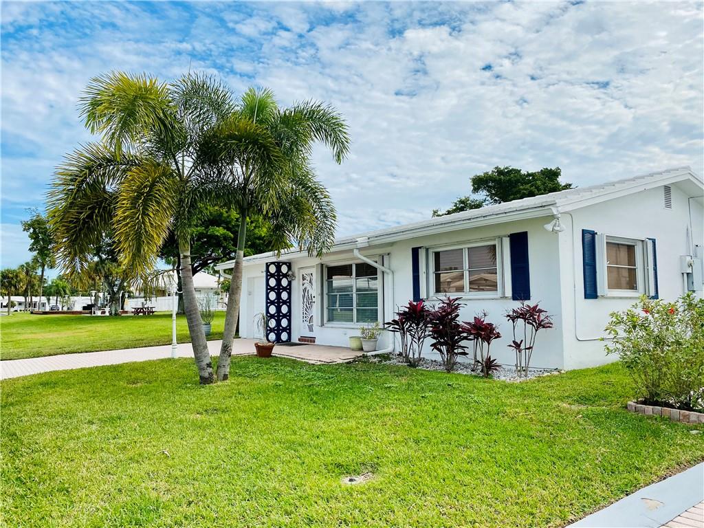 Updated, Light, and Bright. This is what easy living is about- no remodeling needed. Fabulous privacy and huge side yard area because there are no neighbors between you and the clubhouse. Tile floors, updated kitchen and bath. SO much light and great social areas. One car garage is ample and provides great storage. Great Floorplan and probably the best lot in the community. REC LEASE PAID! Hurricane protection for entire home. Community mows grass, paints roof every 2 years, and paints home every four years. Community bus, shuffleboard, bocce, ping pong, pool tables, golf. Maintenance includes water, lawn mowing, spraying for weeds and fertilizing. A great place to live! Rules and Regulations and Application are in document section. Priced to sell!