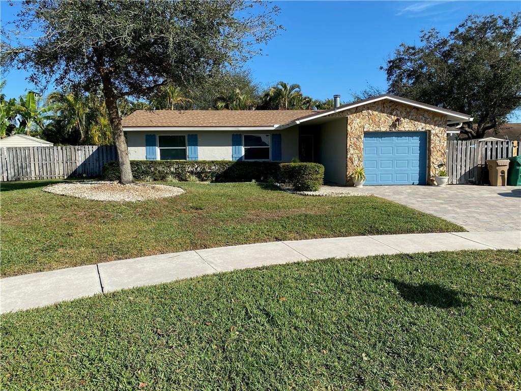 Beautiful updated home with open floor plan. 4 bedrooms, 2 full bathrooms in a desirable family-oriented neighborhood located in a cul-de-sac. Updated kitchen with stainless steel appliances,Quartz counter tops and plenty of storage space. Spacious open floor plan with working fireplace in family room. Master bedroom with walk-in closet and updated en-suite master bath. High hat lighting. Tile & Laminate flooring throughout. NEW ROOF only 3 years old, tankless hot water heater, sprinkler system, Most impact windows and shutters. Covered backyard porch with fenced backyard & beautiful pool area. Storage shed in backyard. Fenced in area for recreational vehicle. Easy access to 595, near shopping and recreational parks. **NO HOA**
