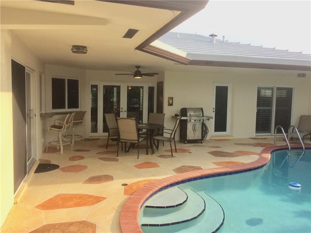 78' of ocean access.40 ft dock.Private with lush landscaping.Quiet cul de sac.3 large split-plan bedrooms, each with 3 piece updated bath.Master has large W-in closet.Custom kitchen cabinets&granite counters.Large pool deck & fully fenced yard.Pass thru window. Neutral tile floors. Bright den.Custom bahama shutters. Impact windows,french &sliding doors & shuttered front doors. 2 car garage. Circular driveway. Roof cleaned,sealed&painted. New attic insulation. Freshly painted.