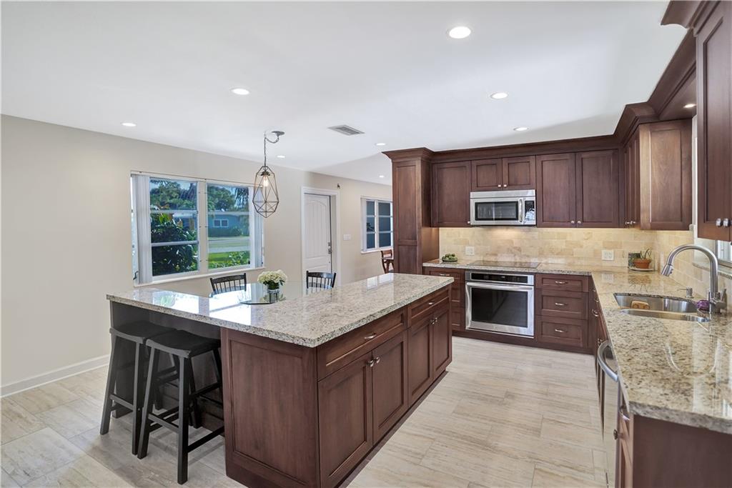 Beautifully updated 4/3 pool home with 2 car garage in Coral Ridge Isles. Large custom gourmet kitchen with stainless steel appliances and granite counter tops. Built-in eat-in dining table. Large master suite with walk-in closet with a contemporary updated Master bathroom. 2 other nicely sized bedroom with ample closet space. One has an en-suite bathroom. Tile throughout. Washer and dry with in home Utility room. Stamped concrete driveway. Updated electrical panel. Newer spa like pool surrounded by pavers. Perfect for entertaining.